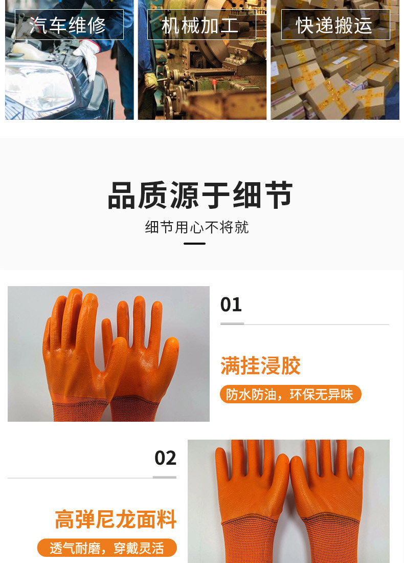 노동 보호 장갑 PVC 내마모성, 내유성, 방수성, 미끄럼 방지 보호 장갑, 편안하고 고탄성, 통기성, 두꺼운 고무, 강함스토어 가기
