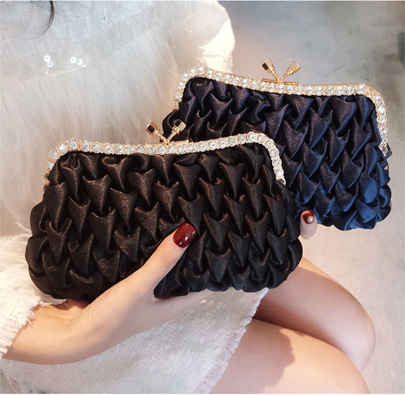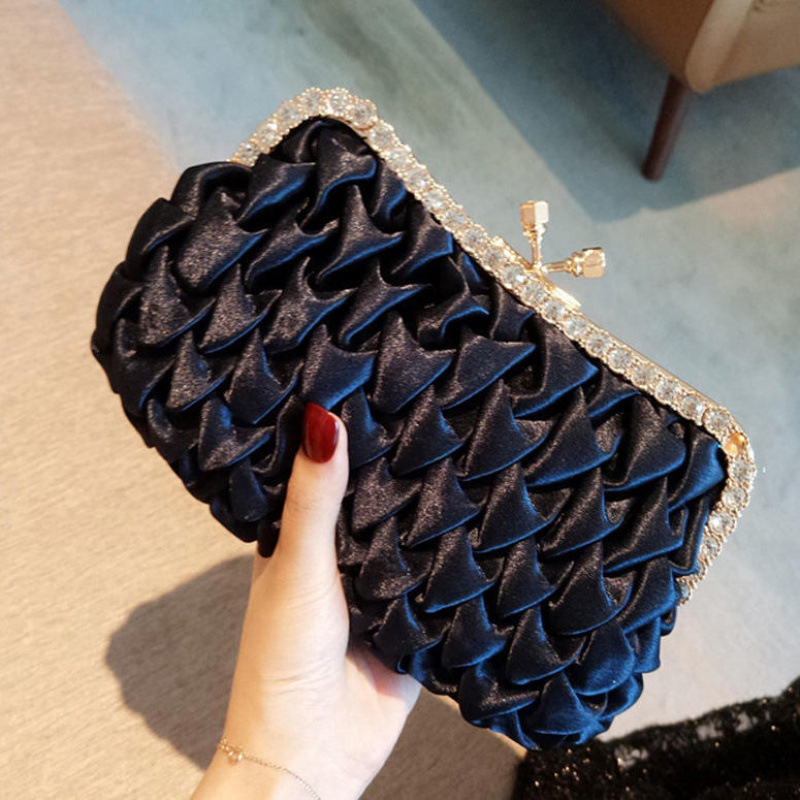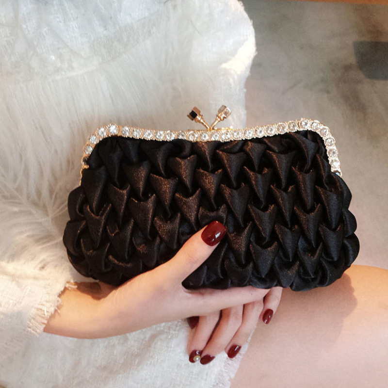 클러치 백 여성 우아한 2022 새 새틴 연예인 이브닝 백 라인스톤 신부 클러치 백 원피스 청삼 핸드 백