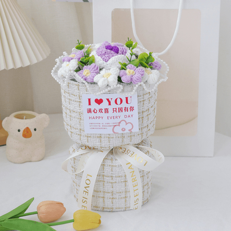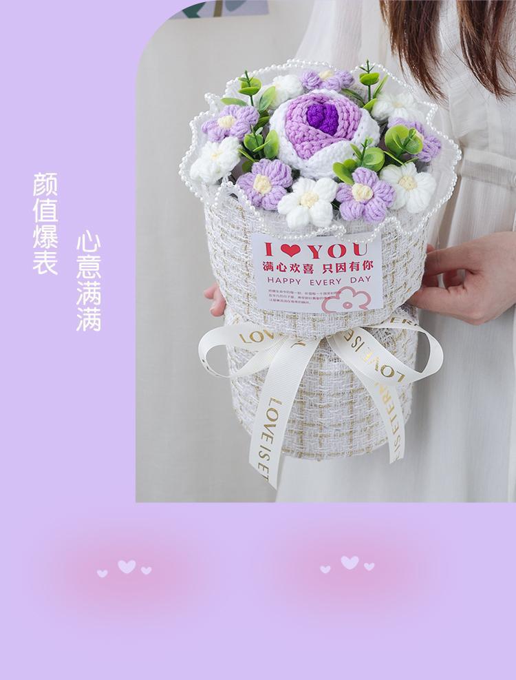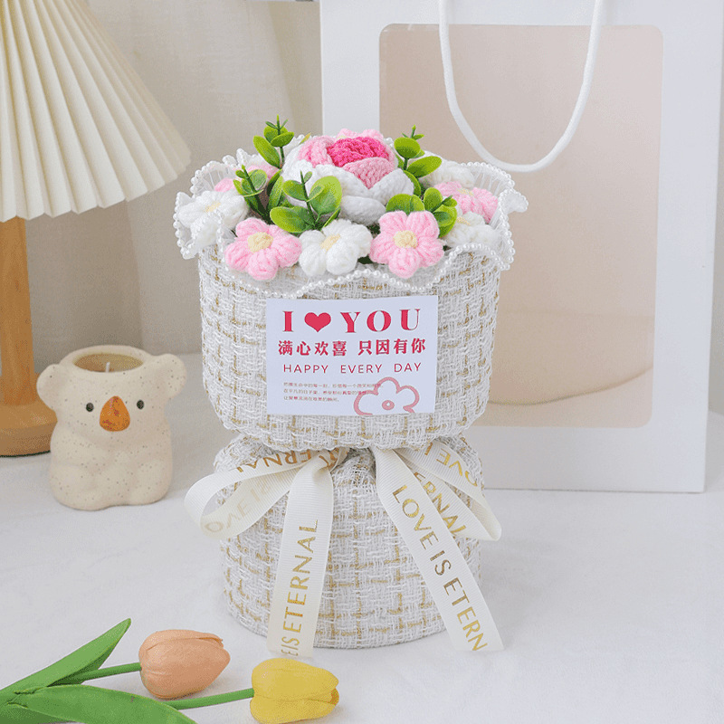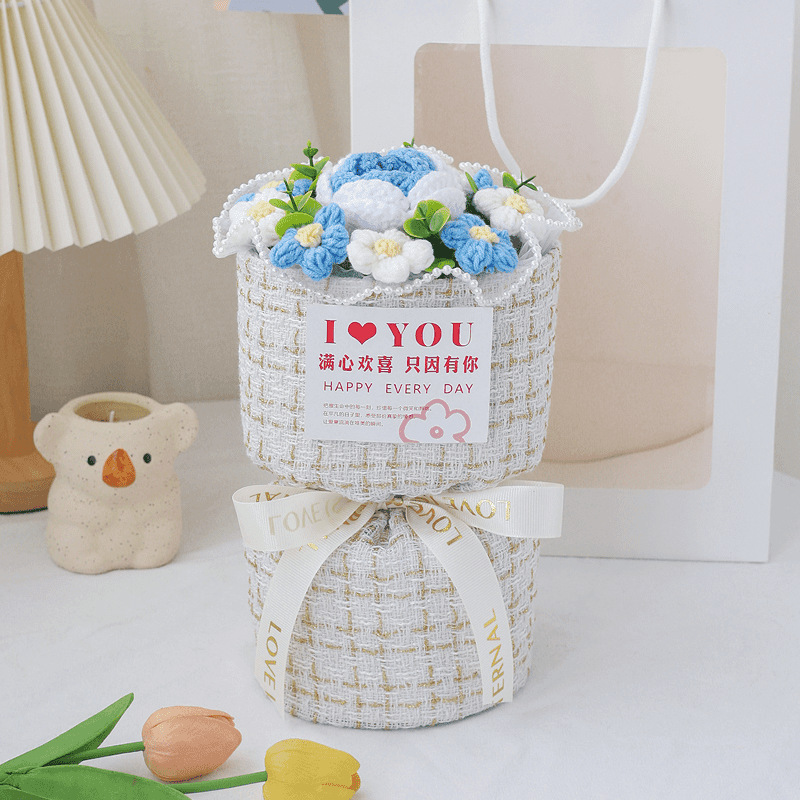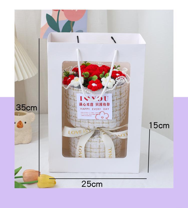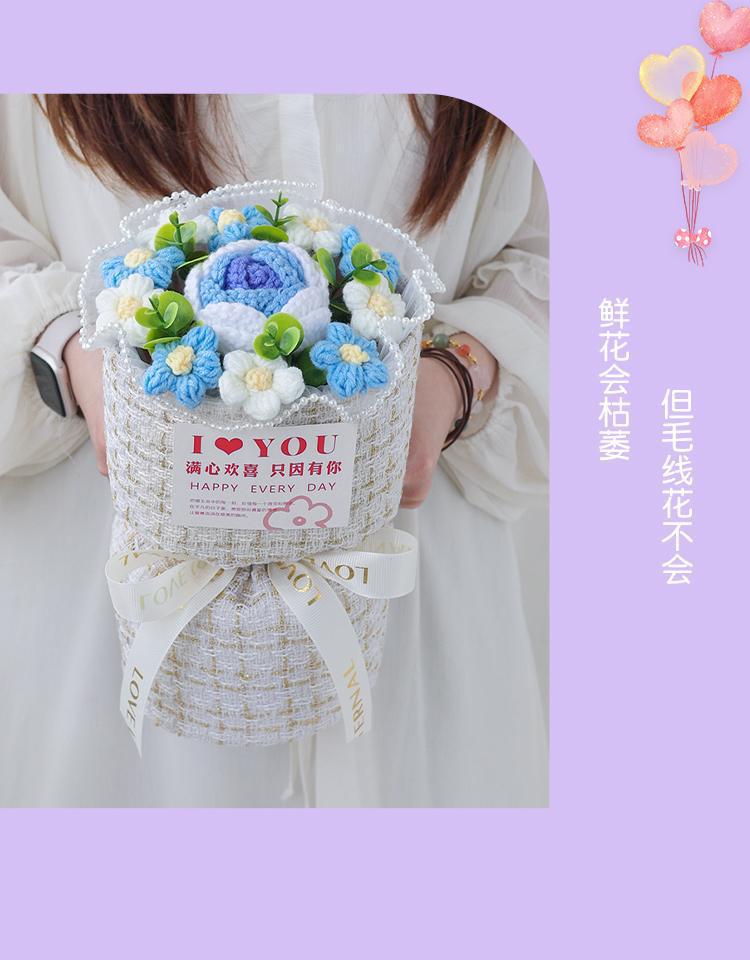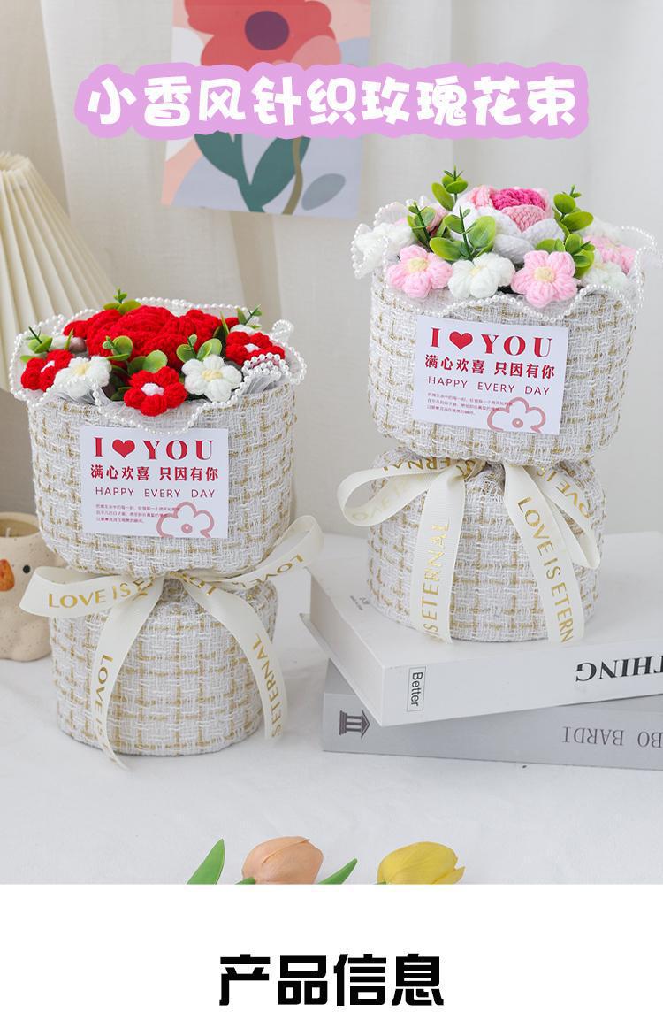 Tanabata 발렌타인 데이 창조적 인 인공 꽃 장미 니트 울 꽃 손으로 짠 소녀 꽃다발스토어 가기