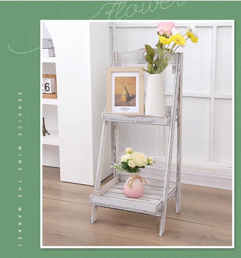 아메리칸 스타일 컨트리 레트로 솔리드 우드 멀티 레이어 접기 장식 작은 꽃 랙 다층 사각형 다육 식물 바닥 저장 랙