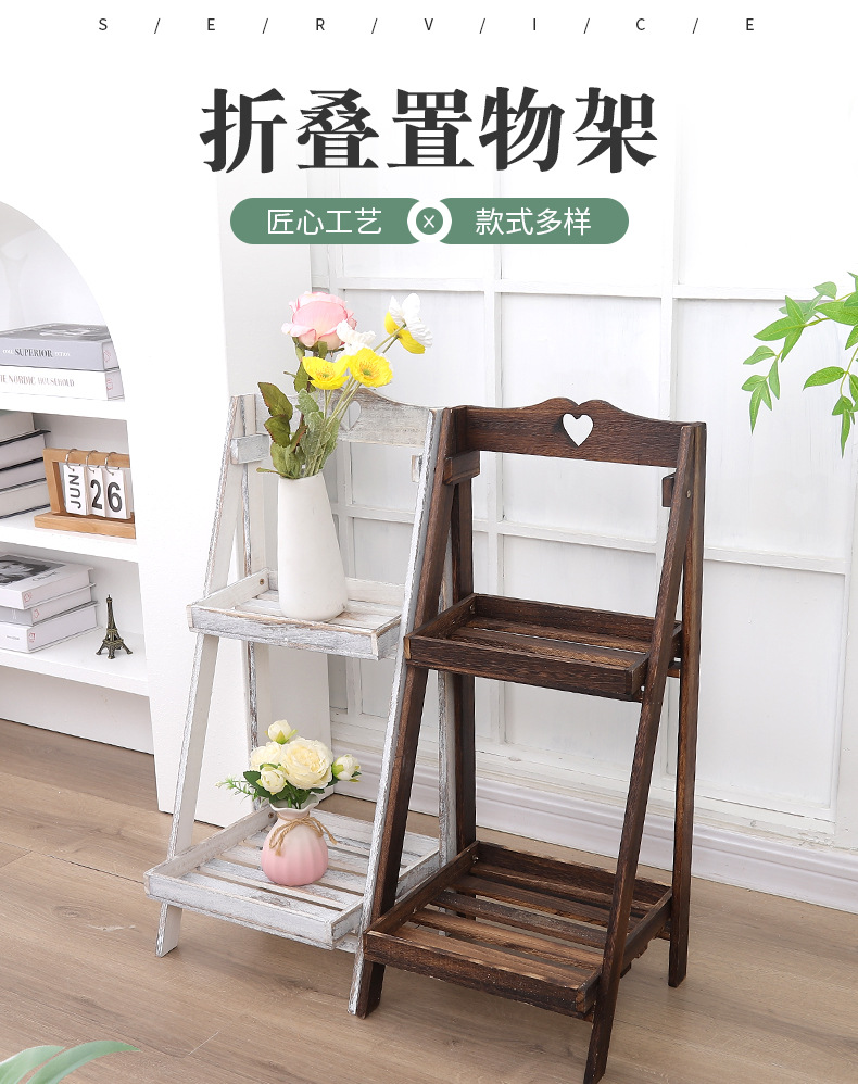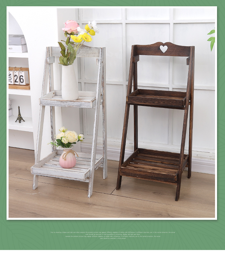아메리칸 스타일 컨트리 레트로 솔리드 우드 멀티 레이어 접기 장식 작은 꽃 랙 다층 사각형 다육 식물 바닥 저장 랙스토어 가기