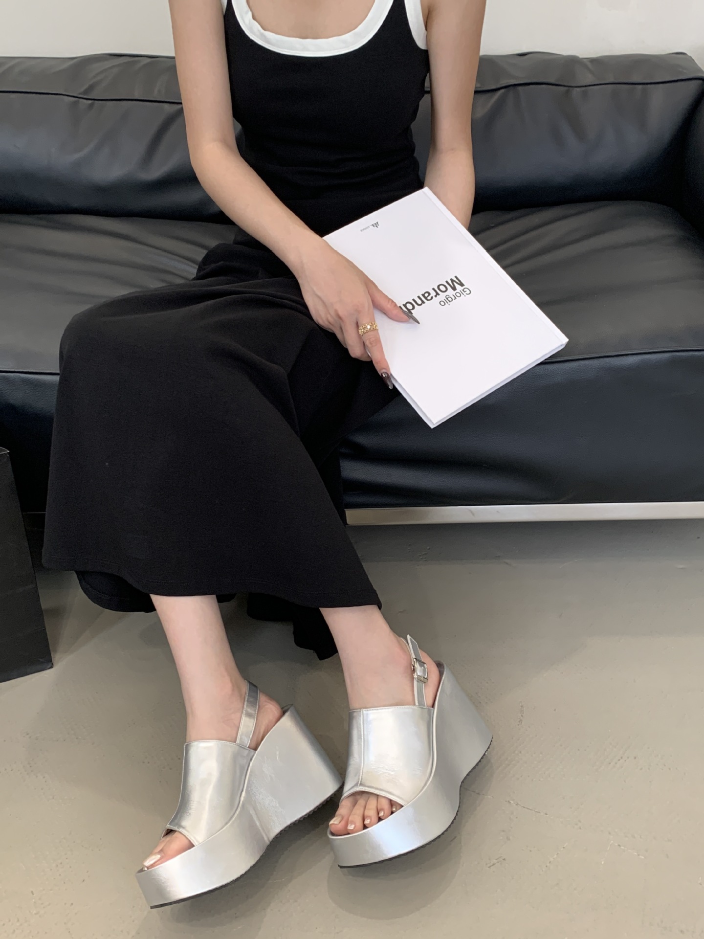 2025 여성용 블랙 방수 플랫폼 웨지 샌들, 유럽 및 미국 슬리퍼, 다재다능하고 피곤하지 않은 하이힐스토어 가기