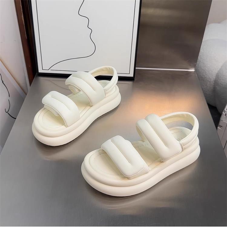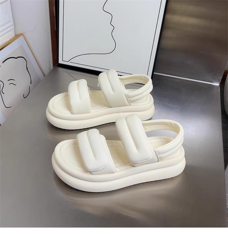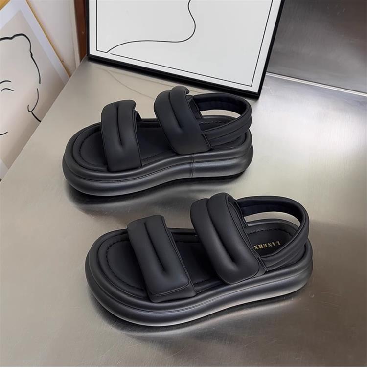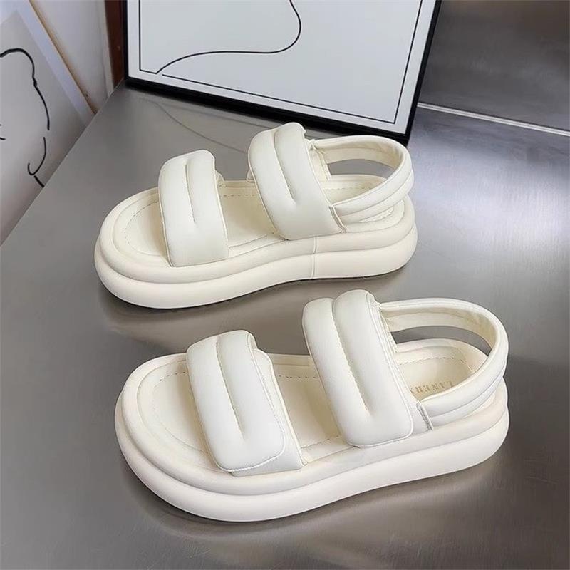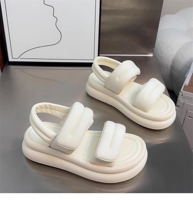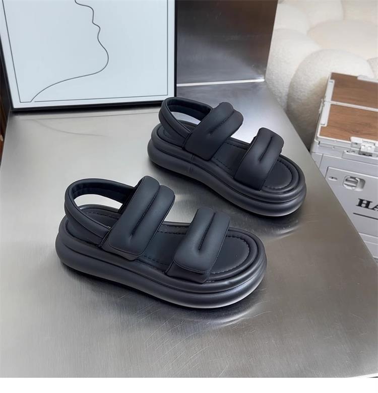 여성용 두꺼운 밑창 빵 샌들 여름 캐주얼 스포츠 비치 신발 2025 새로운 벨크로 로마 여성 신발스토어 가기