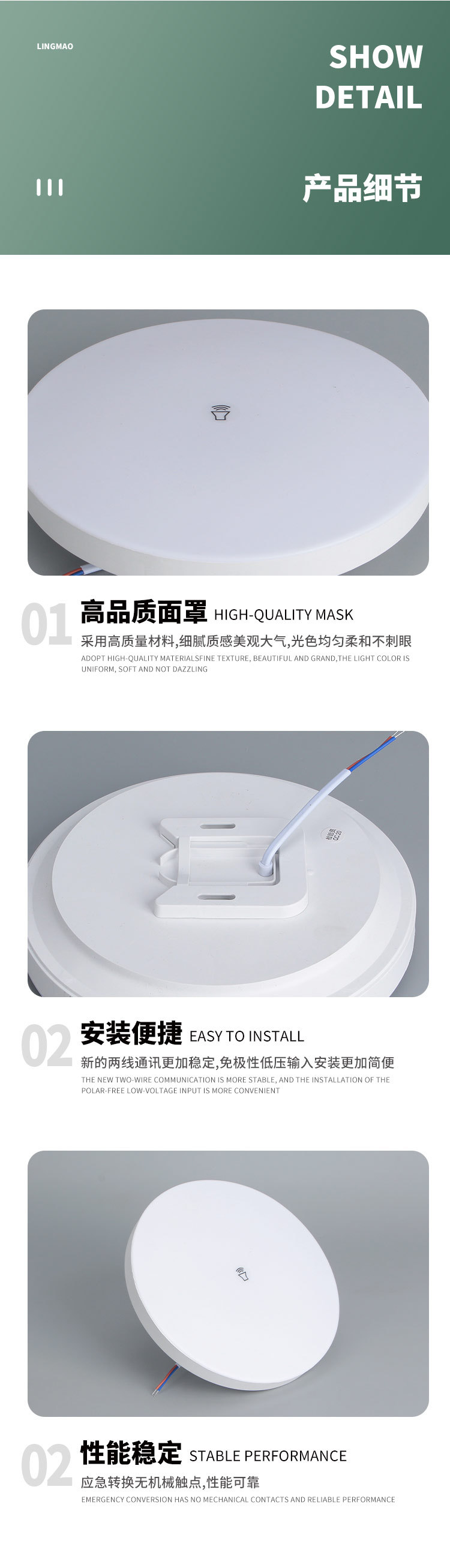 • 370 사운드 및 조명 제어 삼중 방지 조명 24W
