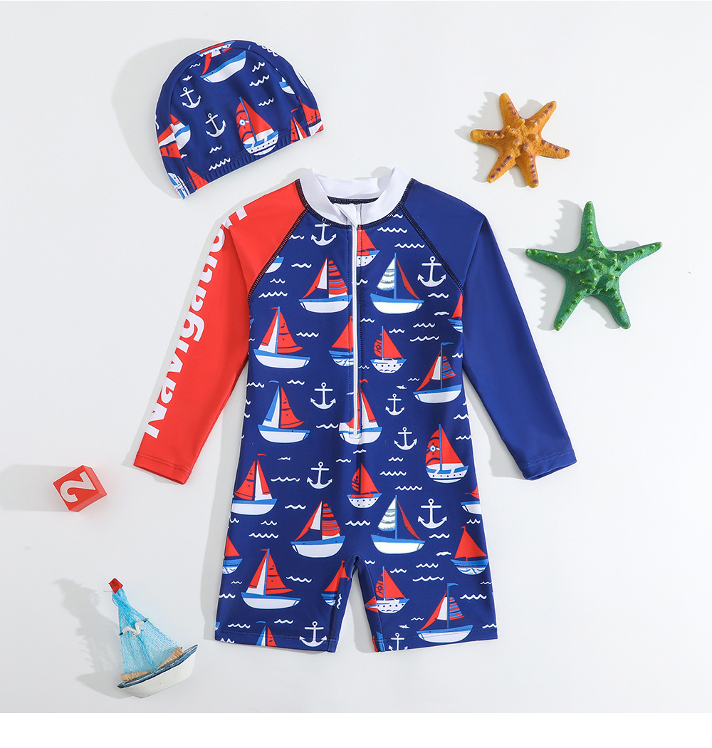 AliExpress 소년 수영복 2025 새로운 원피스 복서 자외선 차단 긴팔 소년 아기 수영복 중소형 소년