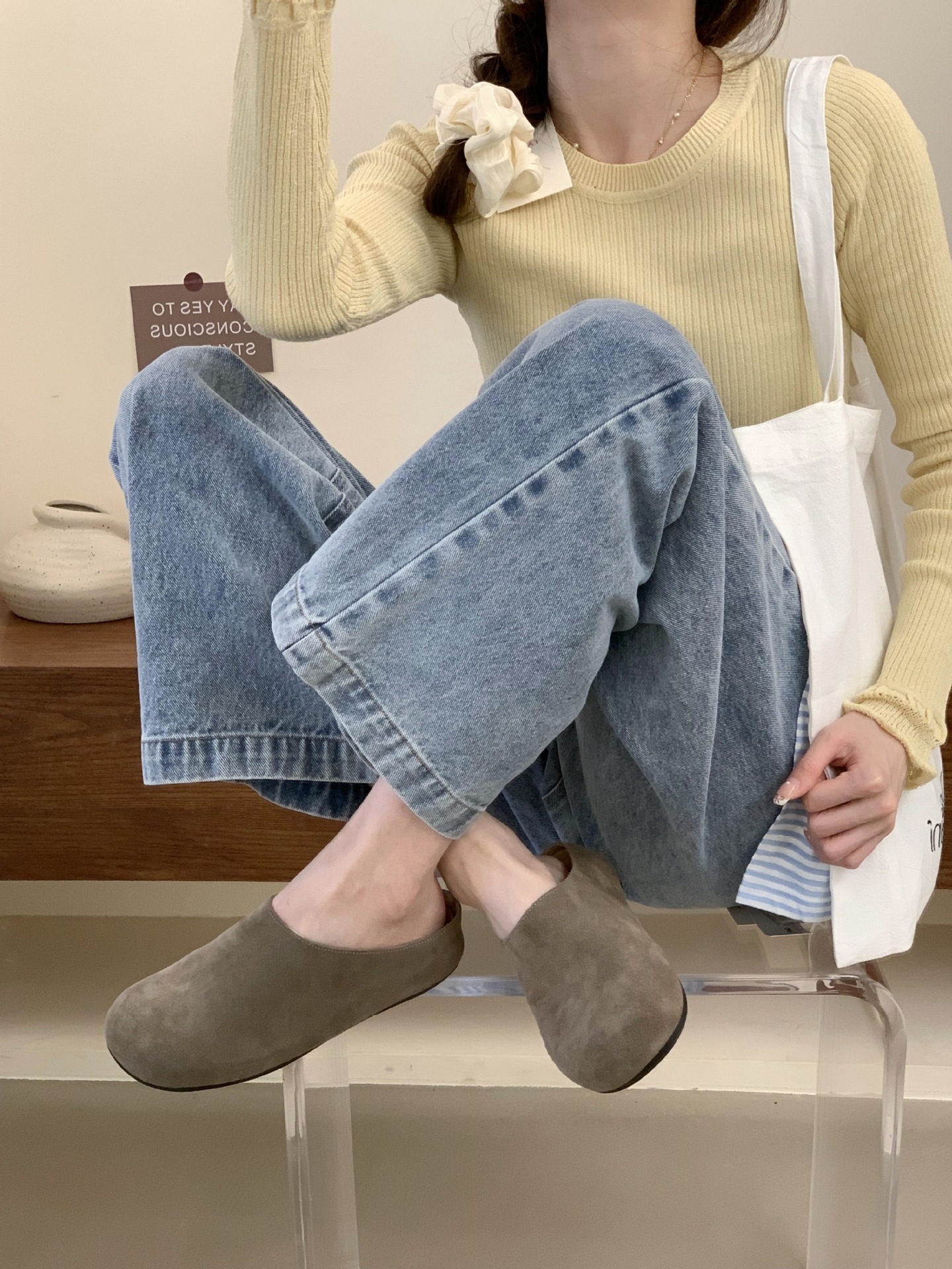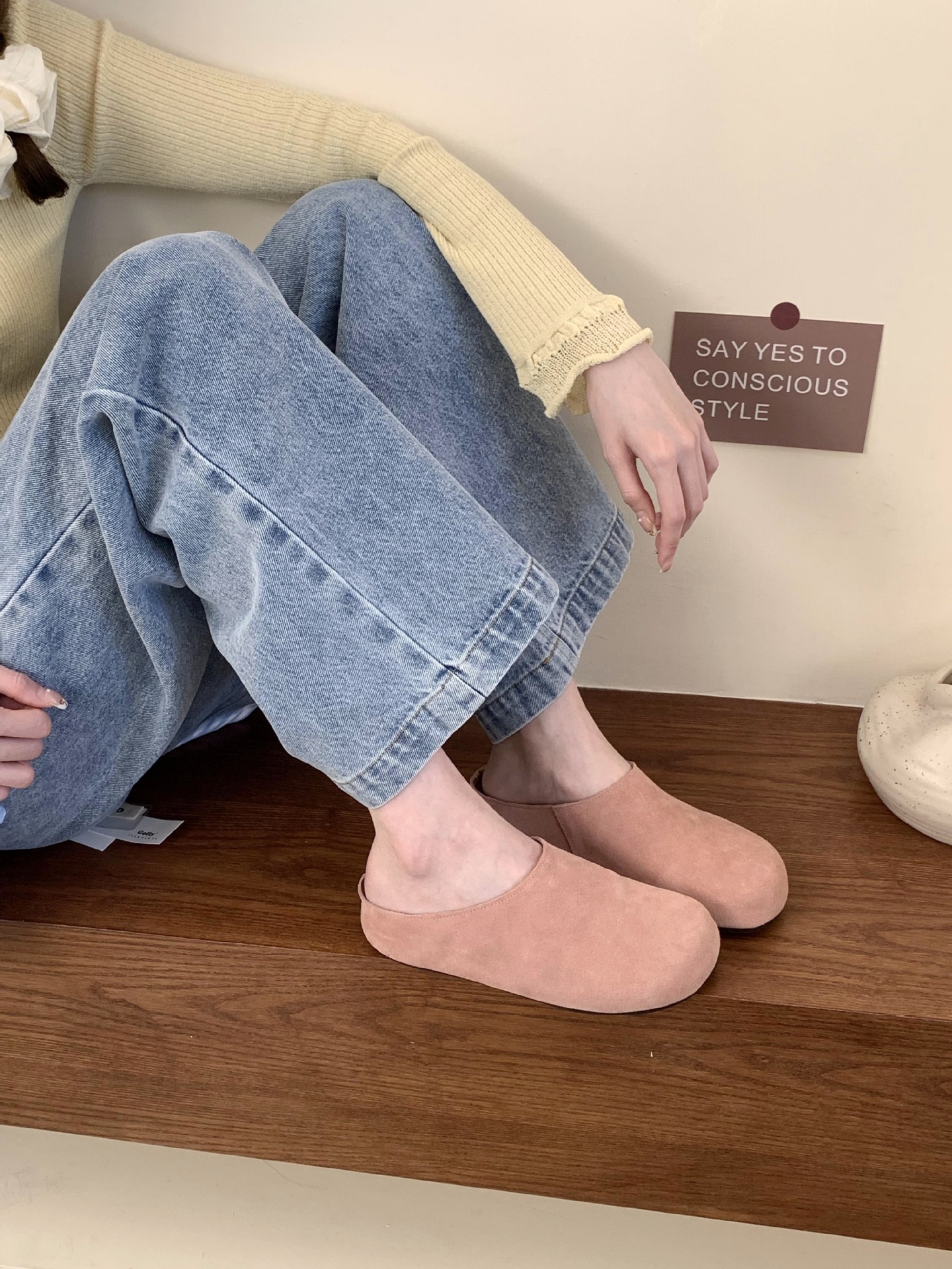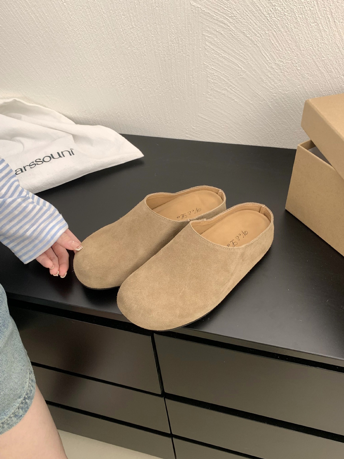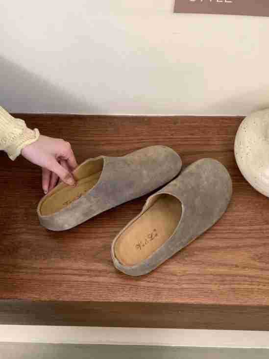 여성을위한 복고풍 신발 2025 봄 새로운 두꺼운 밑창 발가락 반 슬리퍼 겉옷 슬립 온 게으른 뮬러 신발스토어 가기