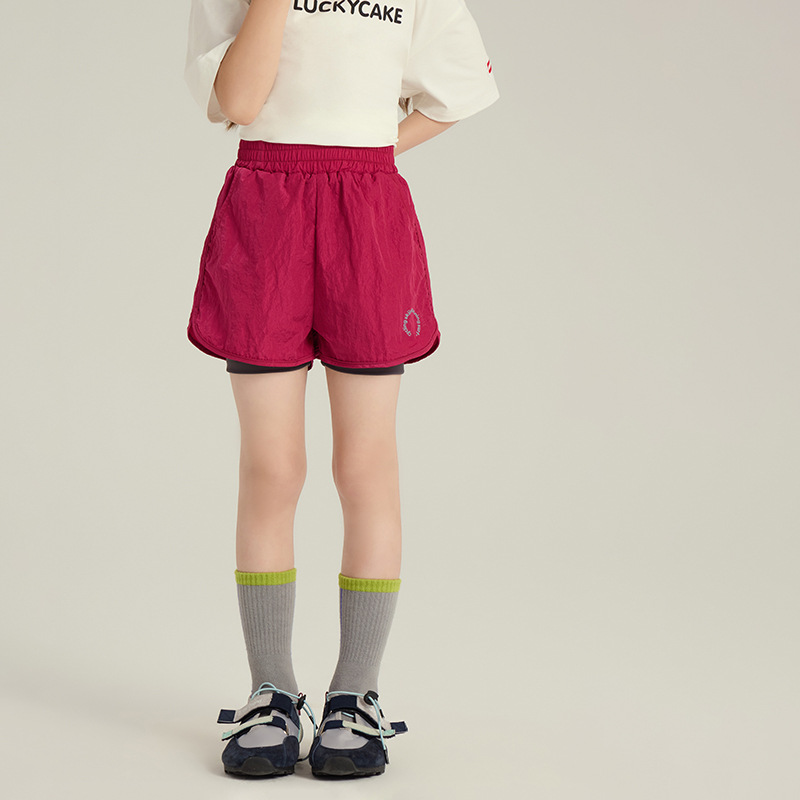 Emo Beibei 소년과 소녀 캐주얼 야외 빠른 건조 반바지 여름 새로운 어린이 경량 가짜 투피스 루즈 스포츠 바지