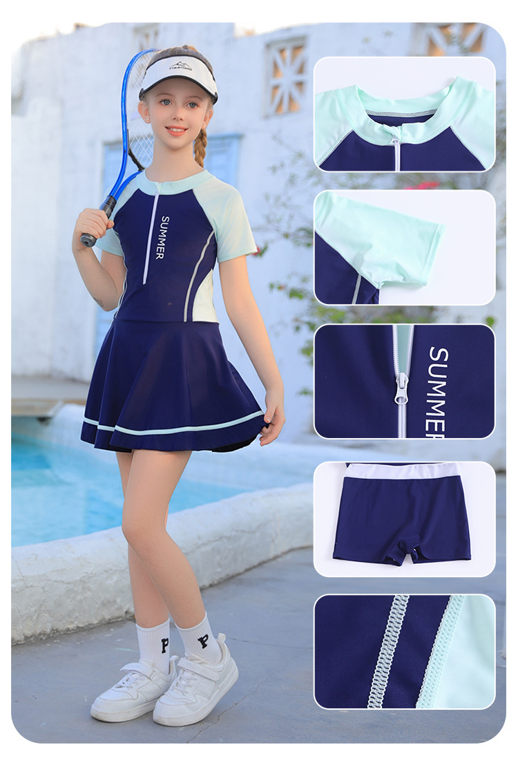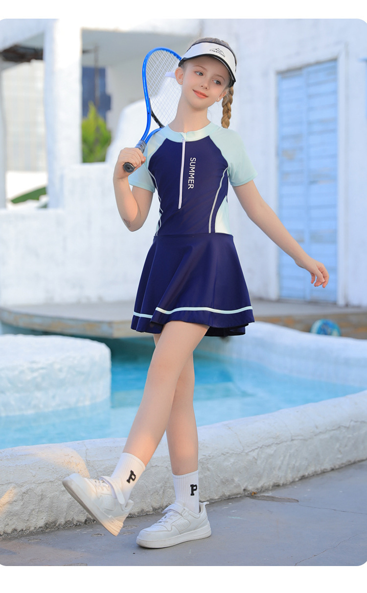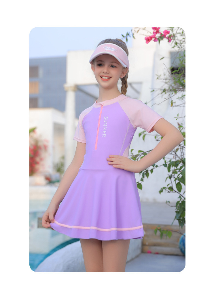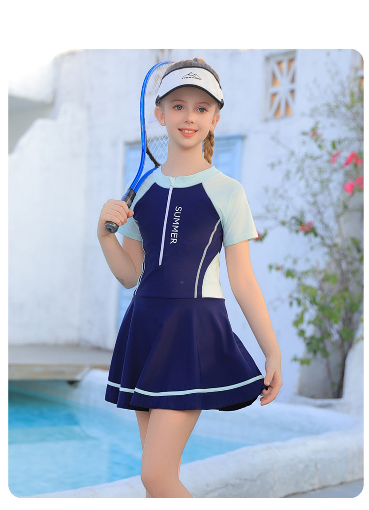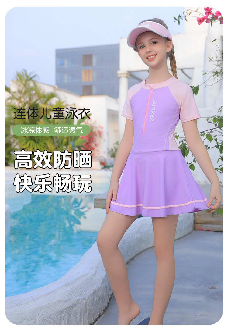AliExpress 어린이 수영복 2025 새로운 원피스 스커트 스타일 보수적이고 세련된 온천 수영복 여학생을위한 중대형 어린이