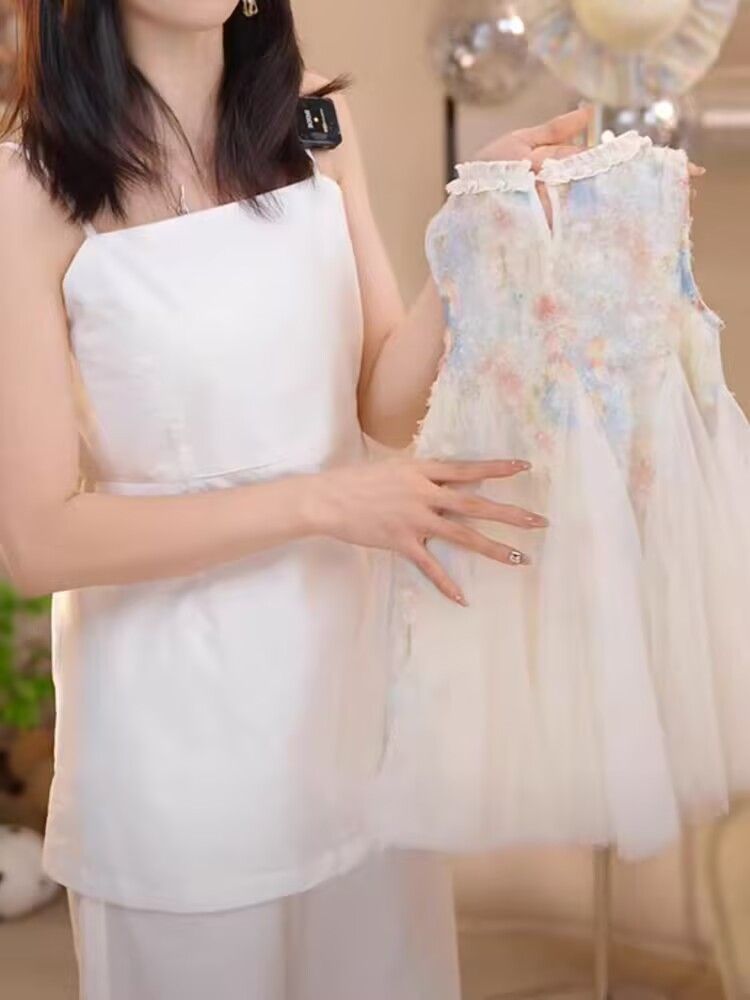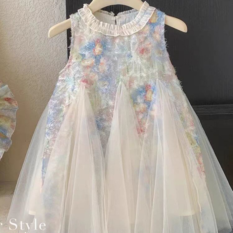 여자 새 드레스 2025 어린이 스타일 스커트 보우 메쉬 퍼프 스커트 조끼 공주 드레스 슈퍼 귀여운스토어 가기