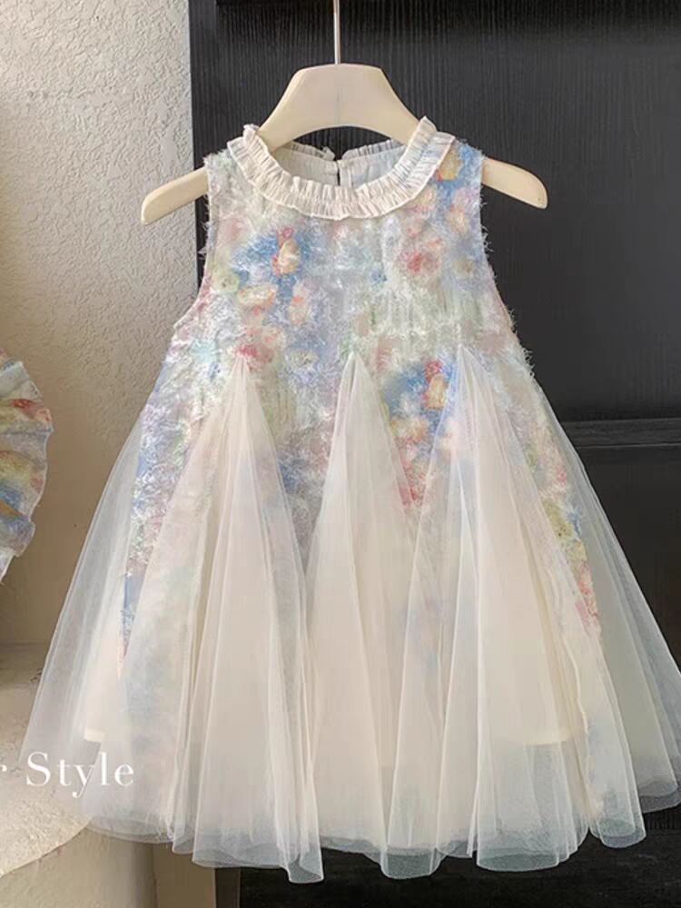 여자 새 드레스 2025 어린이 스타일 스커트 보우 메쉬 퍼프 스커트 조끼 공주 드레스 슈퍼 귀여운