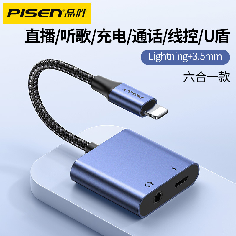 • [업그레이드된 알루미늄 쉘 Liuhe-]라이트닝+3.5mm*통화 라이브 사운드 카드 U 쉴드*블루