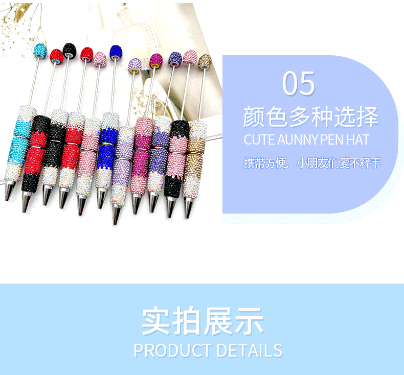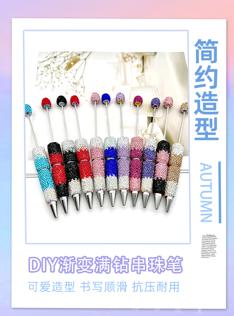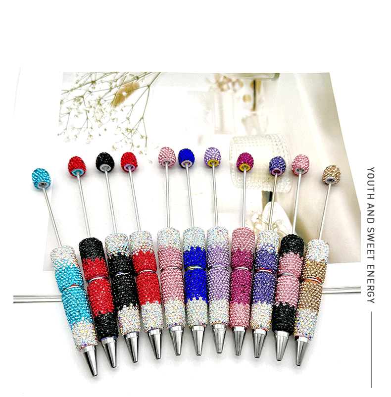 새로운 diy 그라디언트 풀 다이아몬드 구슬 펜 다이아몬드 모자 창조적 인 선물 펜으로 귀여운 곡물 펜을 착용 멀티 컬러 다이아몬드 구슬스토어 가기