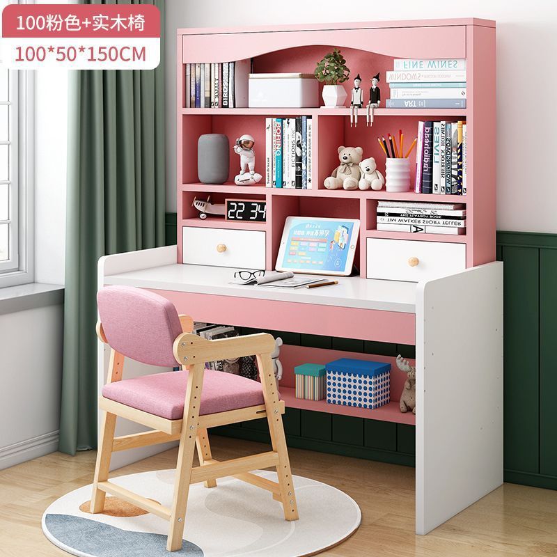 어린이 책상 책장 책장 통합 학생 학습 쓰기 테이블 홈 소녀 침실 컴퓨터 테이블 및 의자 세트