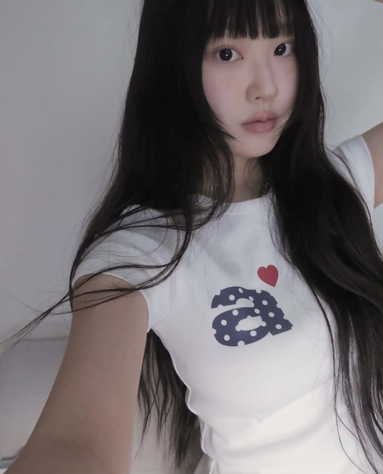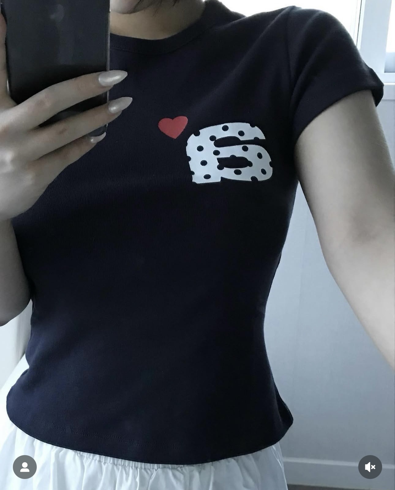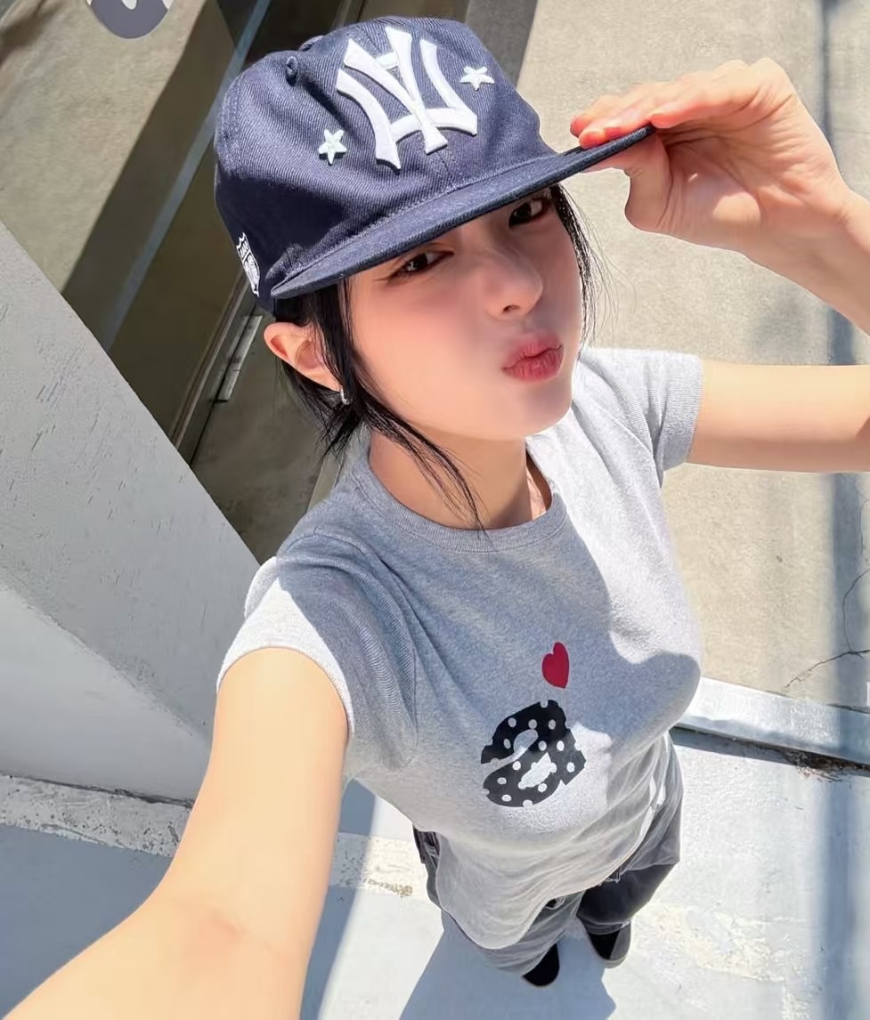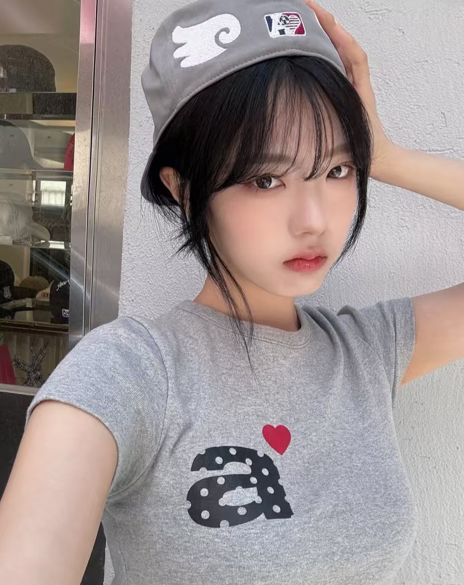 Now/ae 폴카 도트 러브 프린트 슬림 슬림 반팔 티셔츠 소녀 여름스토어 가기