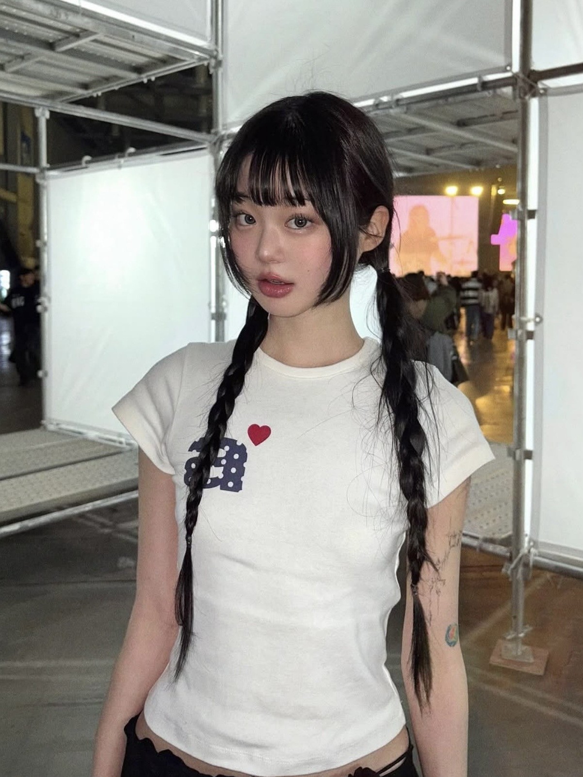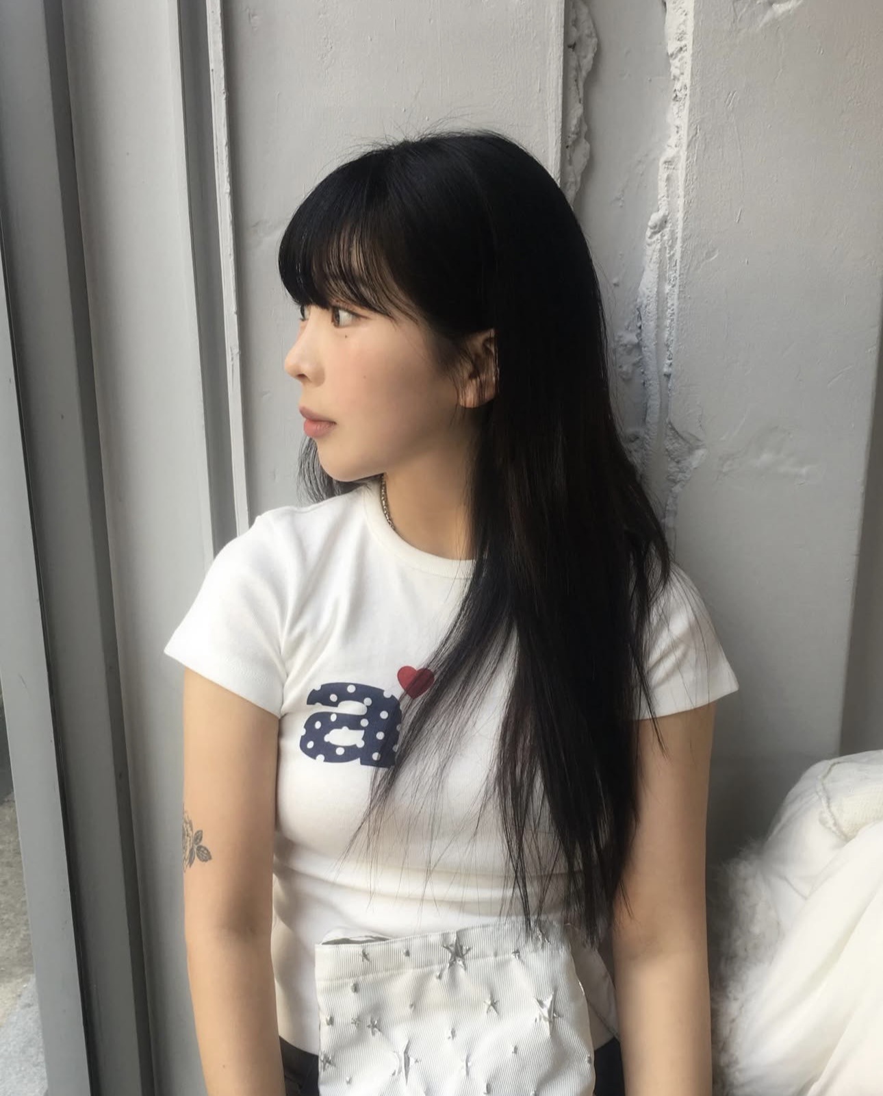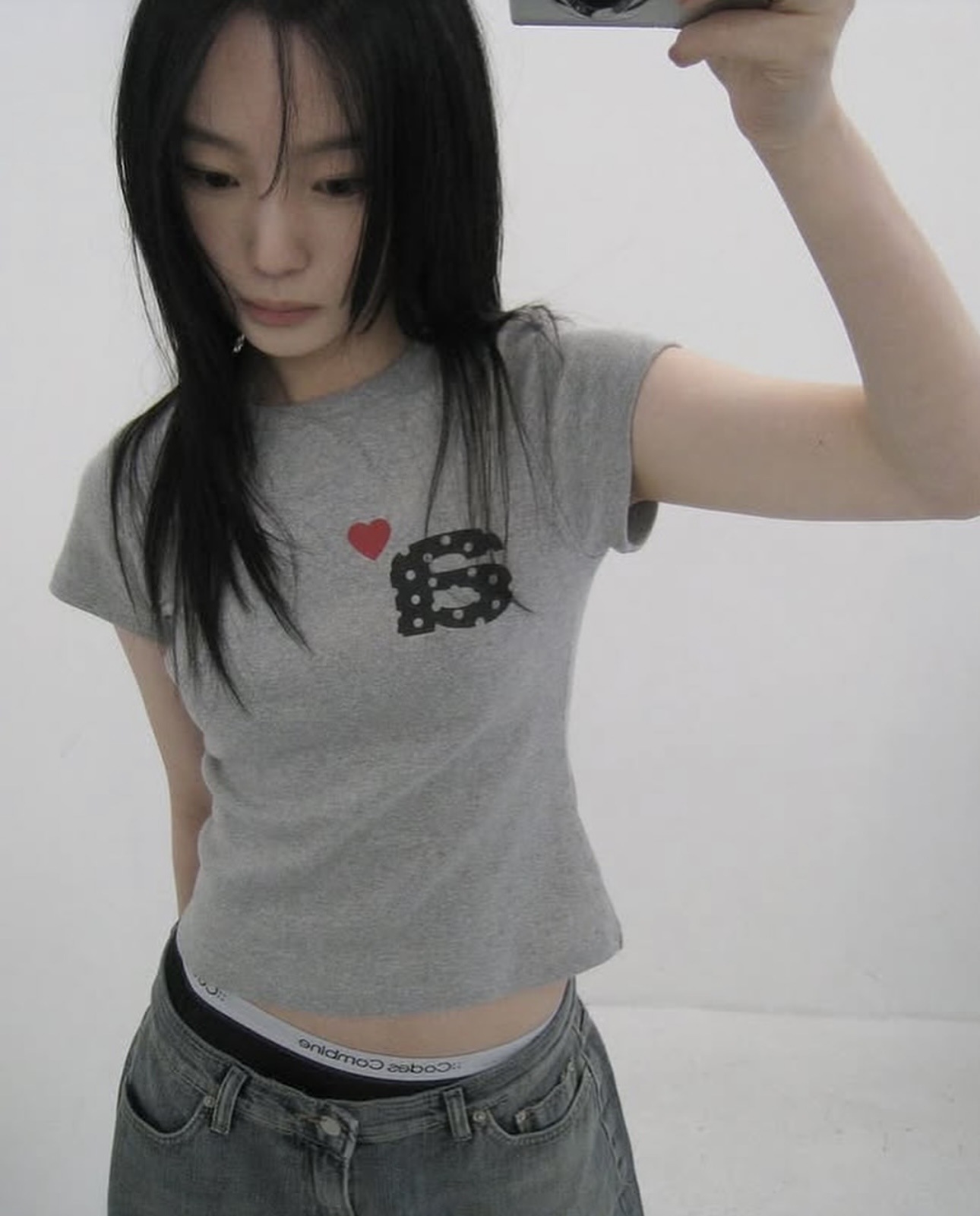 Now/ae 폴카 도트 러브 프린트 슬림 슬림 반팔 티셔츠 소녀 여름스토어 가기