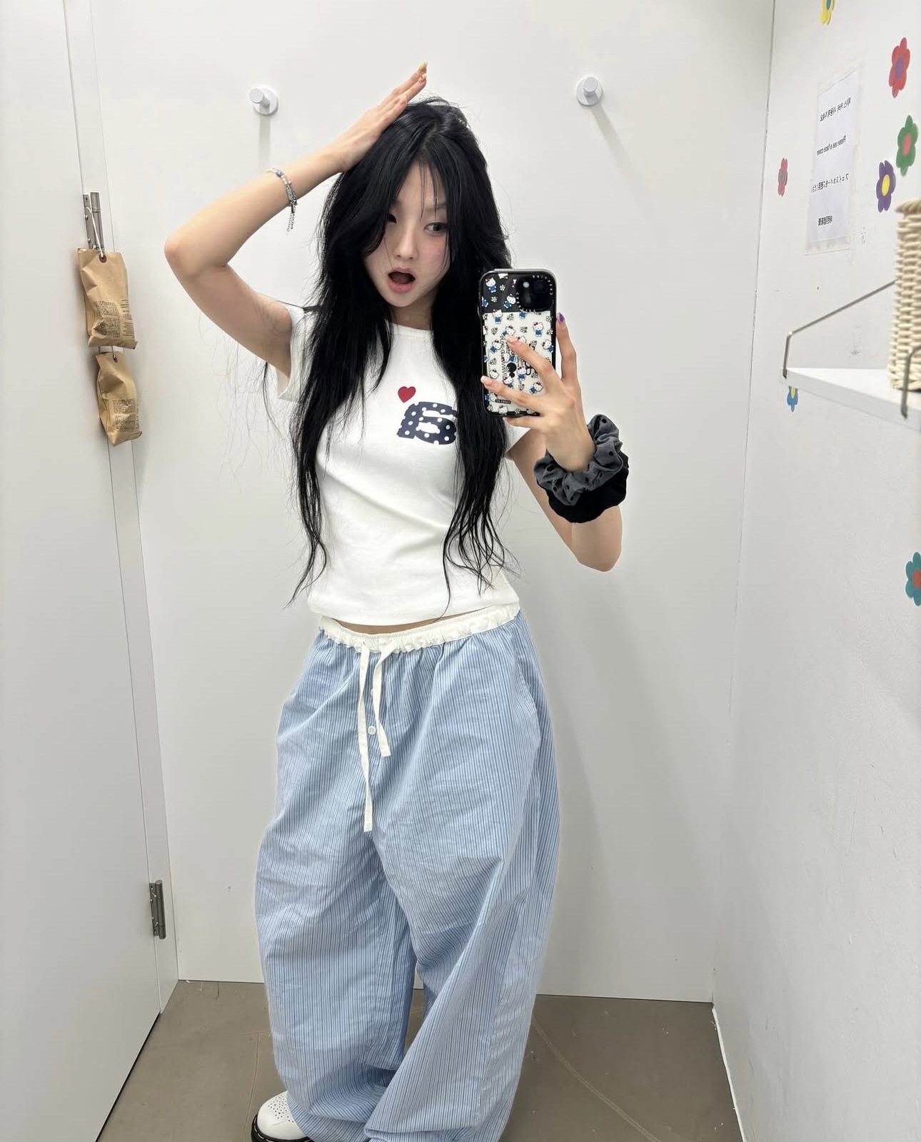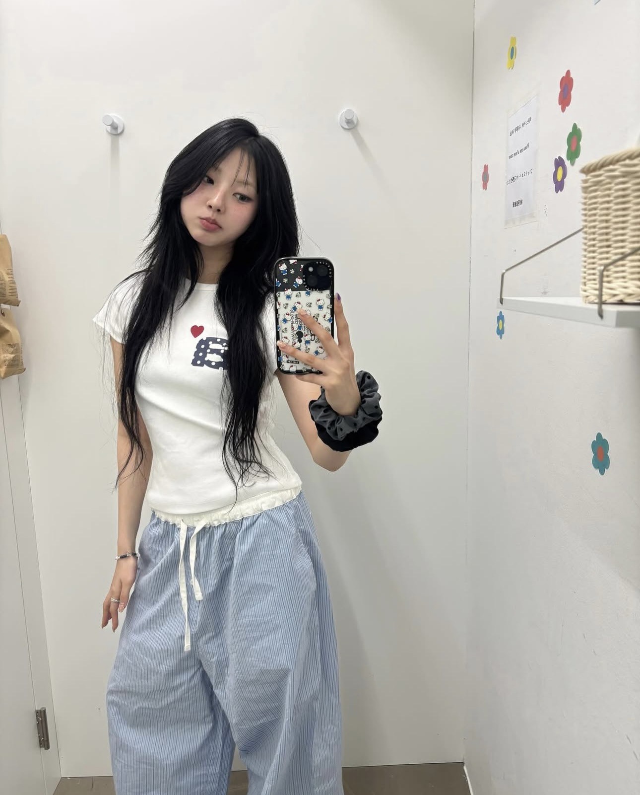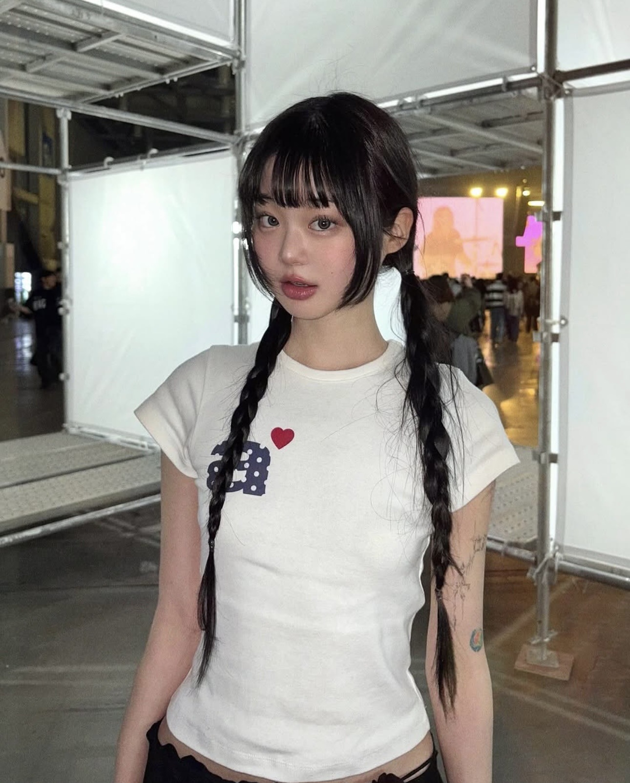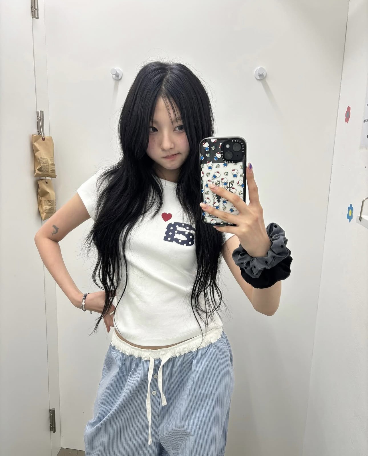 Now/ae 폴카 도트 러브 프린트 슬림 슬림 반팔 티셔츠 소녀 여름스토어 가기