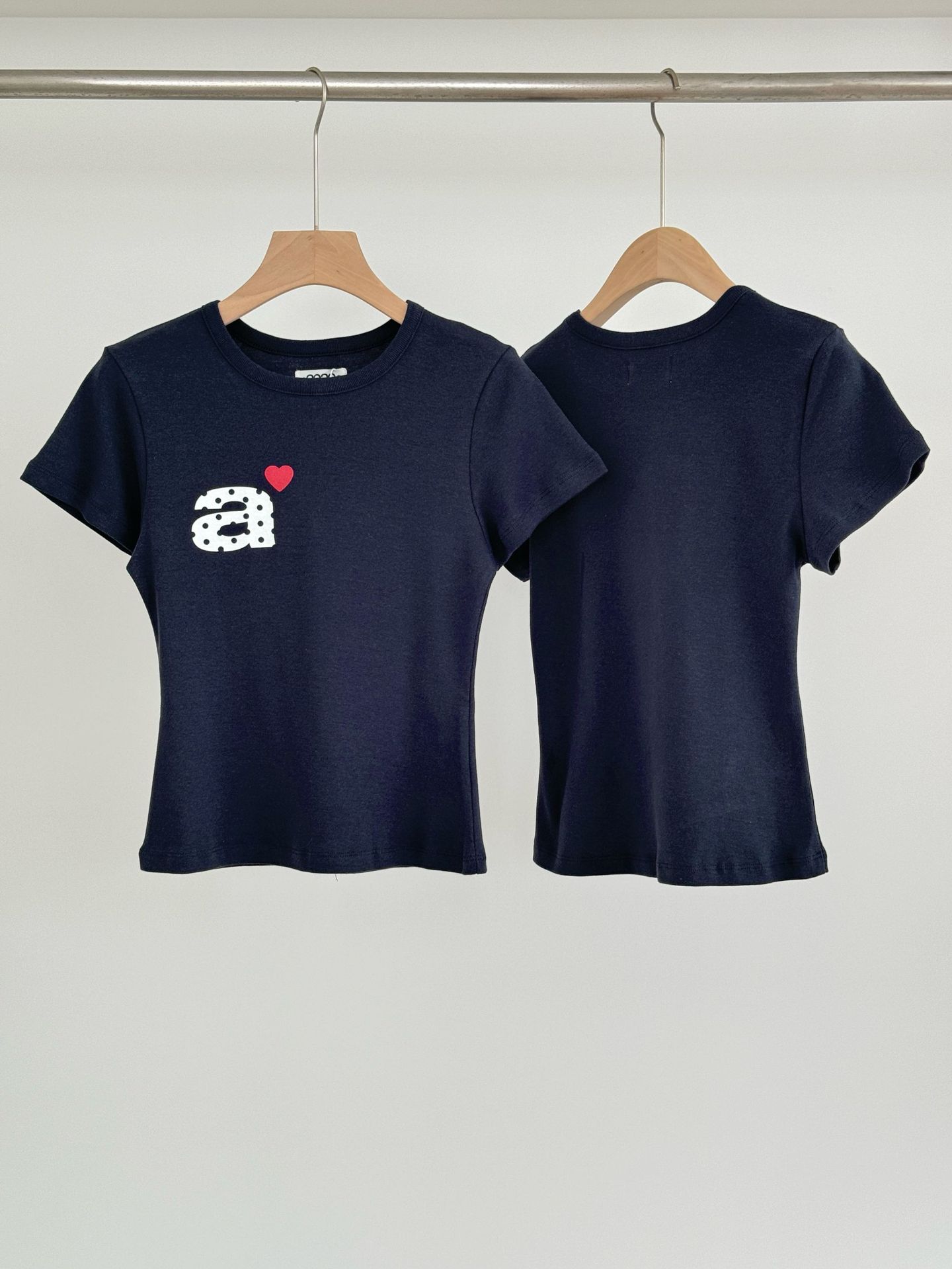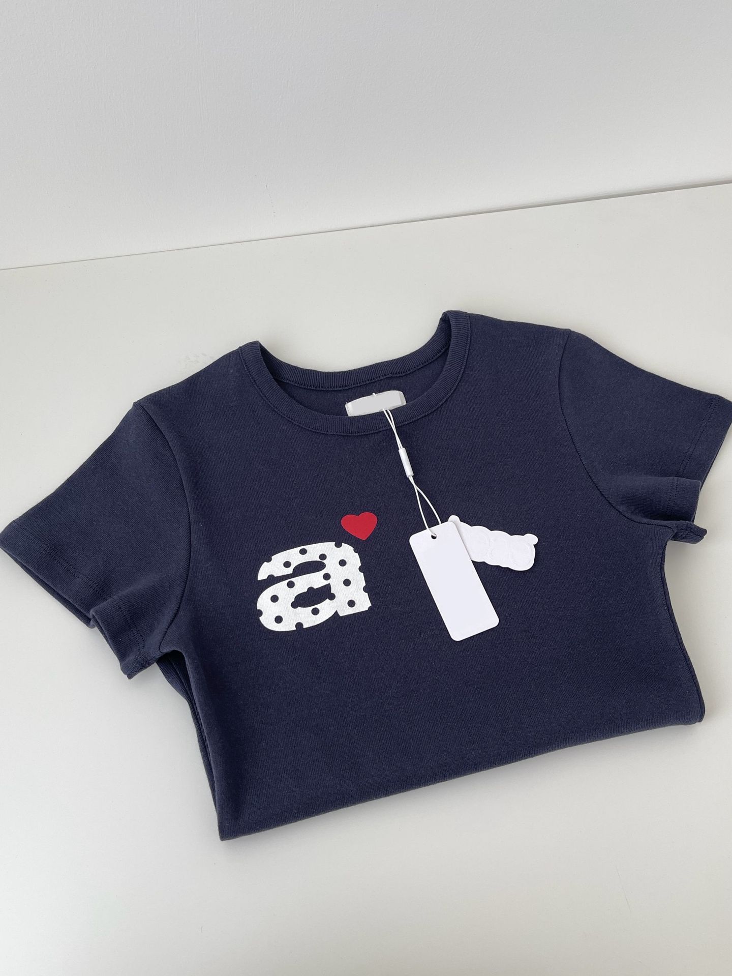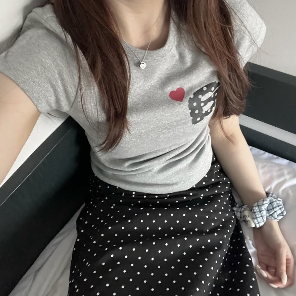 Now/ae 폴카 도트 러브 프린트 슬림 슬림 반팔 티셔츠 소녀 여름