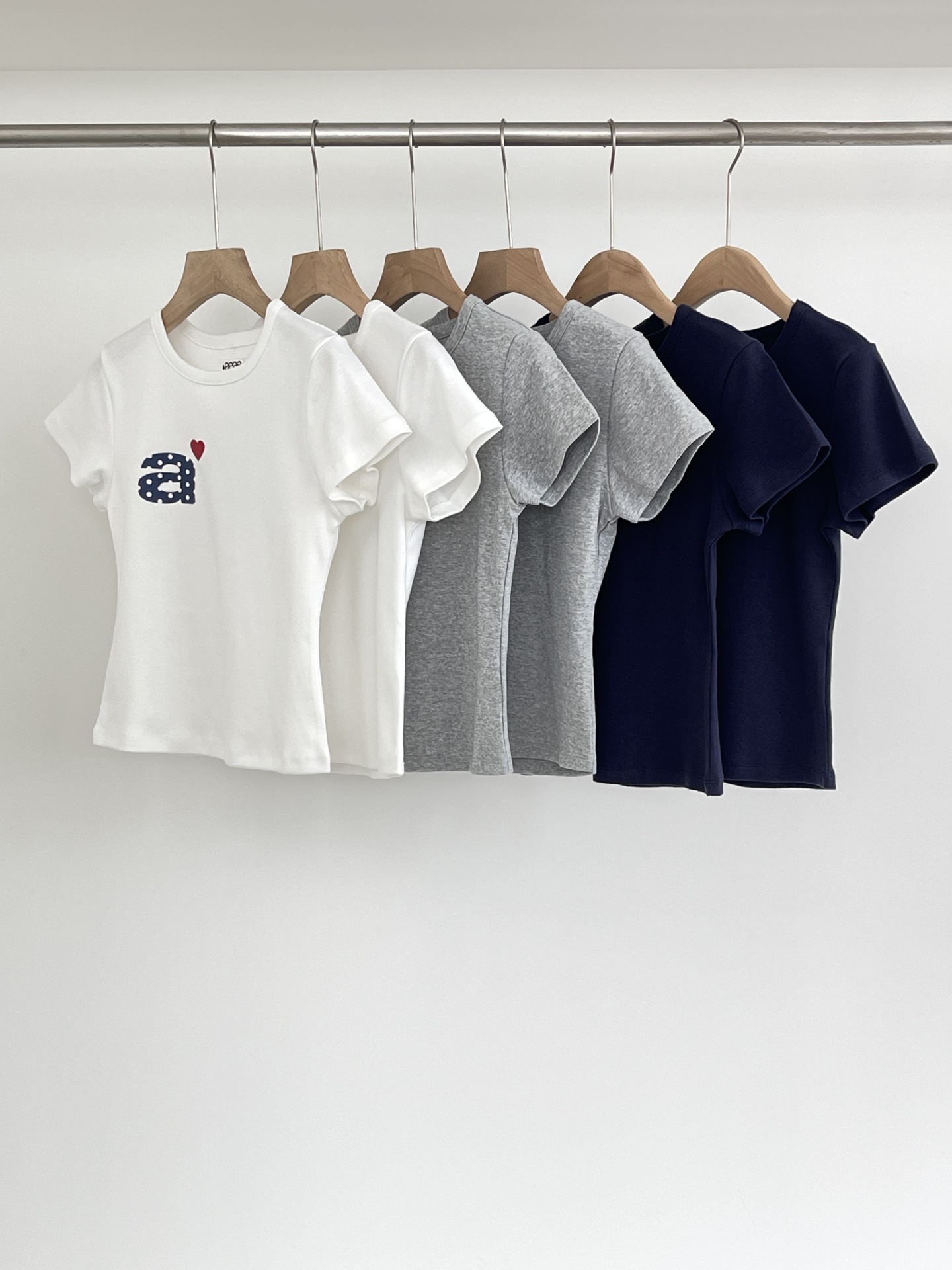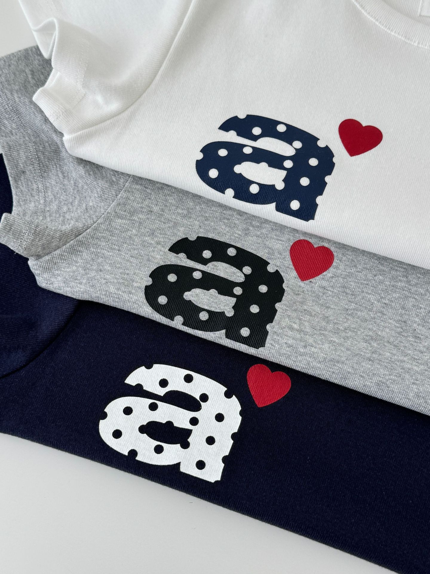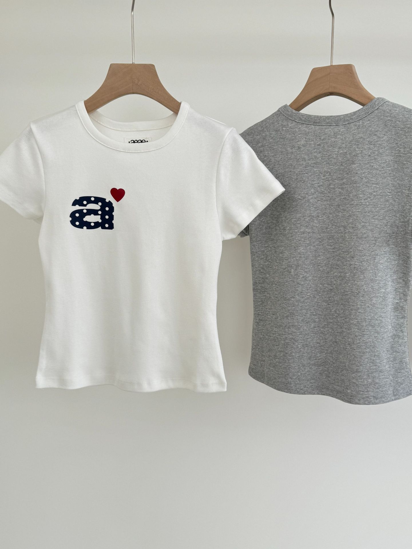Now/ae 폴카 도트 러브 프린트 슬림 슬림 반팔 티셔츠 소녀 여름