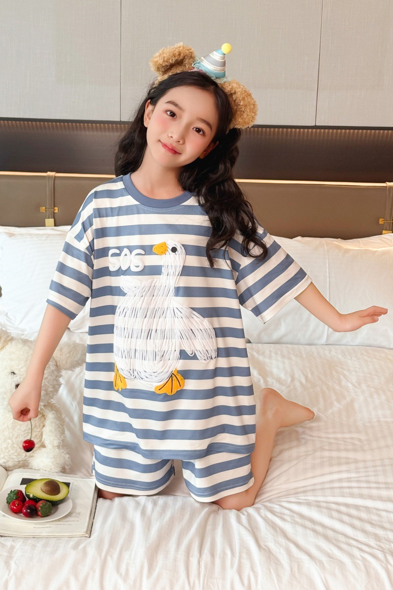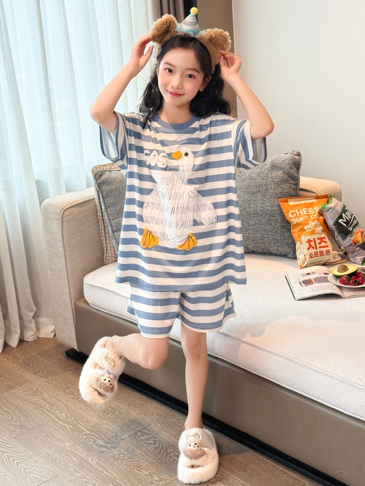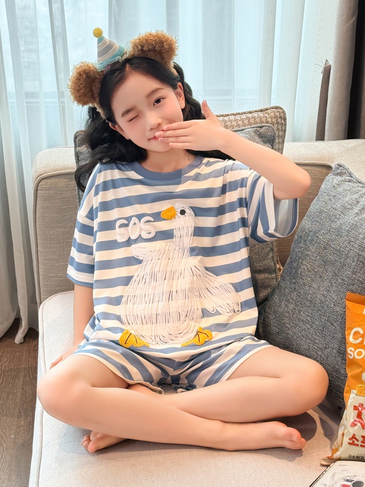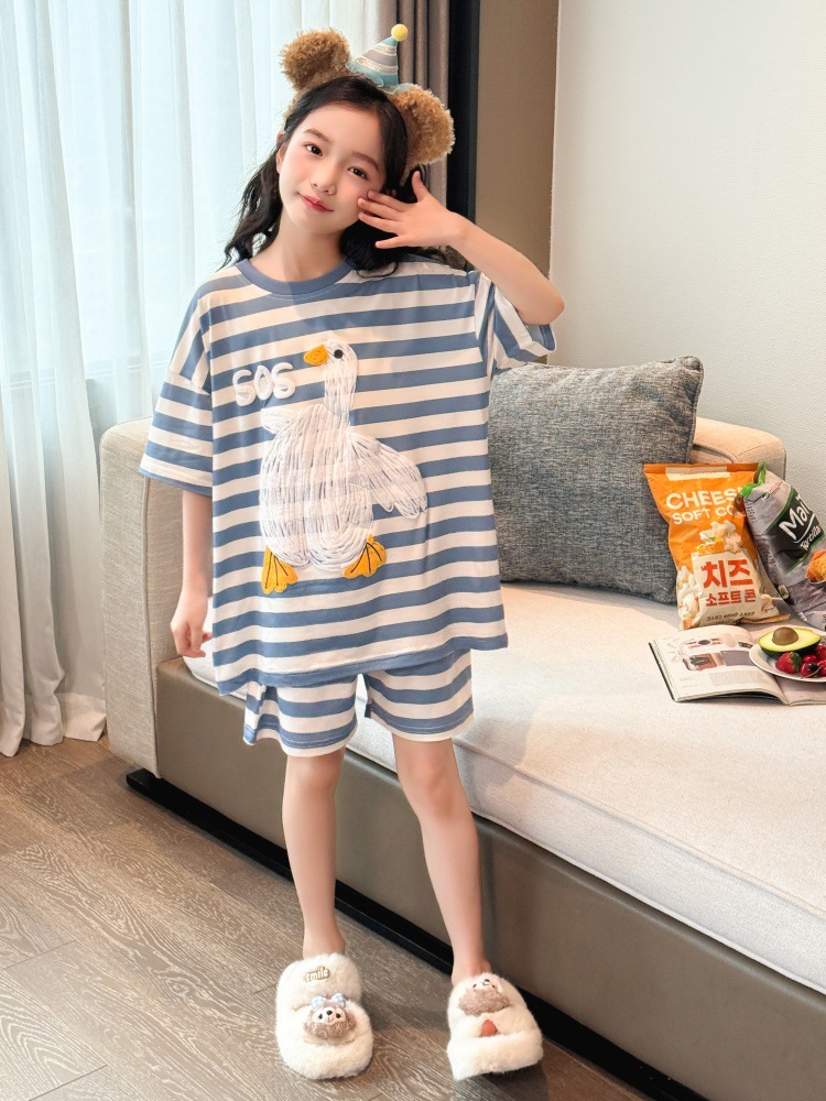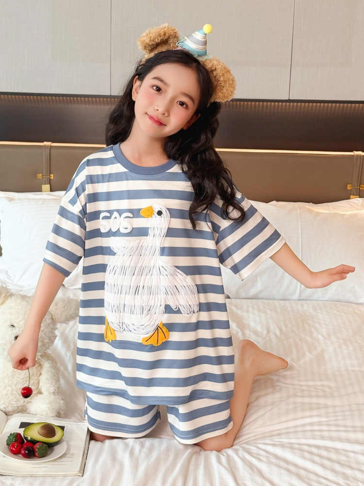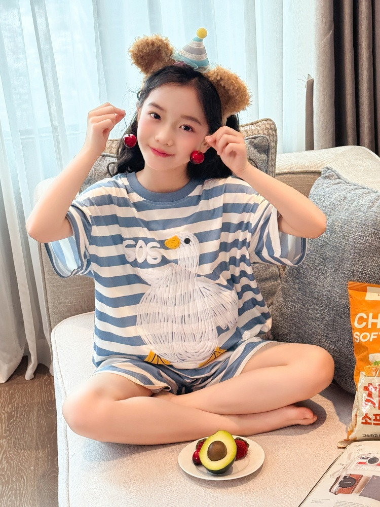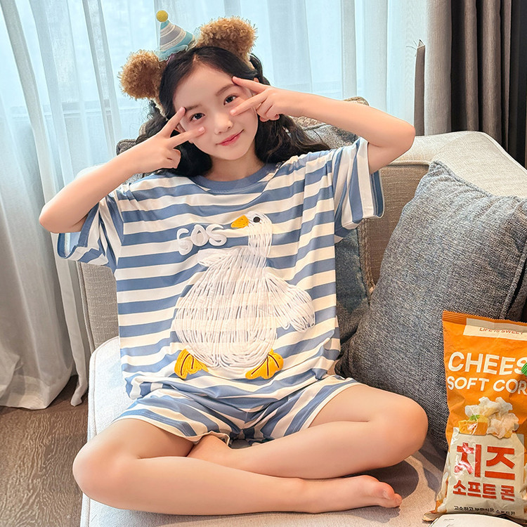 다이파 어린이 여름 잠옷 세트 소녀 줄무늬 반팔 집 옷 얇은 에어컨 옷스토어 가기