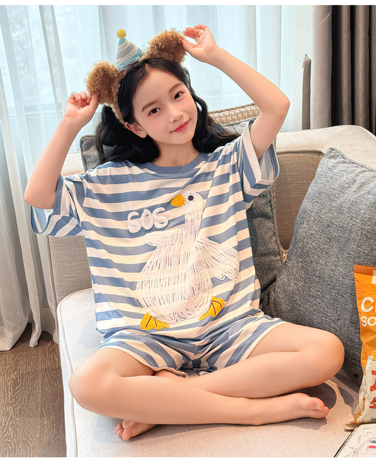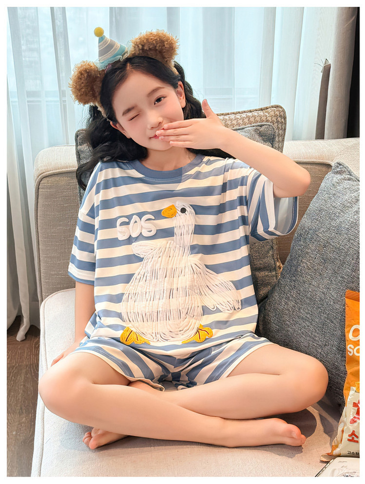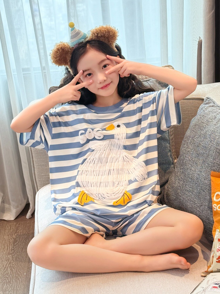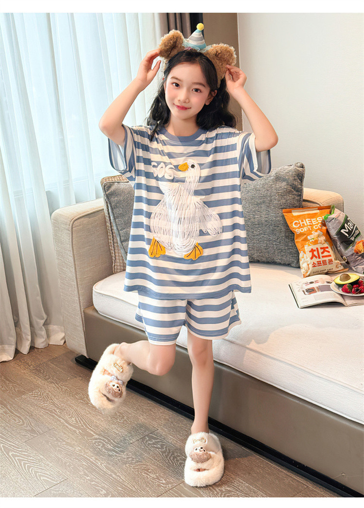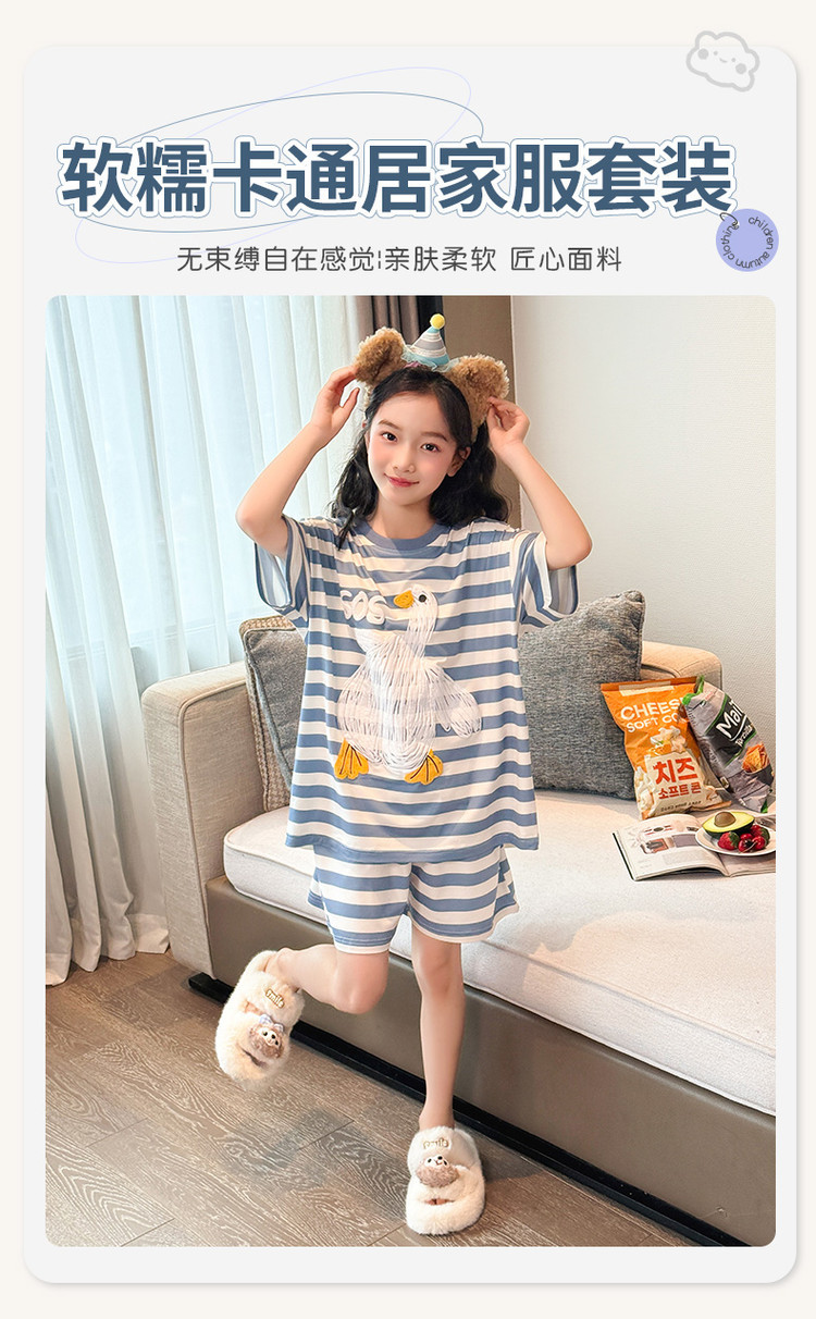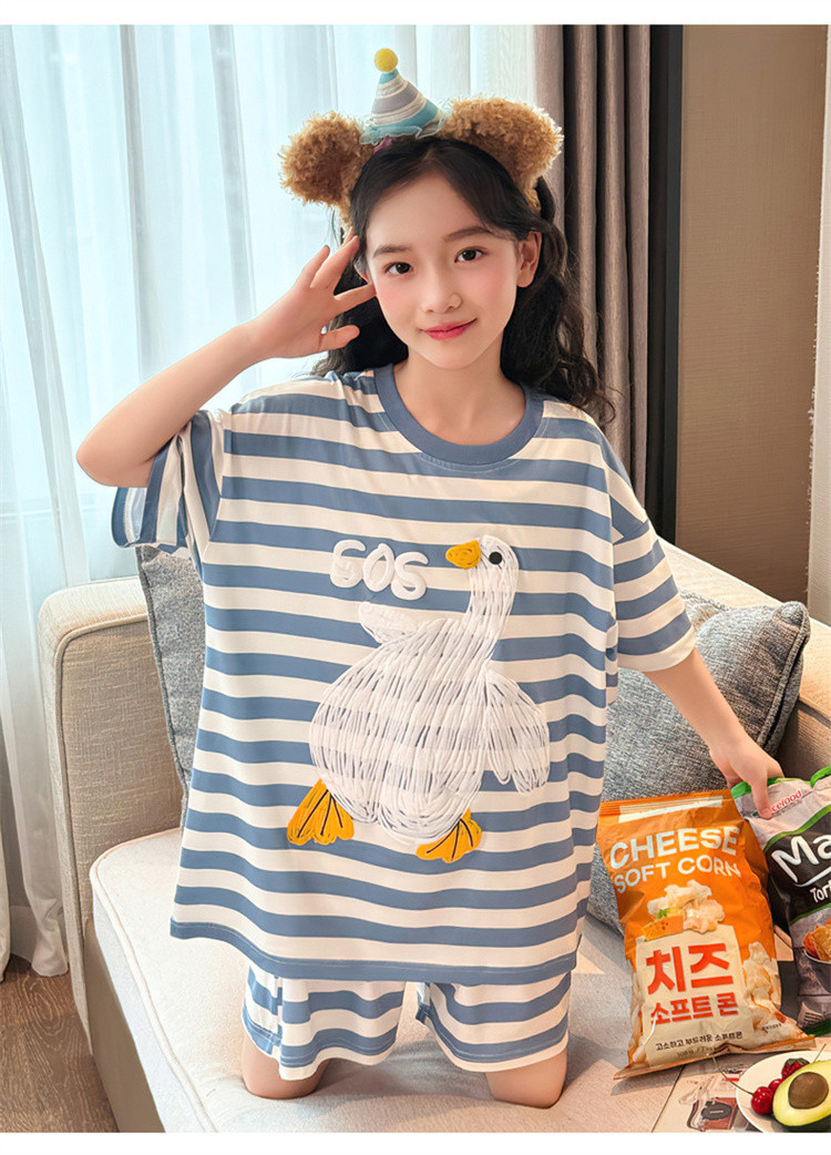 다이파 어린이 여름 잠옷 세트 소녀 줄무늬 반팔 집 옷 얇은 에어컨 옷스토어 가기