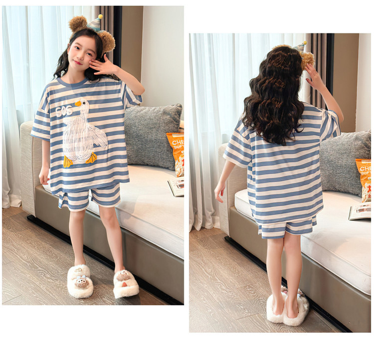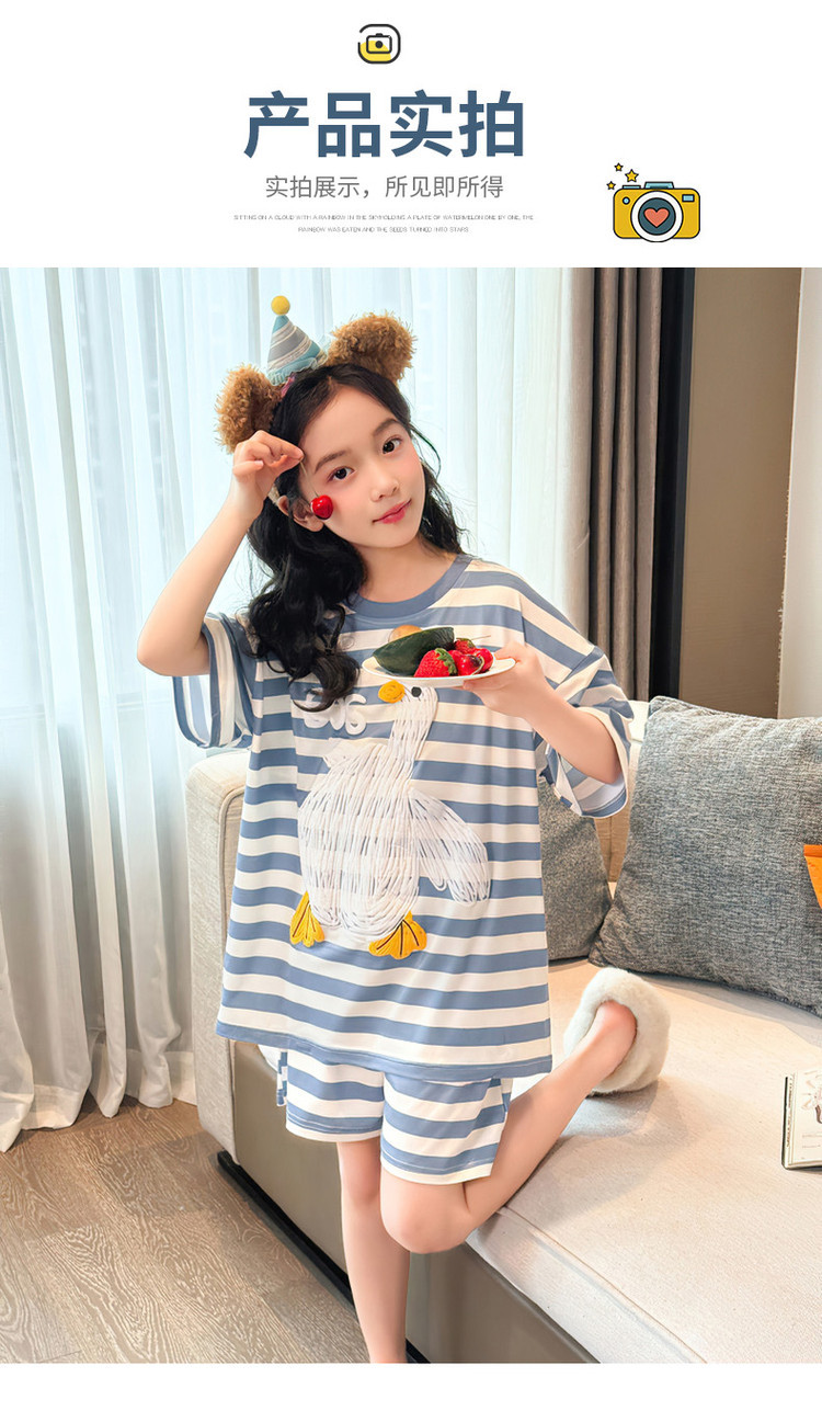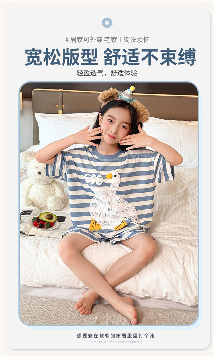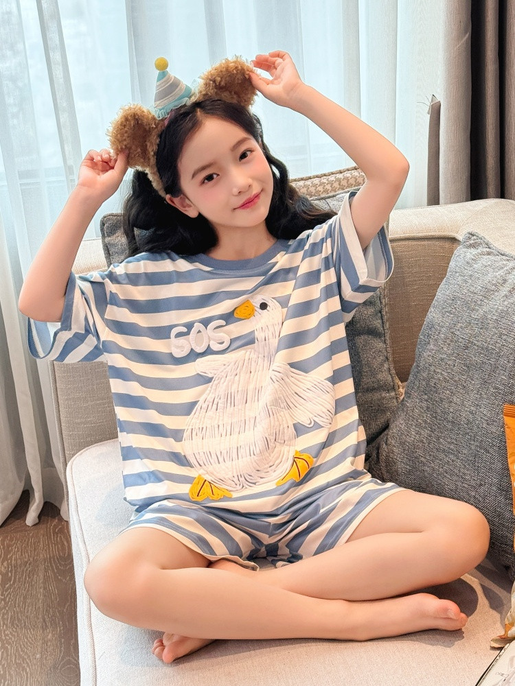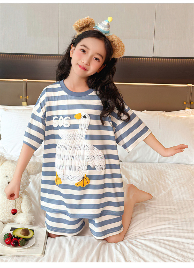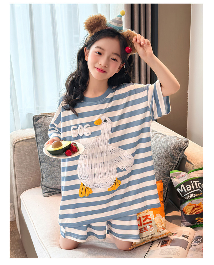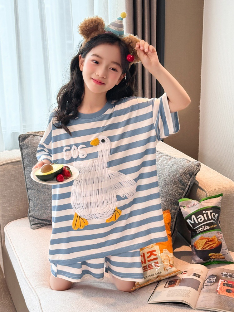 다이파 어린이 여름 잠옷 세트 소녀 줄무늬 반팔 집 옷 얇은 에어컨 옷스토어 가기