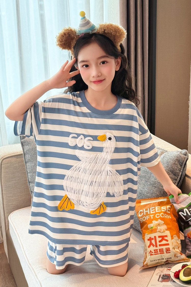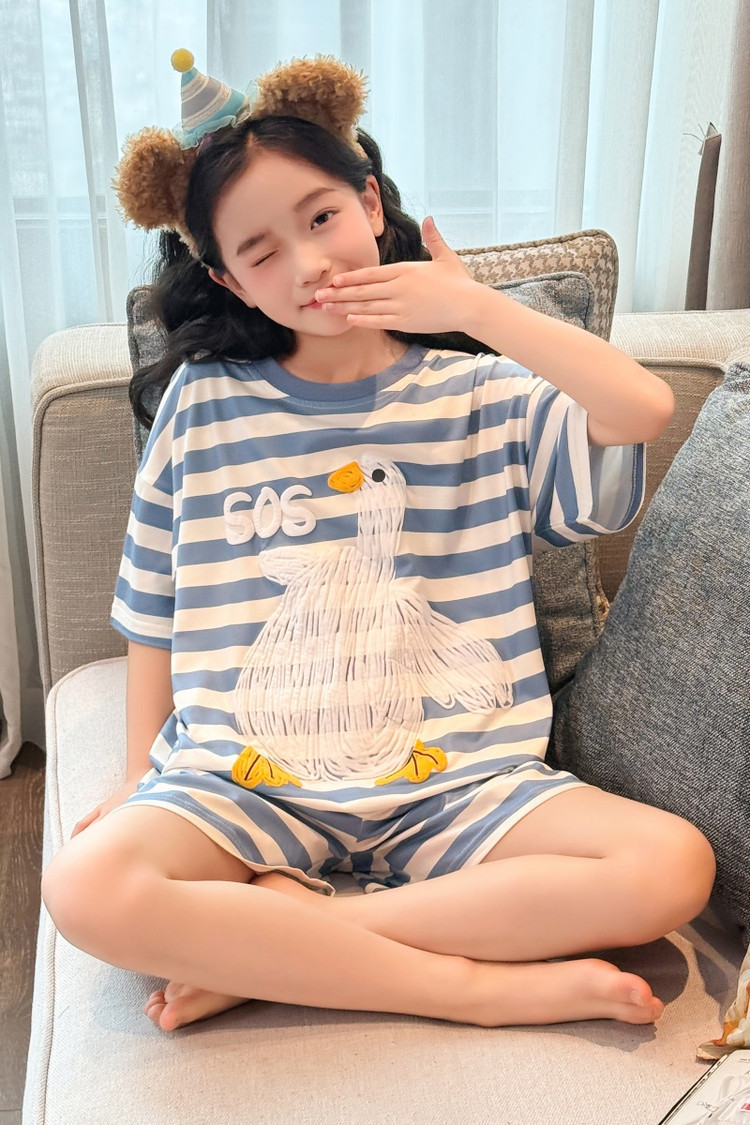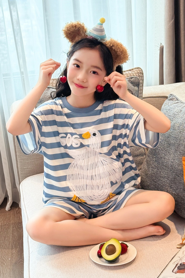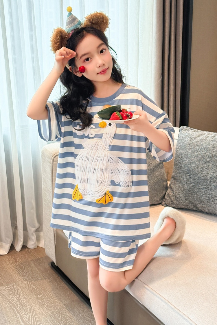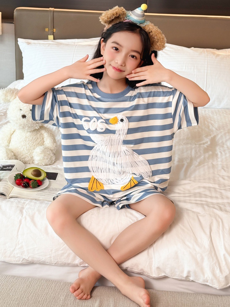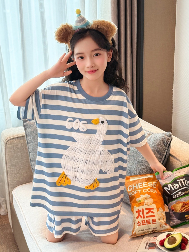 다이파 어린이 여름 잠옷 세트 소녀 줄무늬 반팔 집 옷 얇은 에어컨 옷스토어 가기