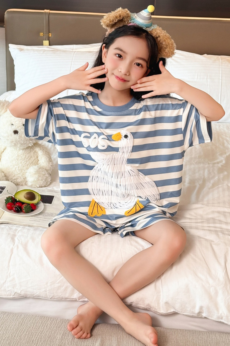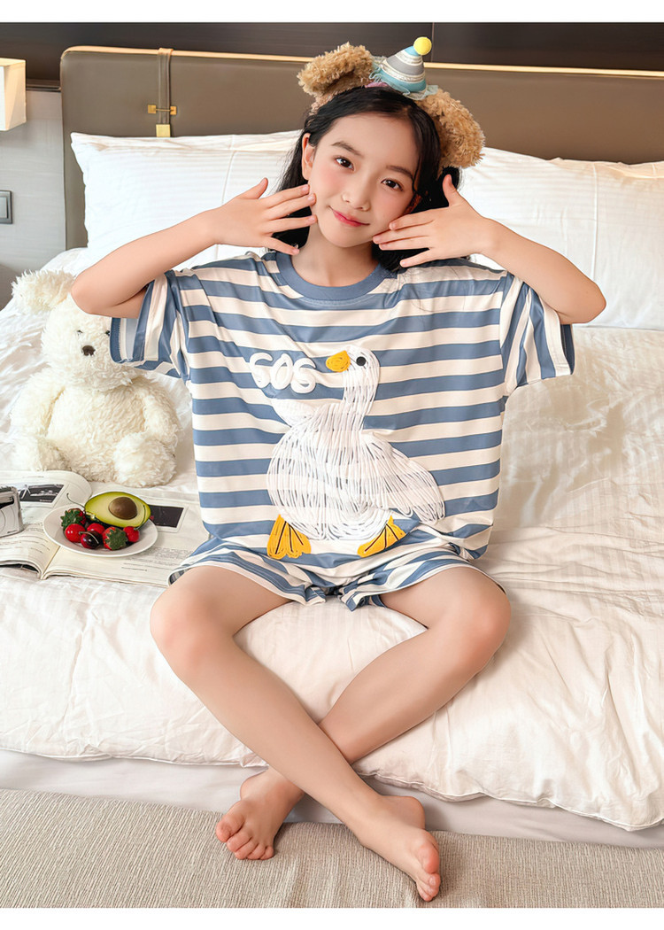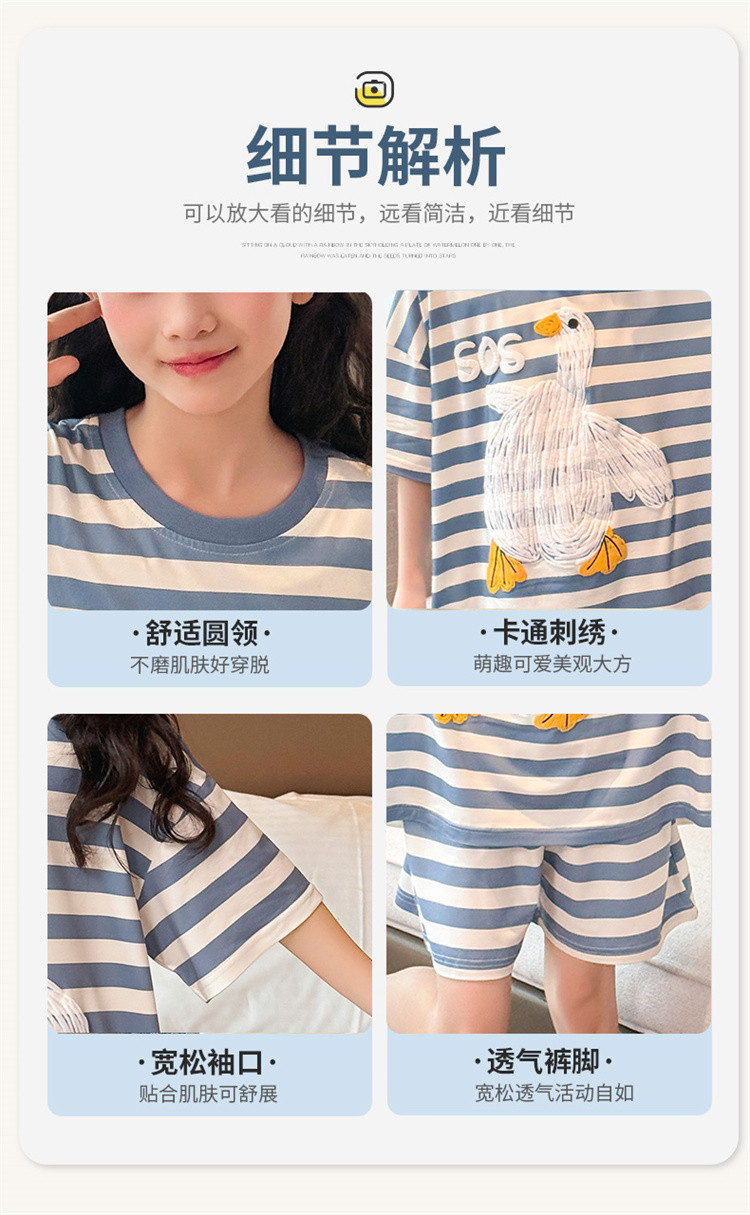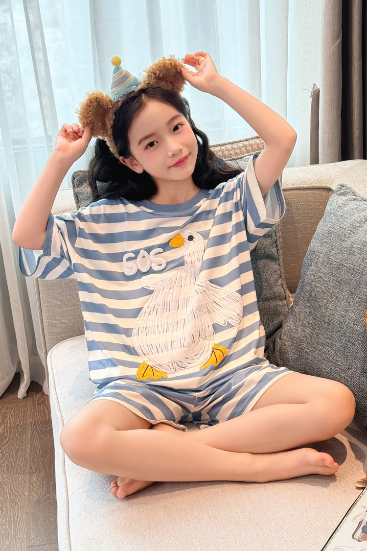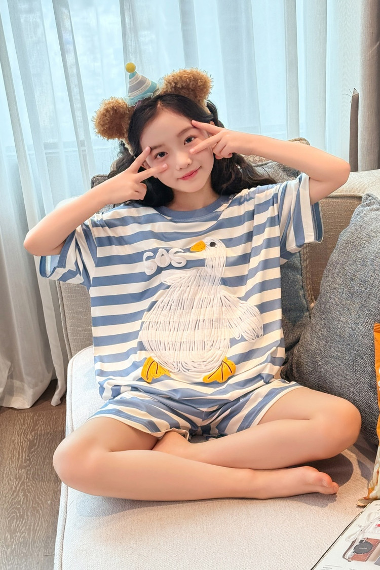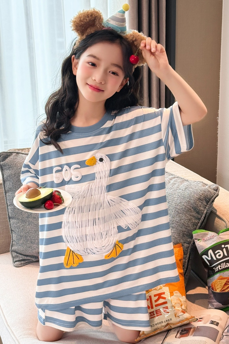 다이파 어린이 여름 잠옷 세트 소녀 줄무늬 반팔 집 옷 얇은 에어컨 옷스토어 가기