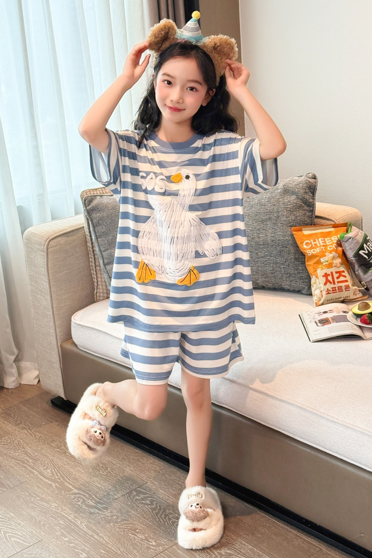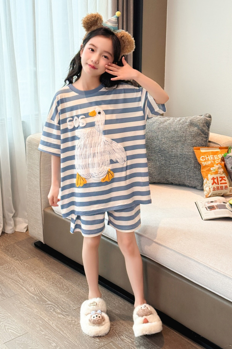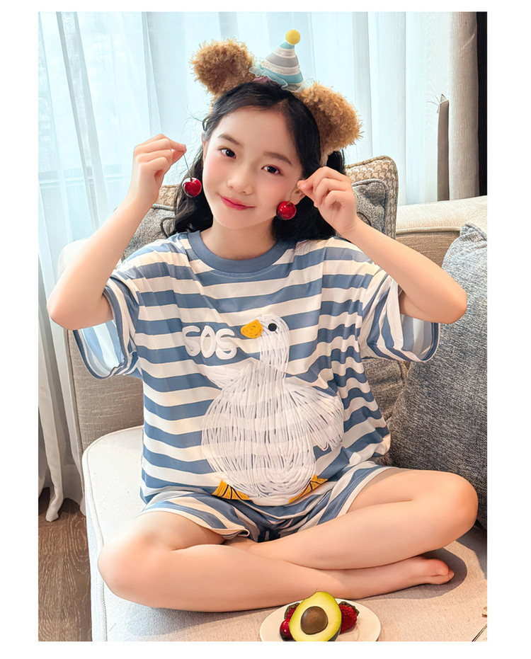 다이파 어린이 여름 잠옷 세트 소녀 줄무늬 반팔 집 옷 얇은 에어컨 옷