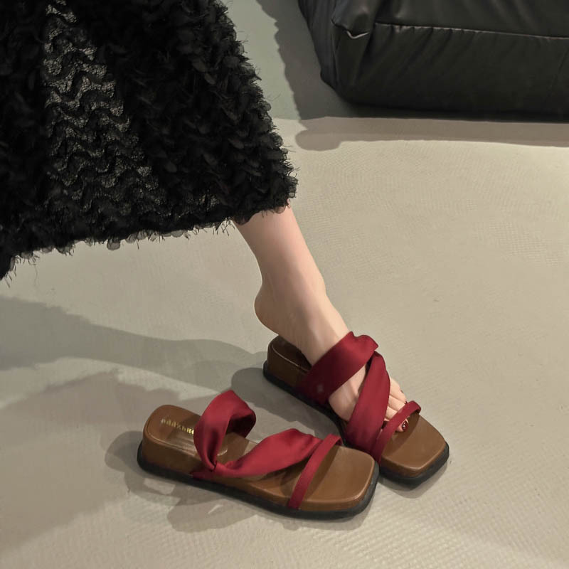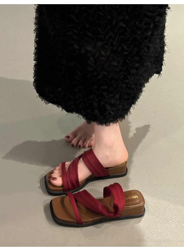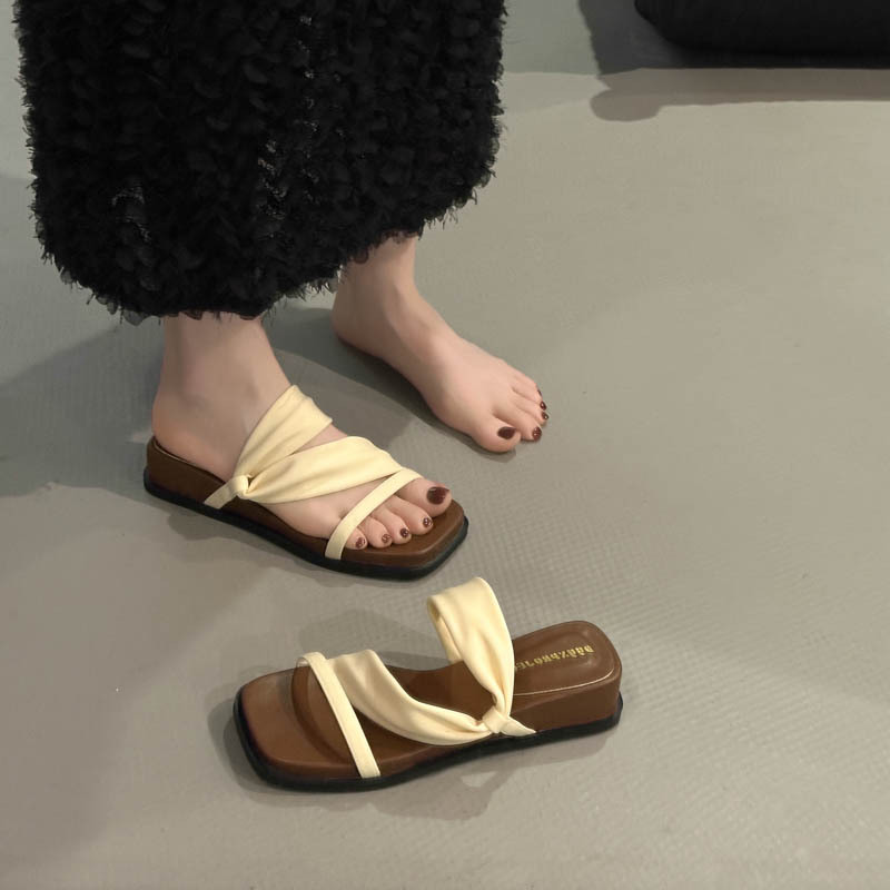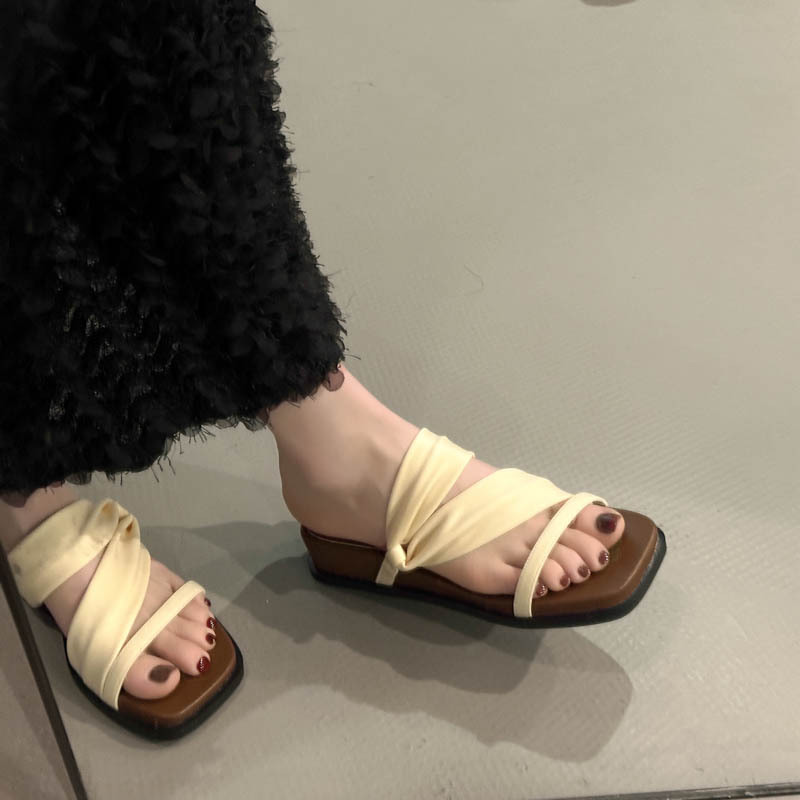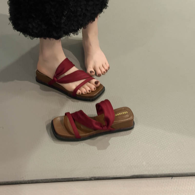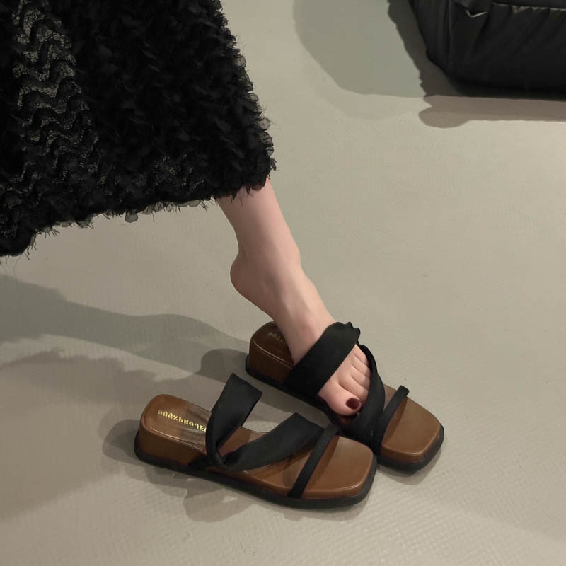 부드러운 양가죽 ~ 두꺼운 밑창 스퀘어 헤드 샌들과 슬리퍼 여성용 복고풍 우아한 스커트 샌들 투웨어 슬리퍼스토어 가기