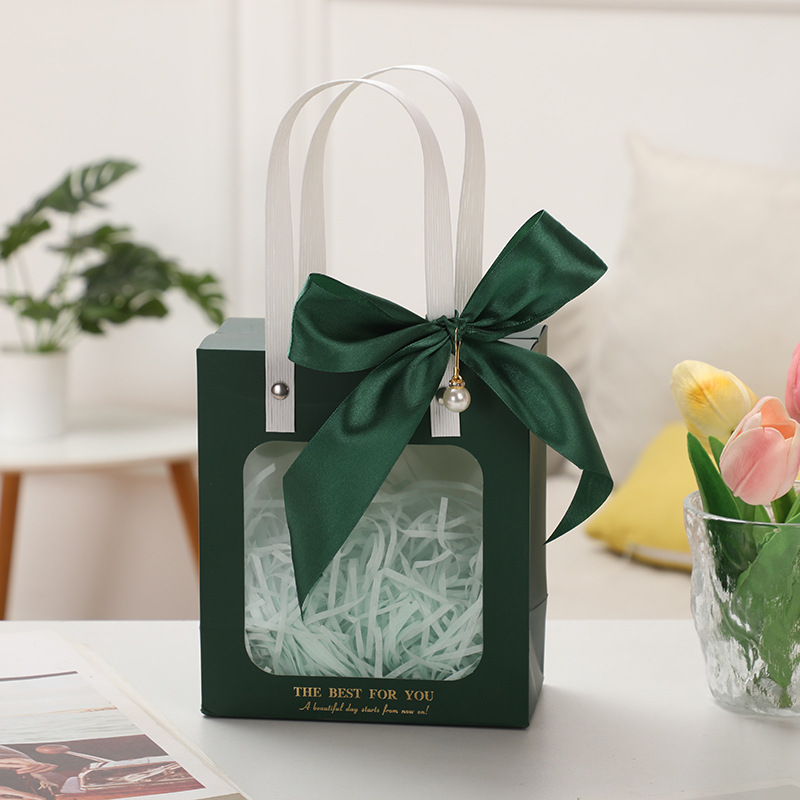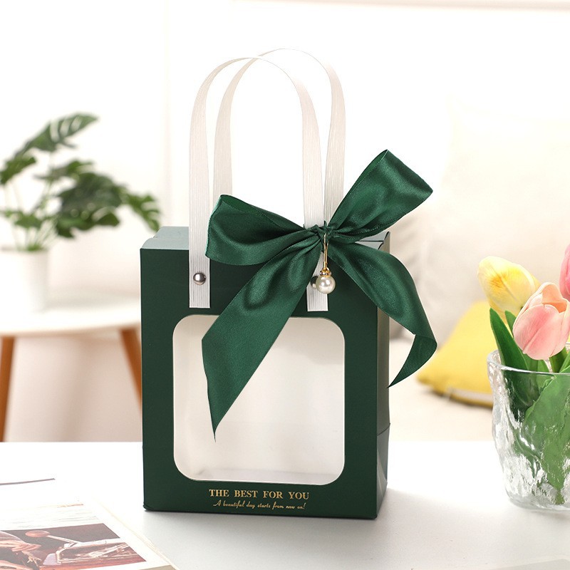 • 녹색 + 리본 + 진주 액세서리, 흰색 판지, 중간 크기 18*8.5*21cm