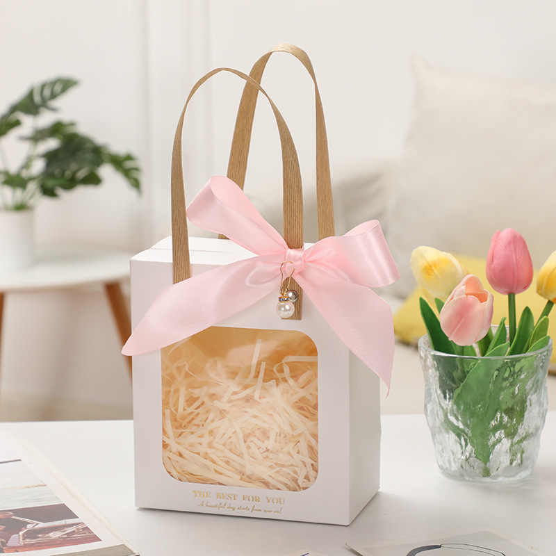 • 한국 핑크 + 라피아 10g + 리본 + 진주 액세서리, 흰색 판지, 작은 크기 14.5*8*16.5cm