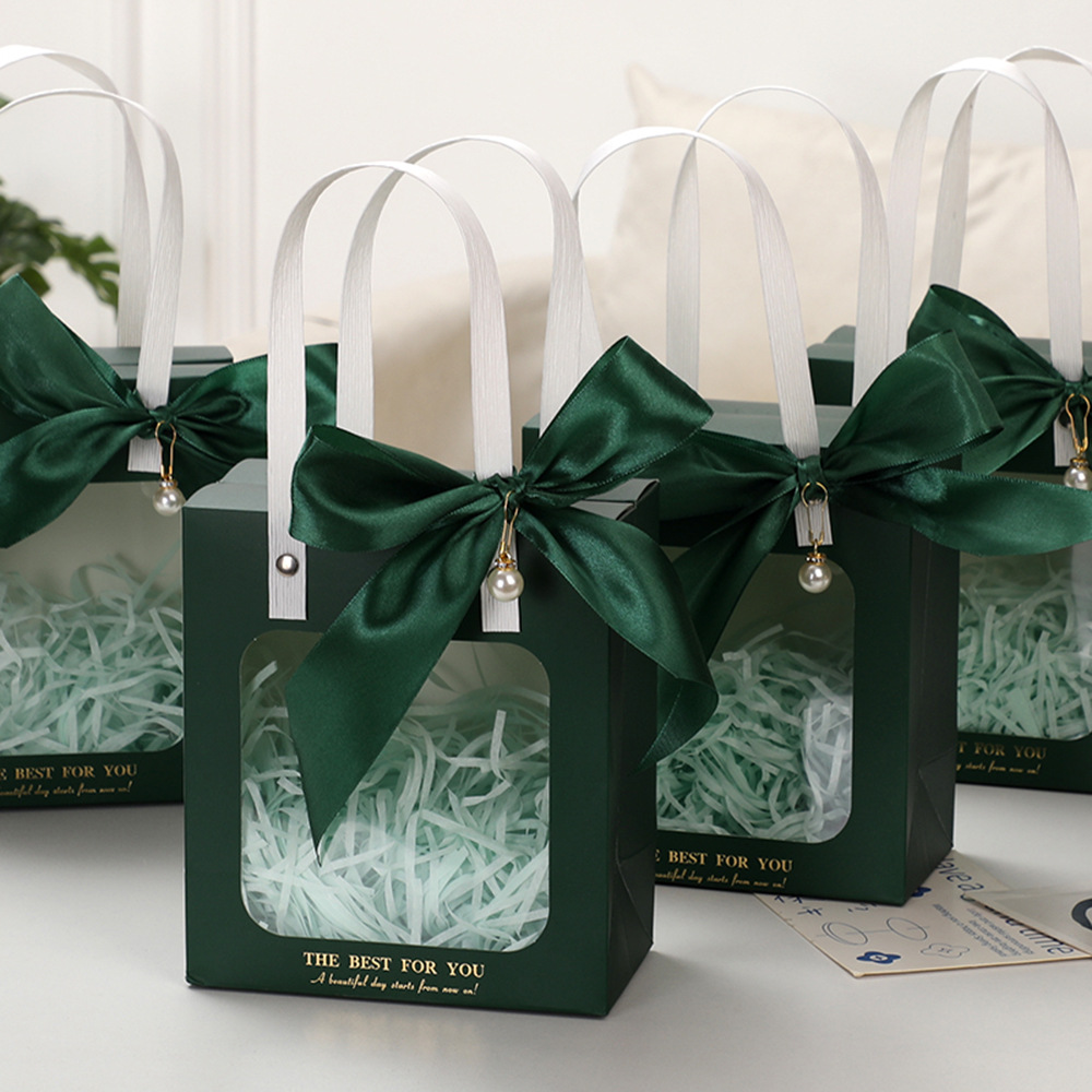 • 녹색 + 리본 + 진주 액세서리, 흰색 판지, 작은 크기 14.5*8*16.5cm