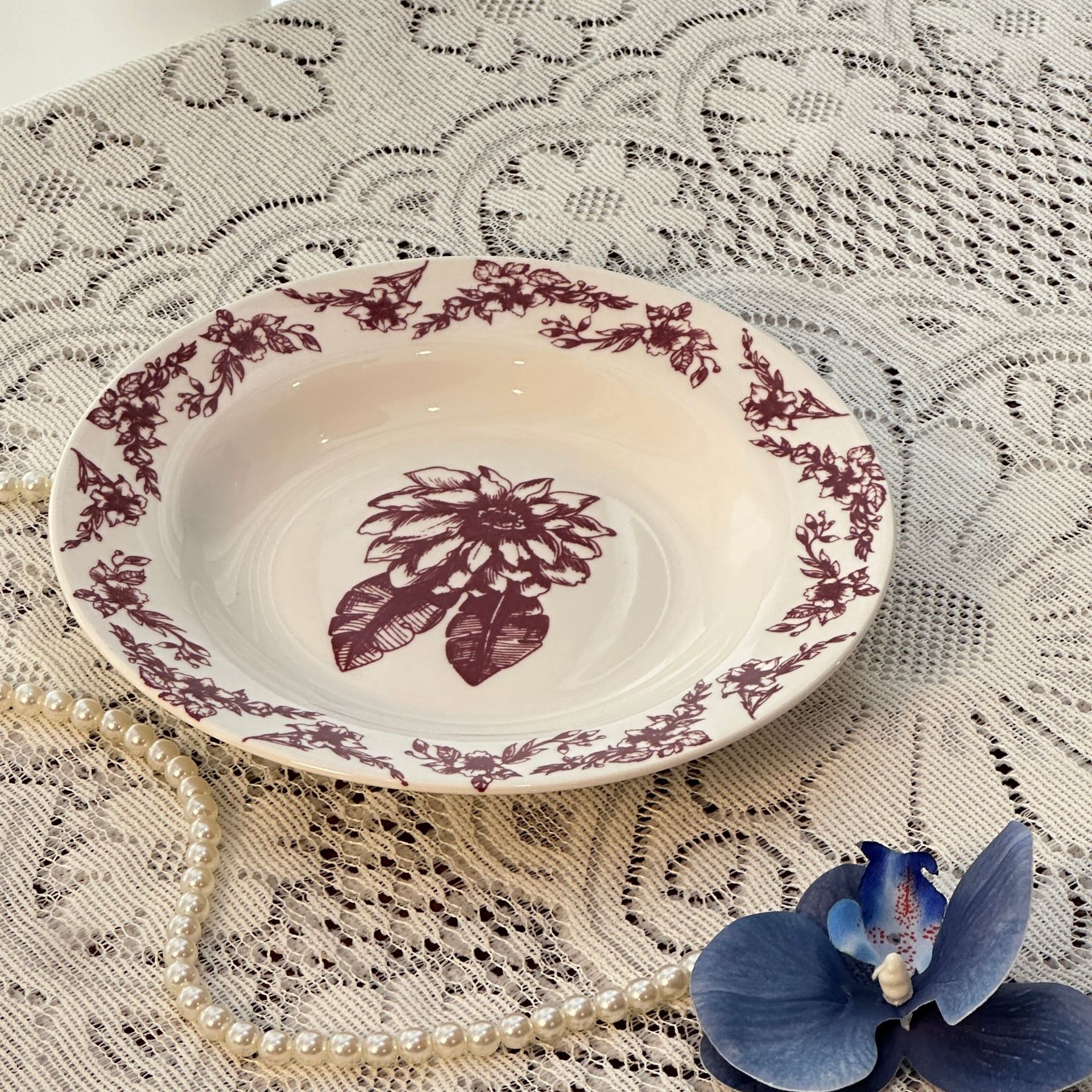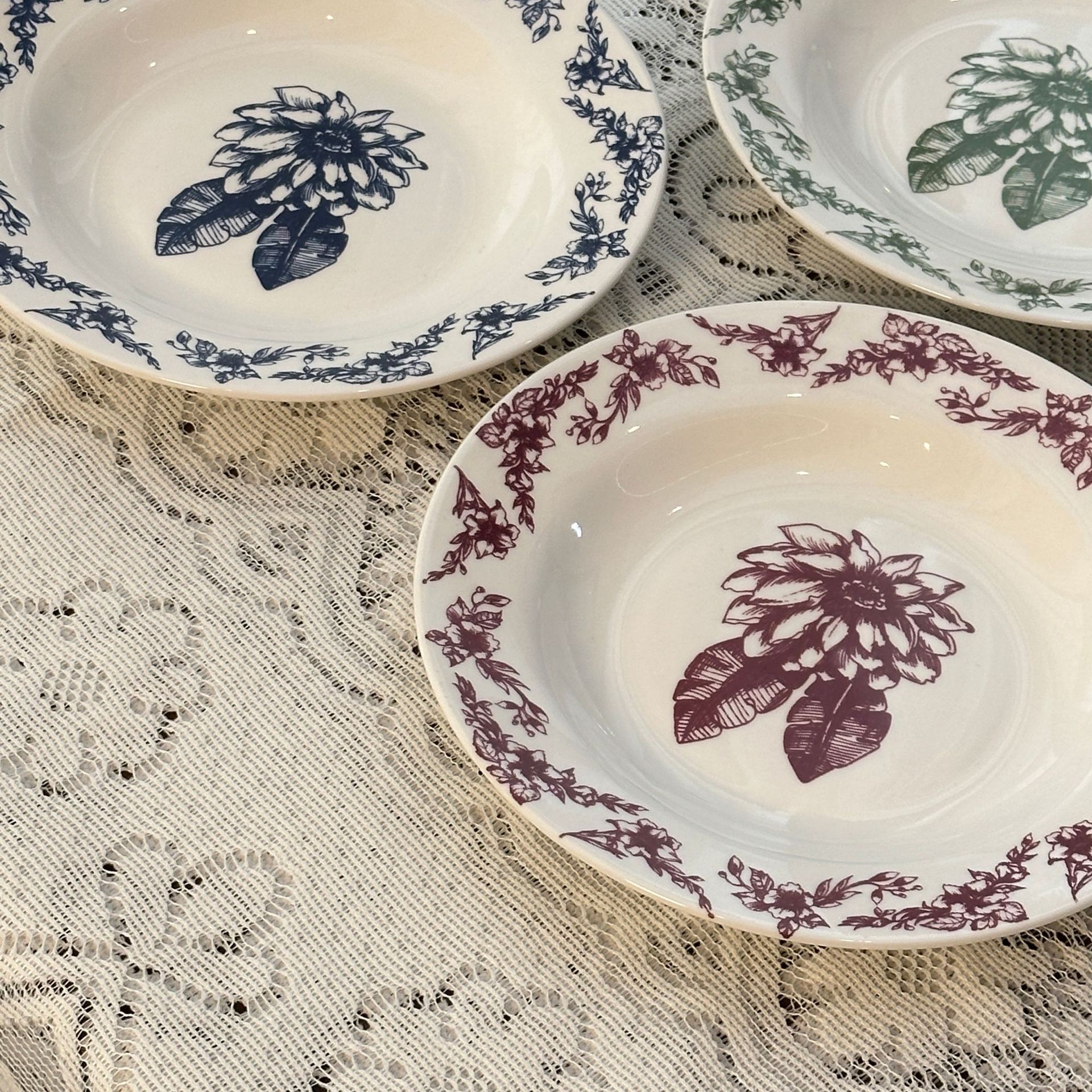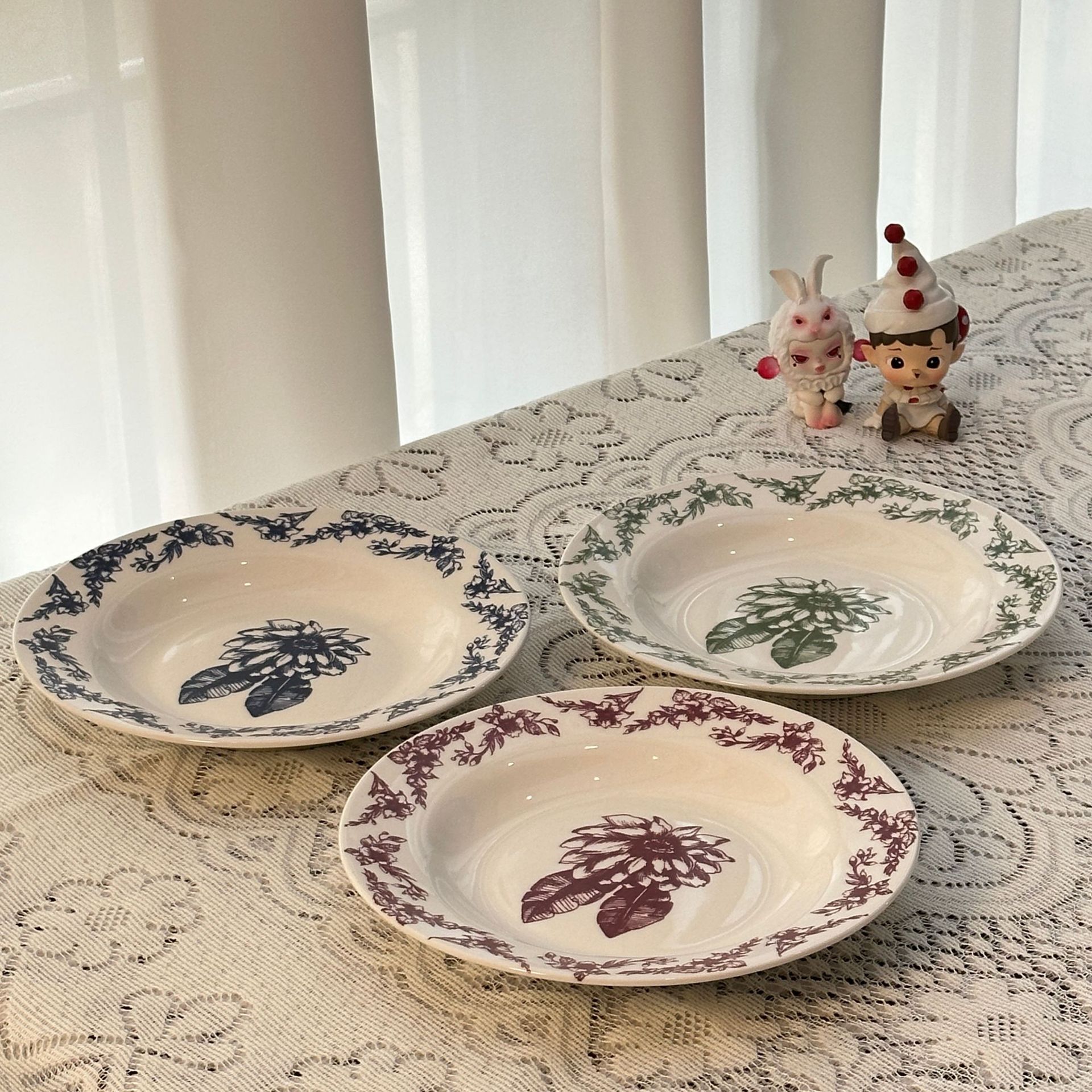 Underglaze Color Flower Creek 새로운 뼈 중국 수프 플레이트 접시 아침 식사 플레이트 레트로 웨스턴 플레이트 마이크로파 세라믹 플레이트 호텔 가정용스토어 가기