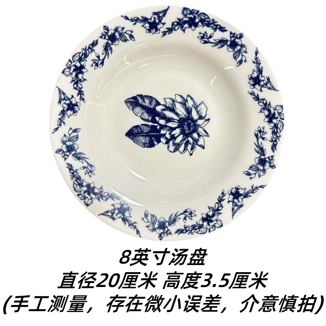 Underglaze Color Flower Creek 새로운 뼈 중국 수프 플레이트 접시 아침 식사 플레이트 레트로 웨스턴 플레이트 마이크로파 세라믹 플레이트 호텔 가정용