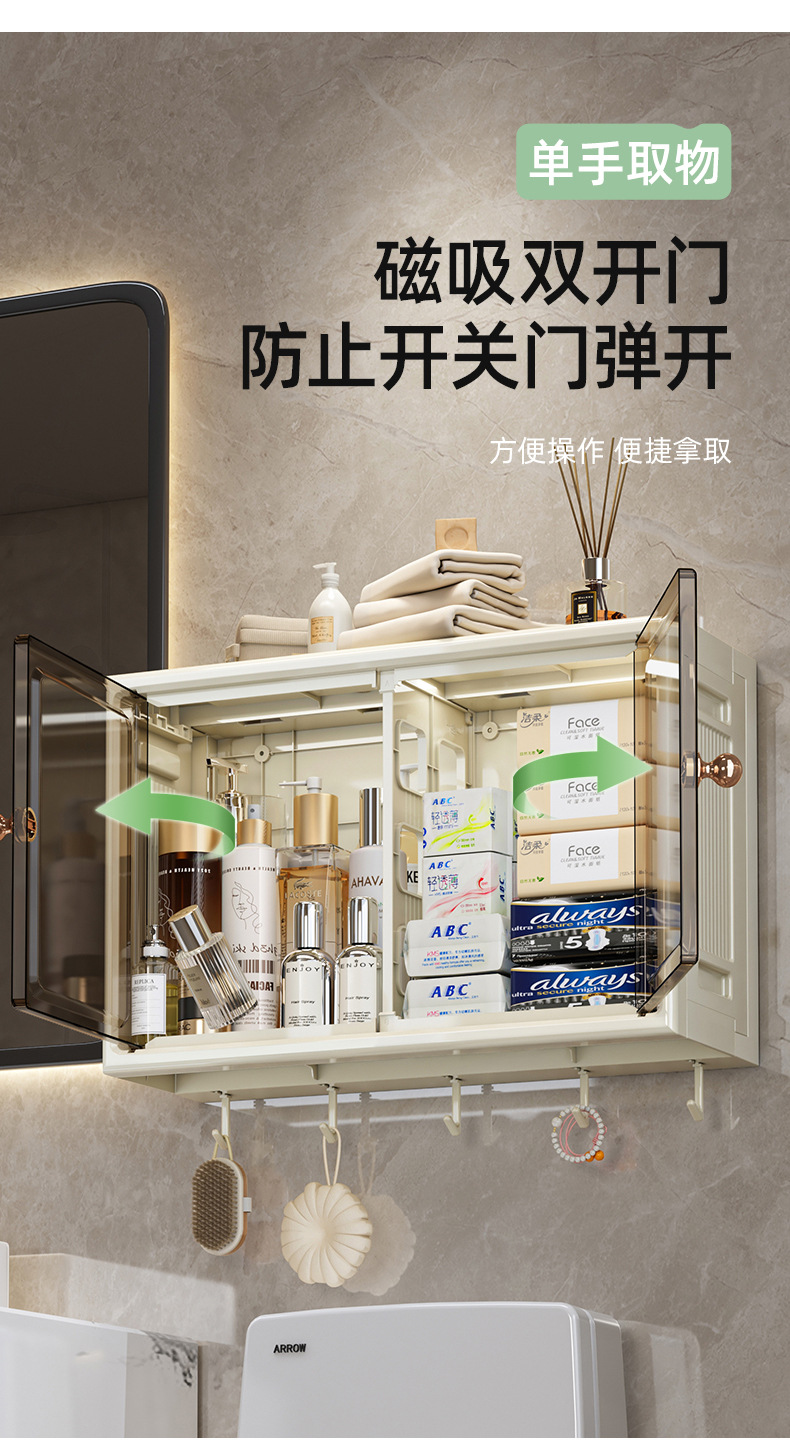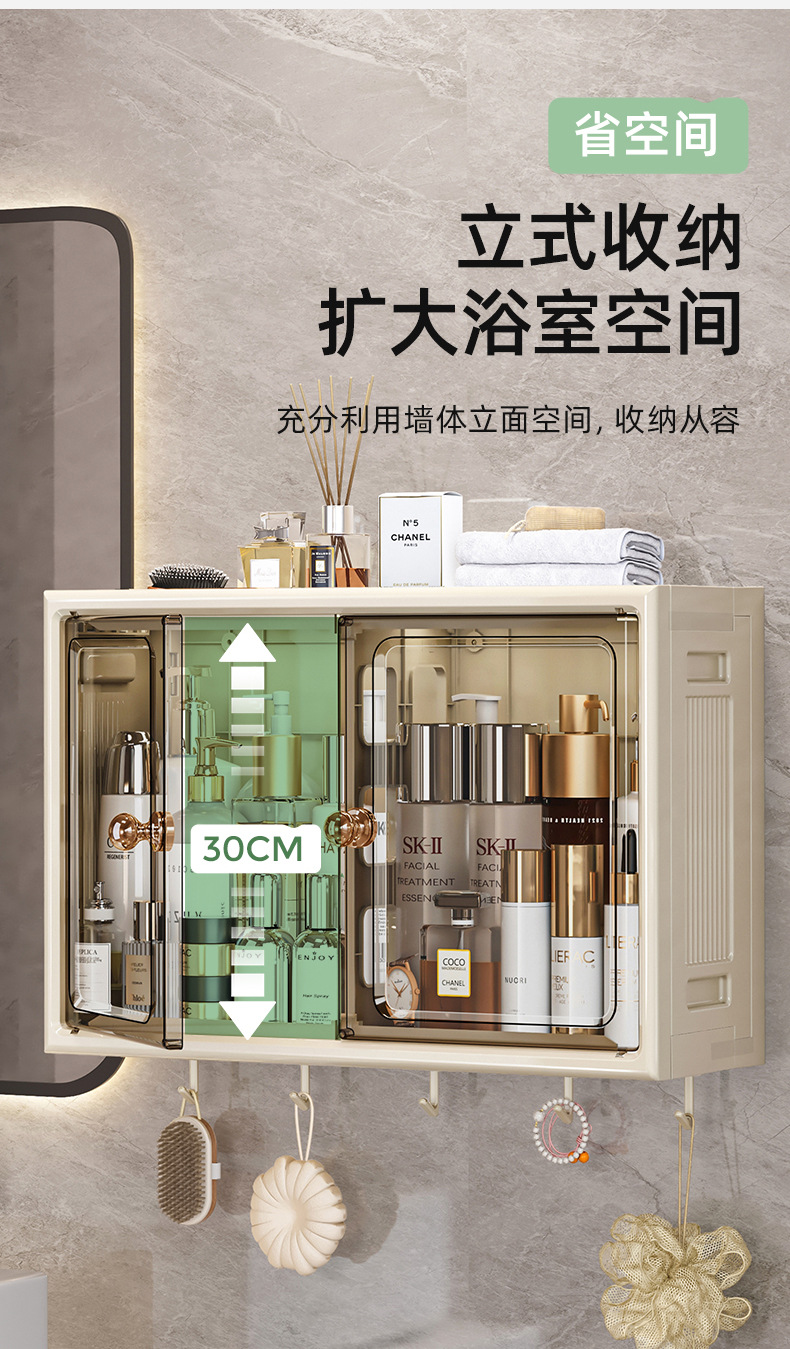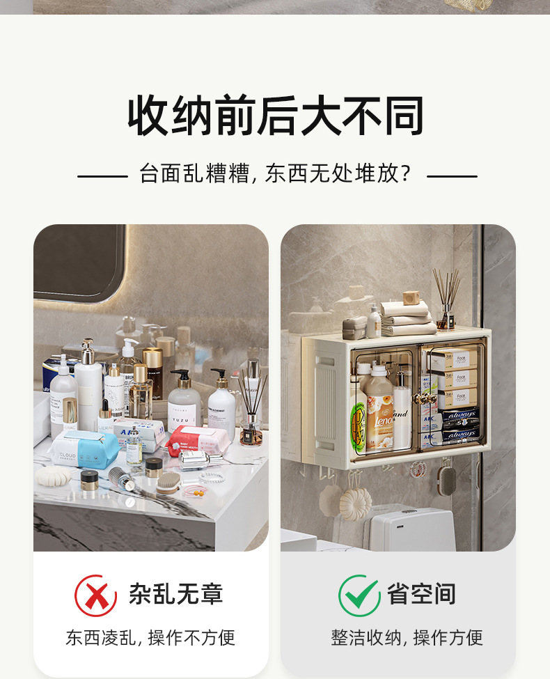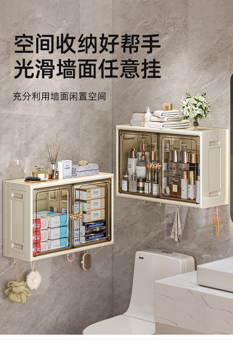 벽걸이형 수납함, 접이식 욕실 펀치 없는 수납함, 화장품 욕실 세면대 방진 수납함스토어 가기
