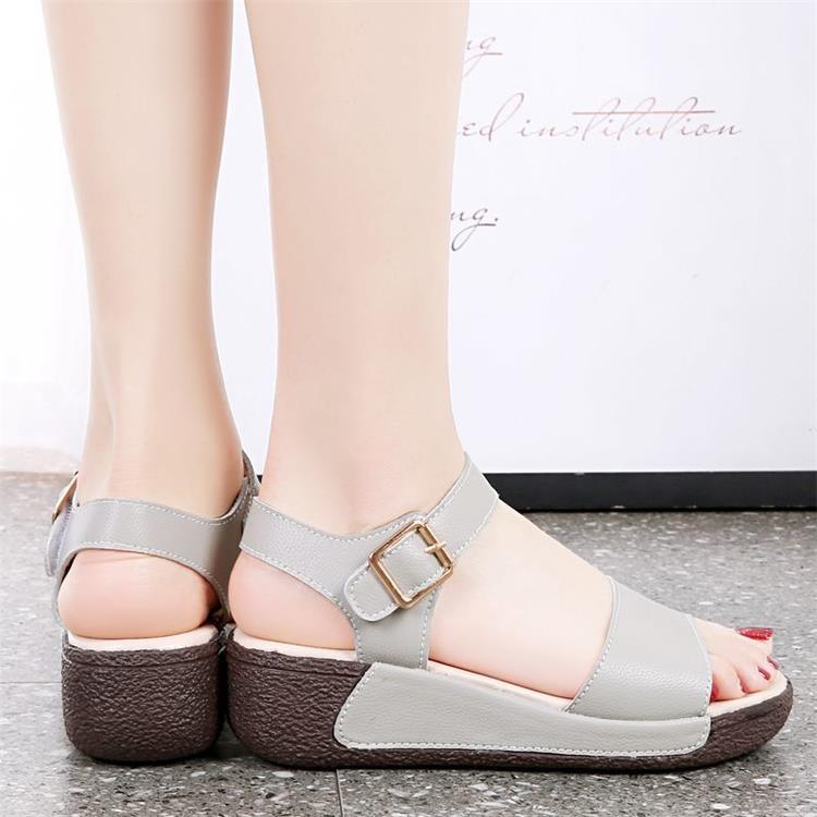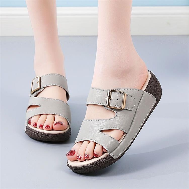 여성용 부드러운 가죽 샌들 2025 여름 겉옷 부드러운 밑창 웨지 힐 편안한 어머니 신발 미끄럼 방지 다목적 비치 신발 샌들 및 슬리퍼스토어 가기