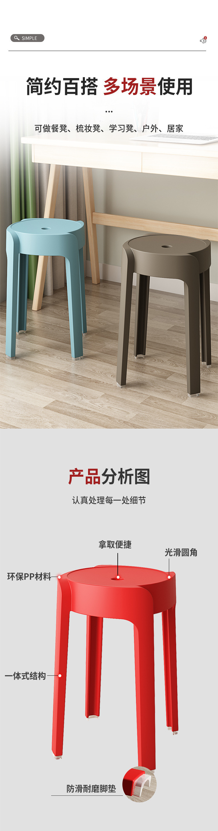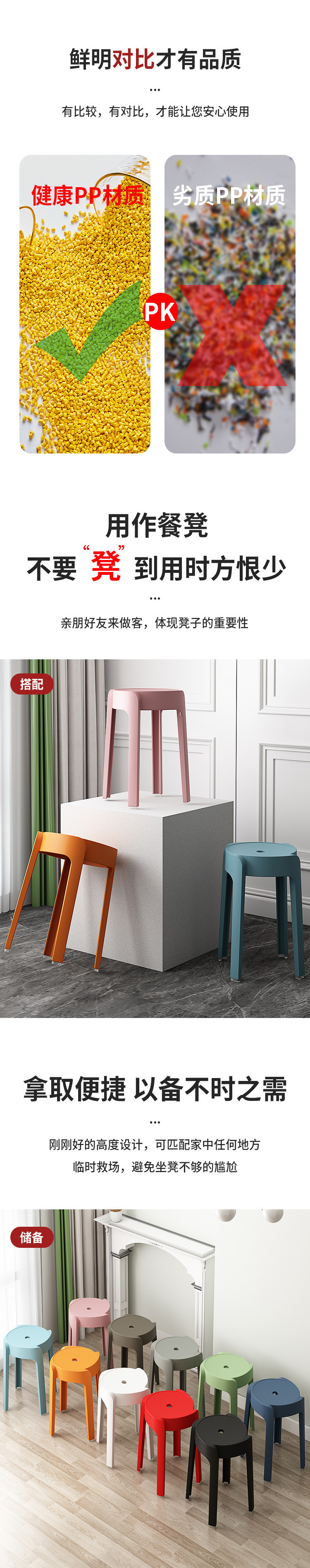 북유럽 패션 라운드 의자 플라스틱 두꺼운 성인 의자 쌓을 수있는 식탁 벤치 홈 의자 예비 의자 높은 의자