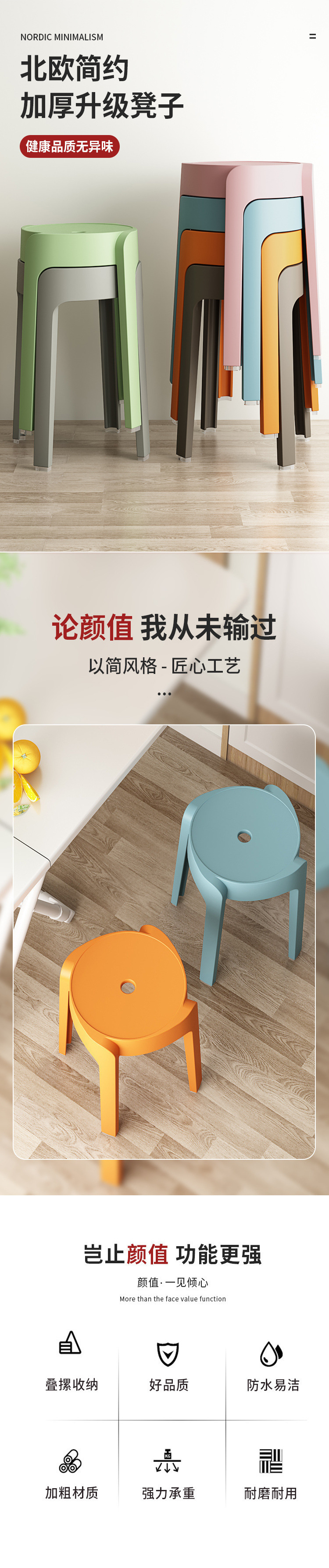 북유럽 패션 라운드 의자 플라스틱 두꺼운 성인 의자 쌓을 수있는 식탁 벤치 홈 의자 예비 의자 높은 의자스토어 가기