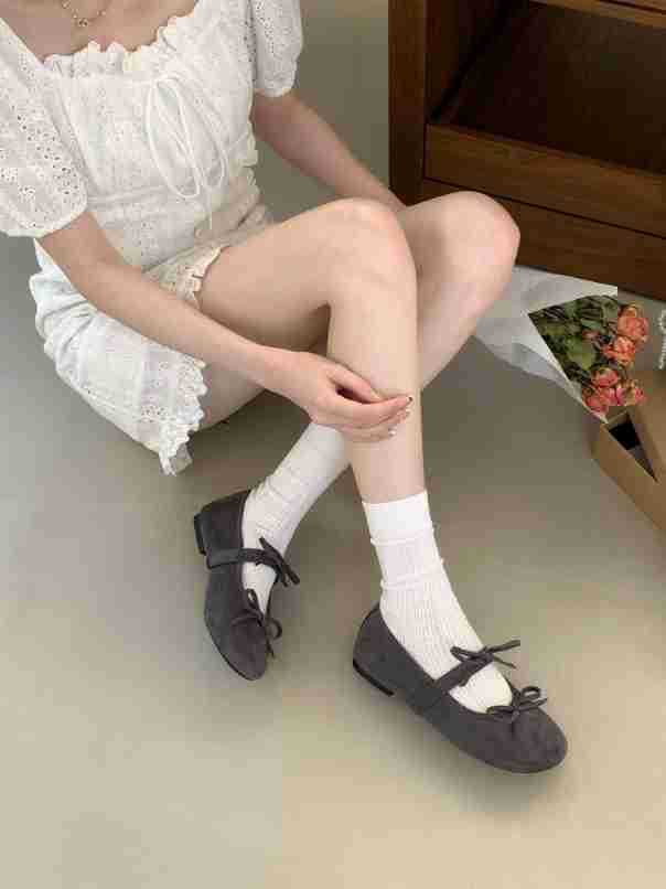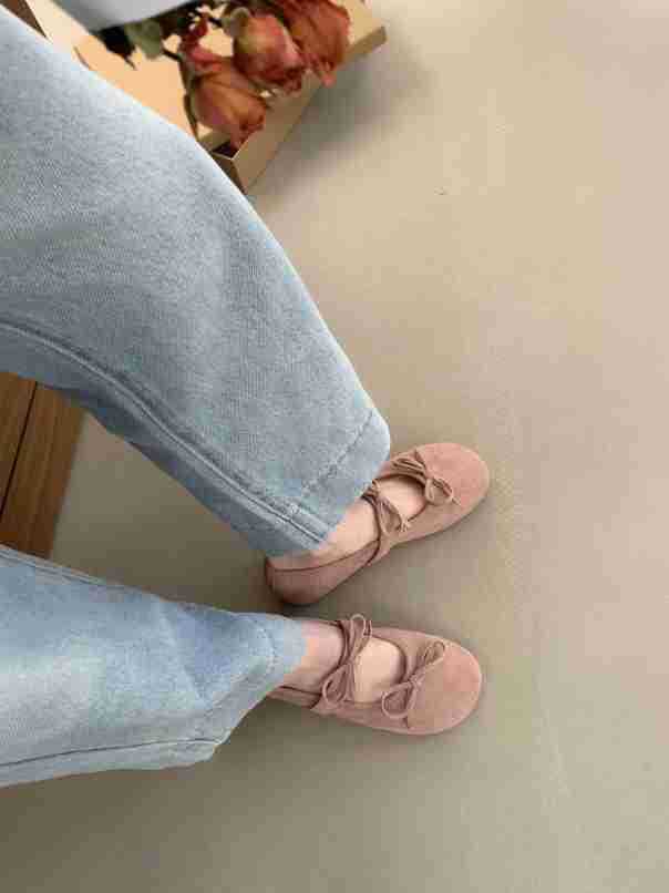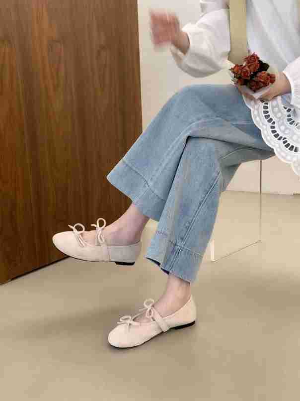 2025 봄 신상 메리제인 슈즈, 펌프스 스웨이드 보우, 부드러운 플랫 페어리 슈즈, 젠틀 슈즈스토어 가기