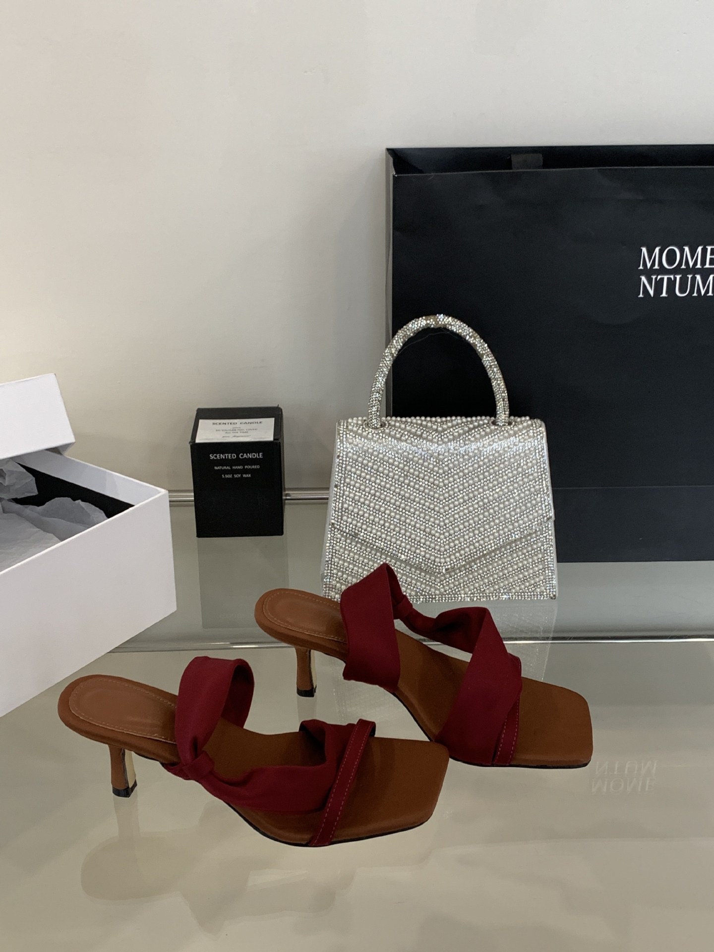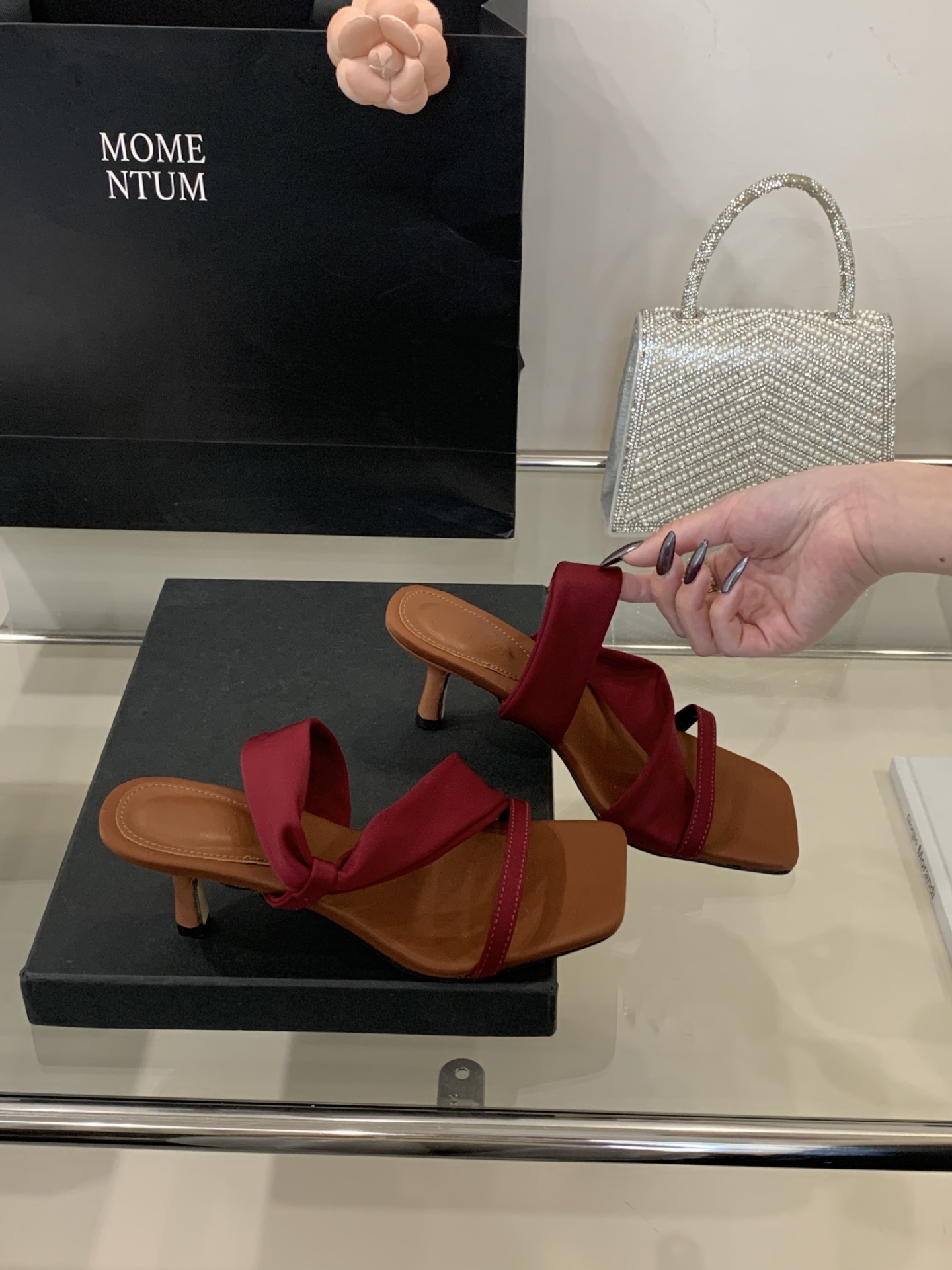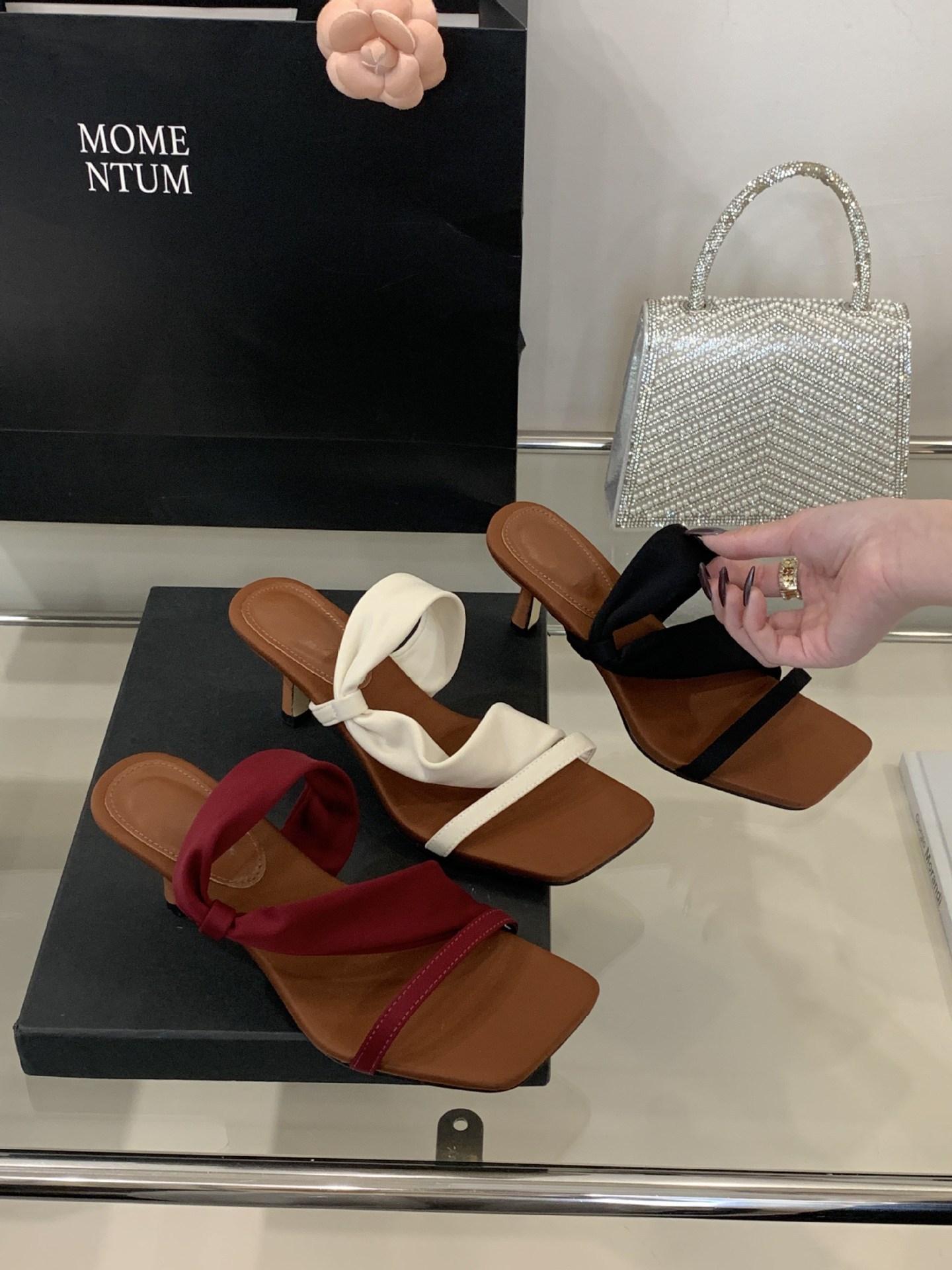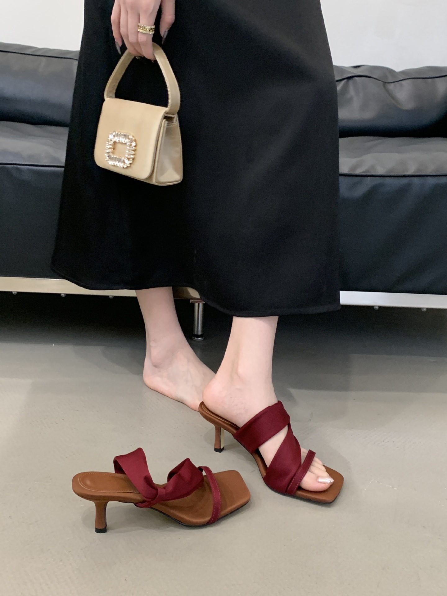 레드 하이힐, 프렌치 스타일 슬리퍼, 외투용 페어리 슈즈, 2025 신상 여름 니치 샌들스토어 가기