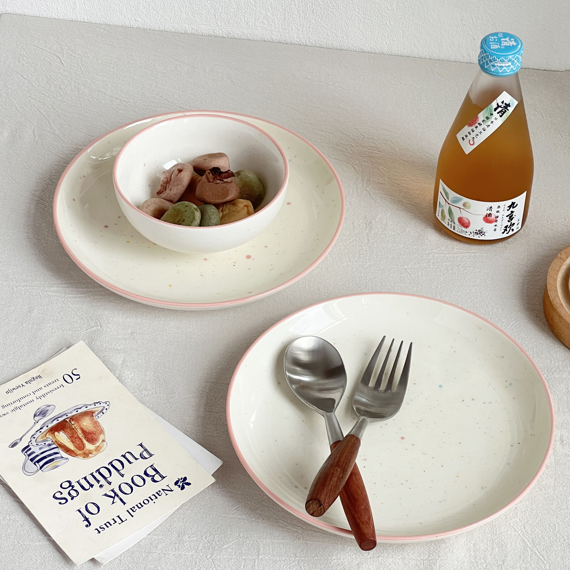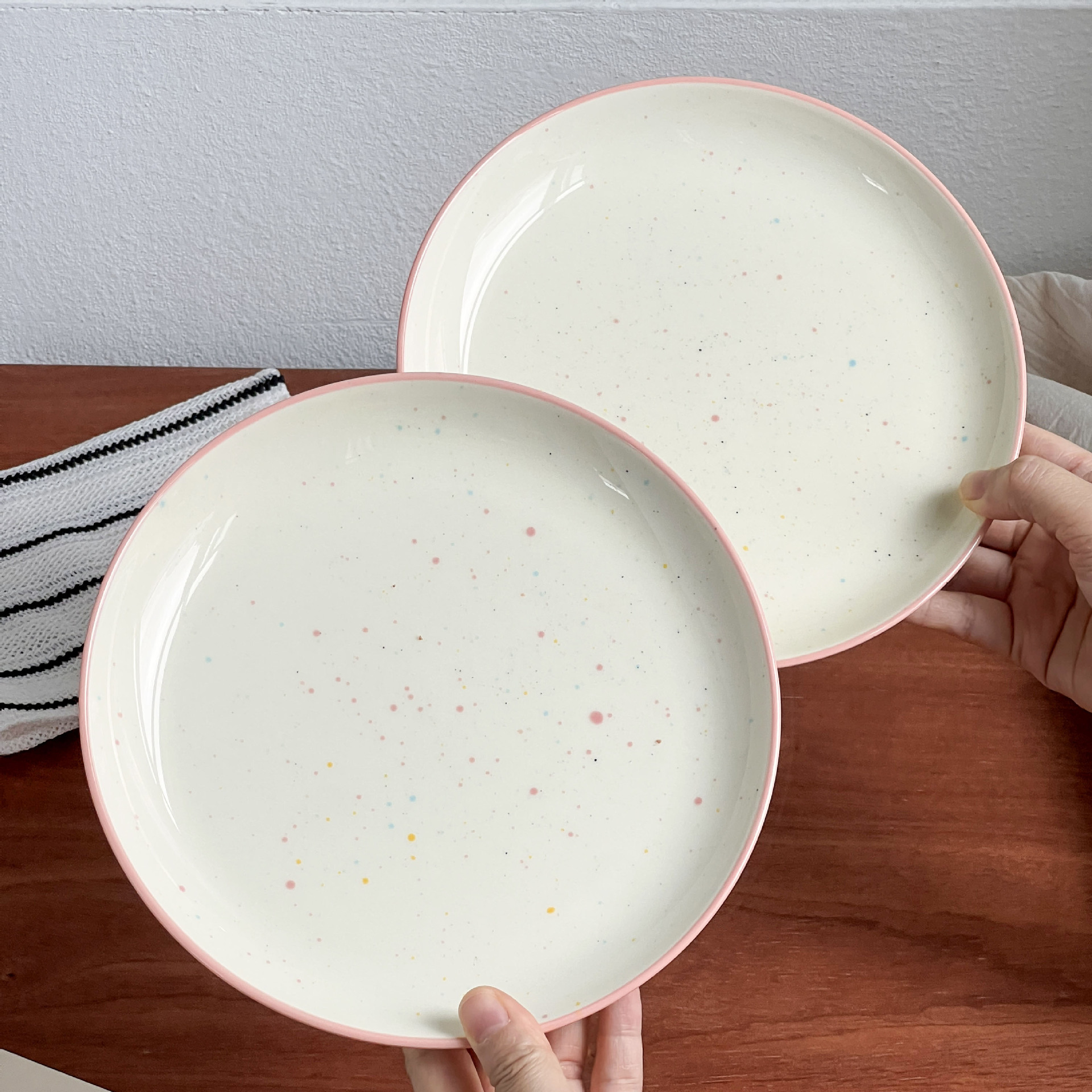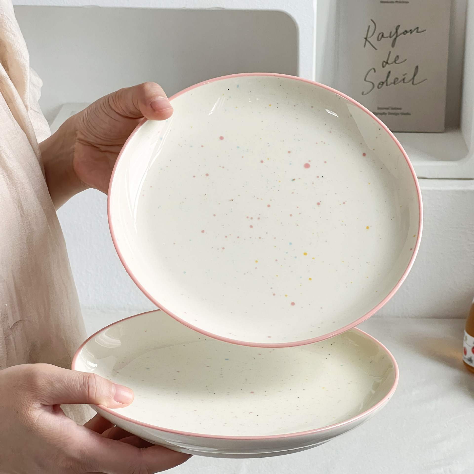 국경 간 새로운 8 인치 디스크 간단한 잉크젯 컬러 참깨 유약 가정용 접시 저 유약 창조적 인 세라믹 얕은 접시