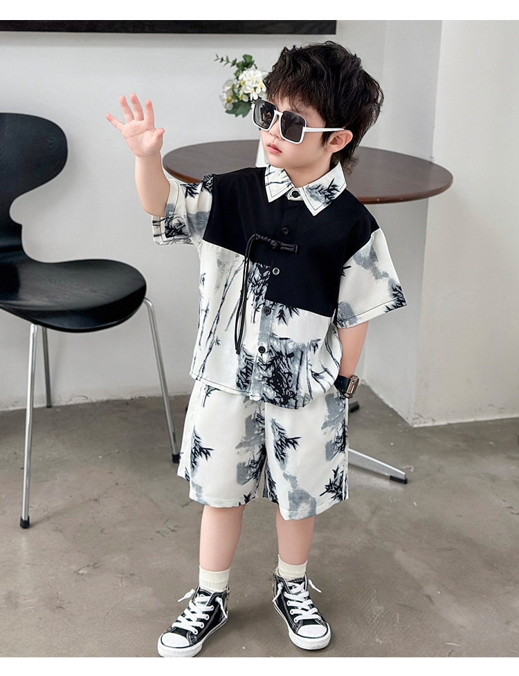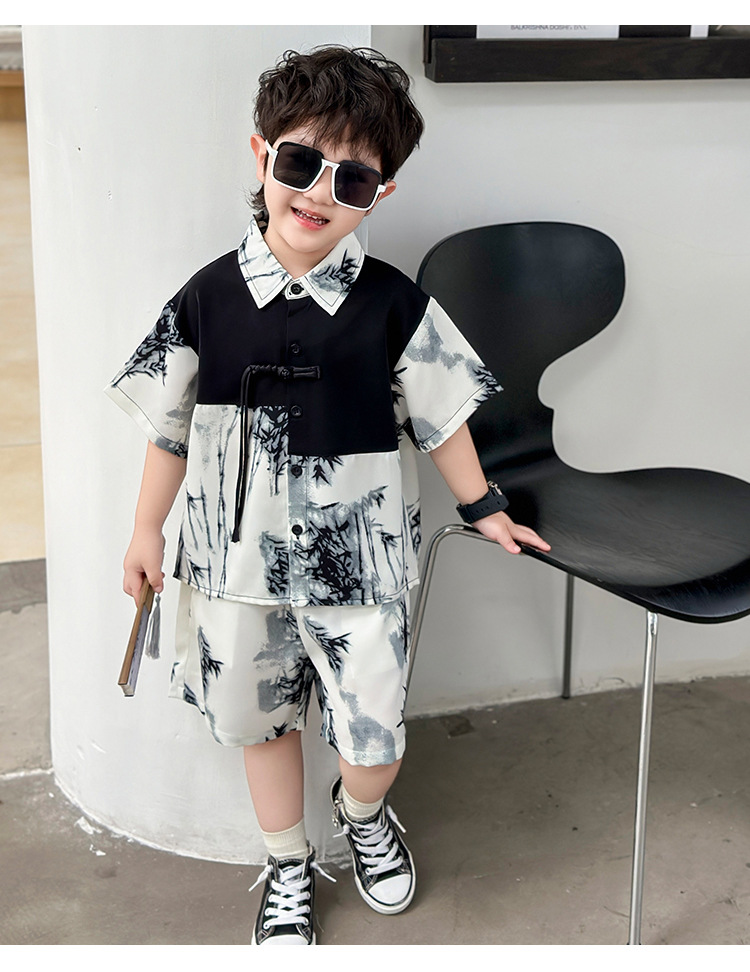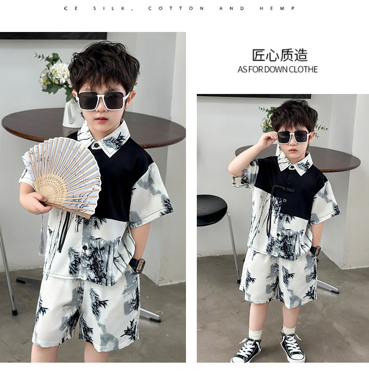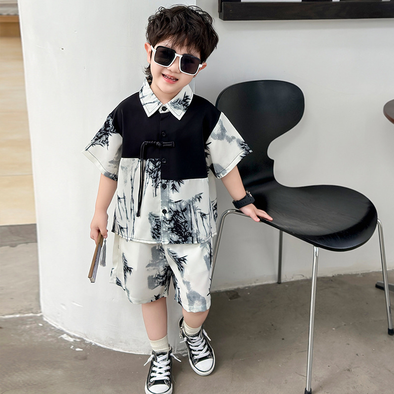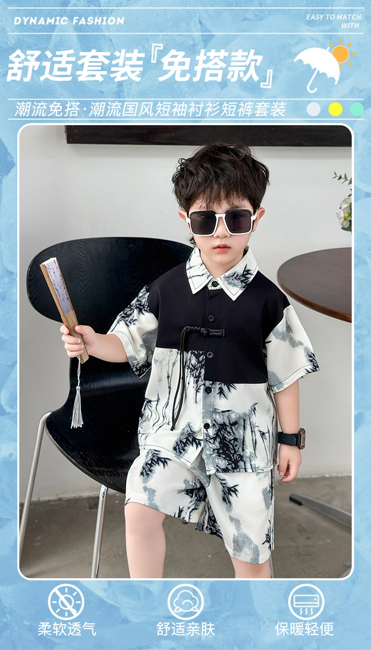 새로운 중국 스타일의 가벼운 민족 스타일 의류 반바지 정장 하이 엔드 남성 여름 반팔 셔츠 게으른 스타일 착용 정장 유행스토어 가기