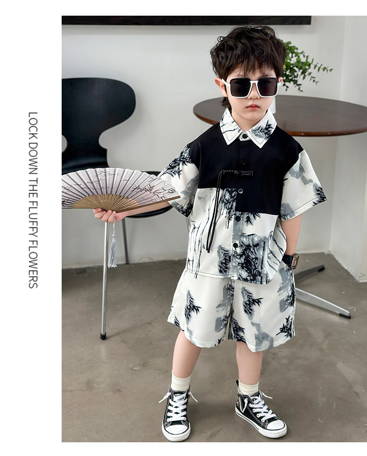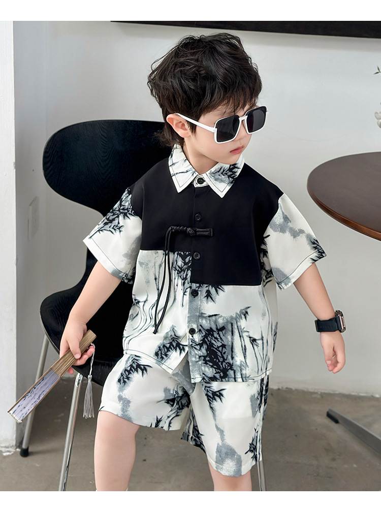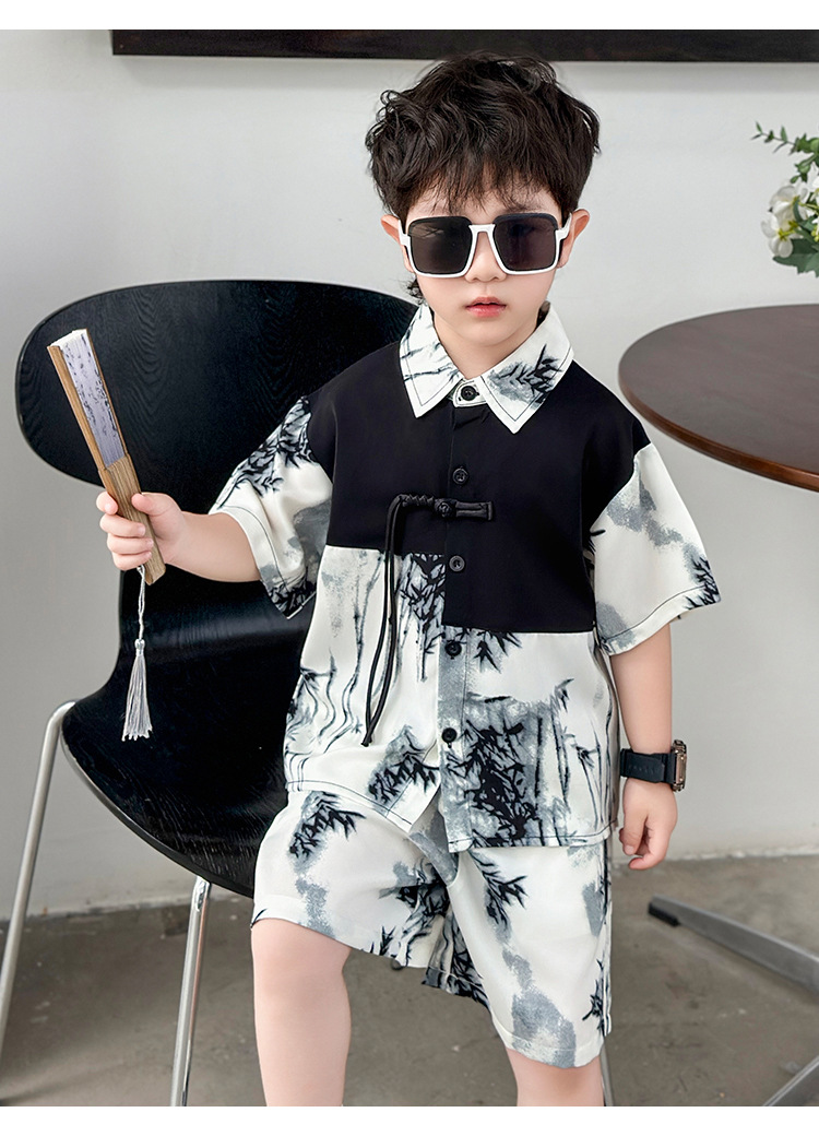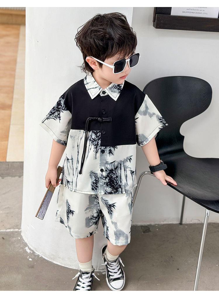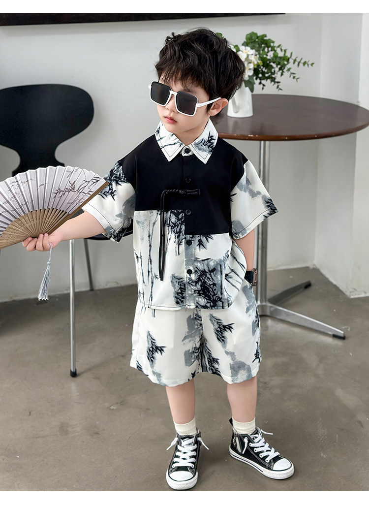 새로운 중국 스타일의 가벼운 민족 스타일 의류 반바지 정장 하이 엔드 남성 여름 반팔 셔츠 게으른 스타일 착용 정장 유행스토어 가기