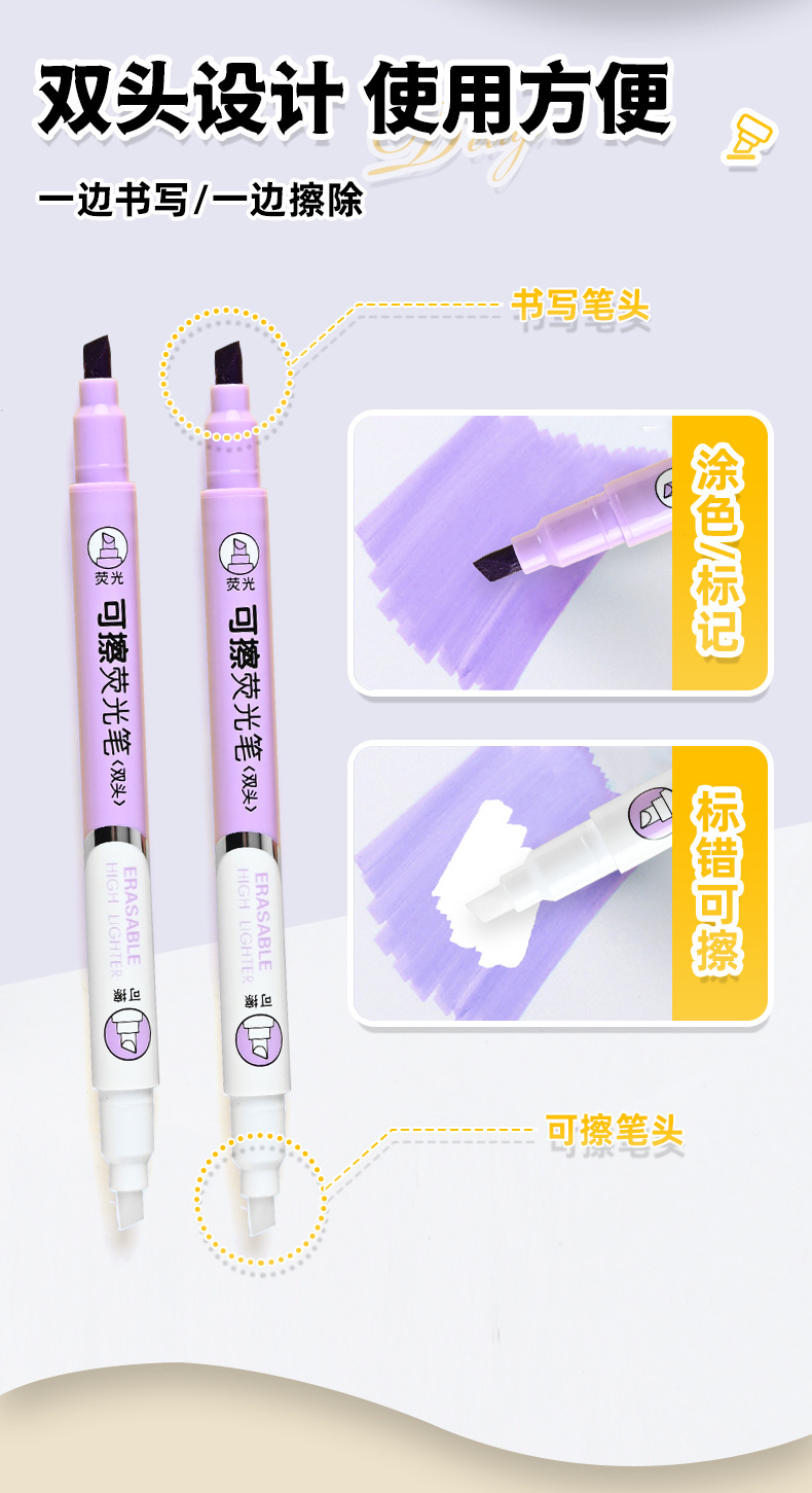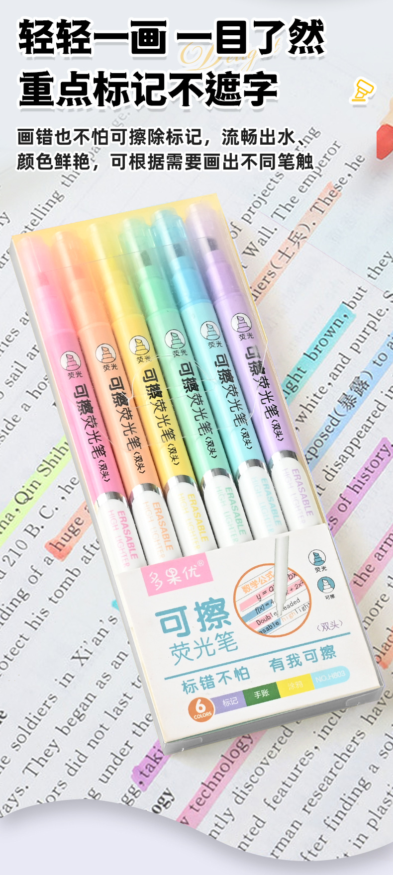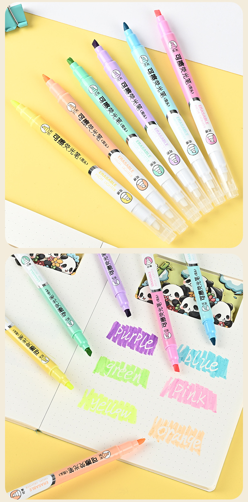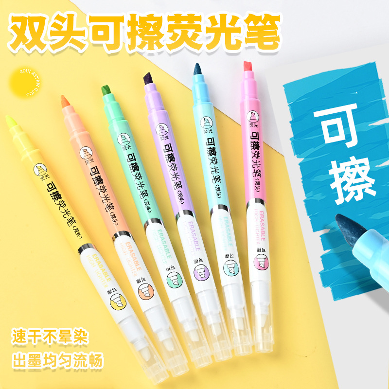 학생들을 위한 지울 수 있는 양면 형광펜, 컬러펜, 마킹펜, 경사진 헤드 핸드북 마커, 형광펜