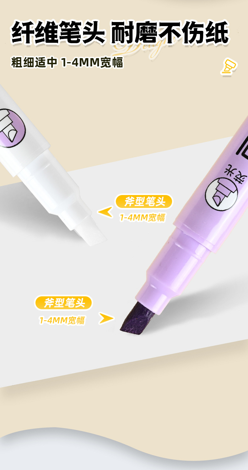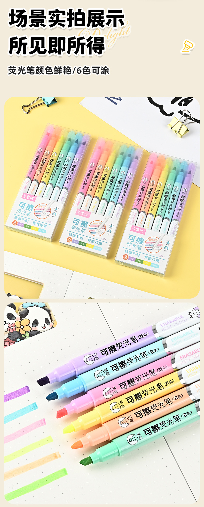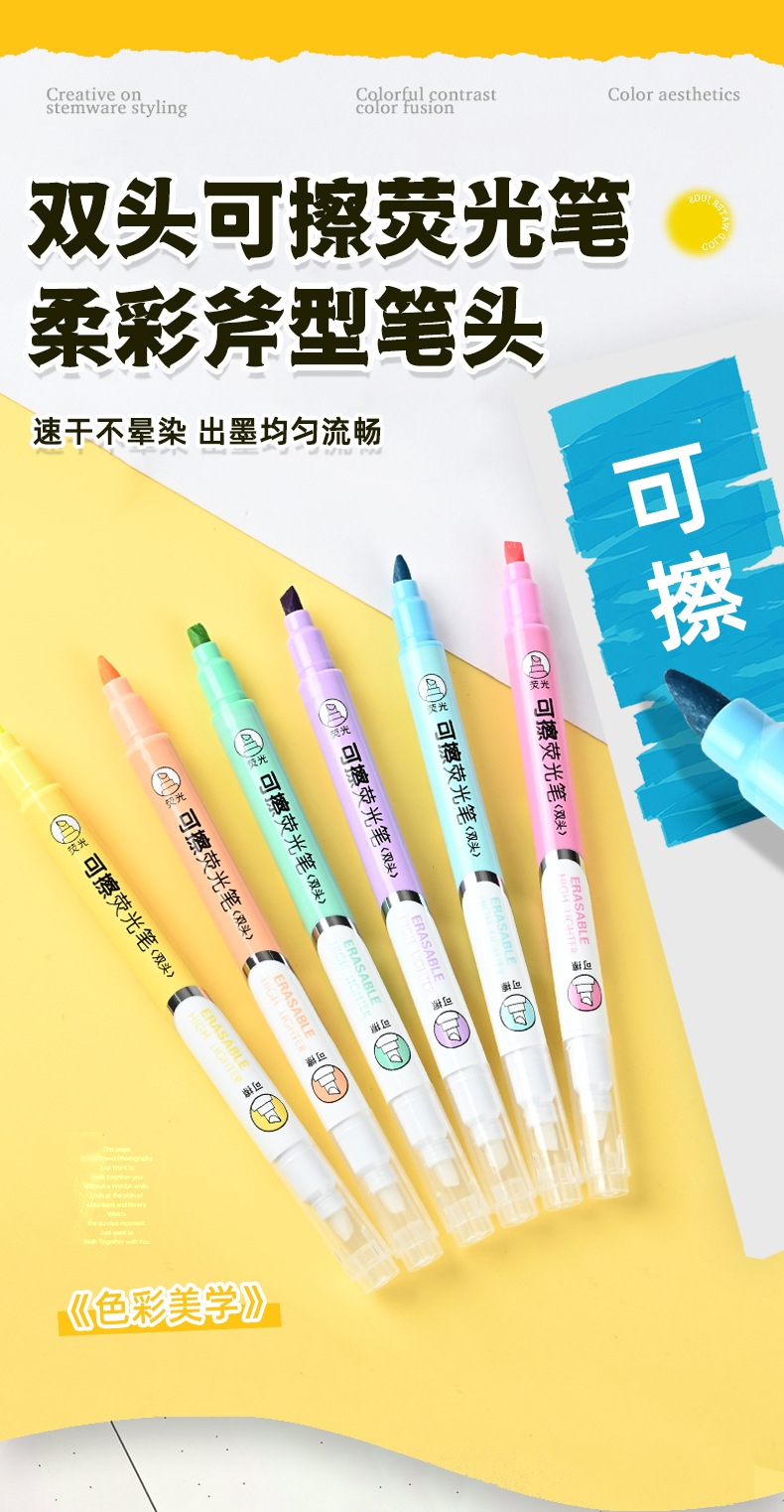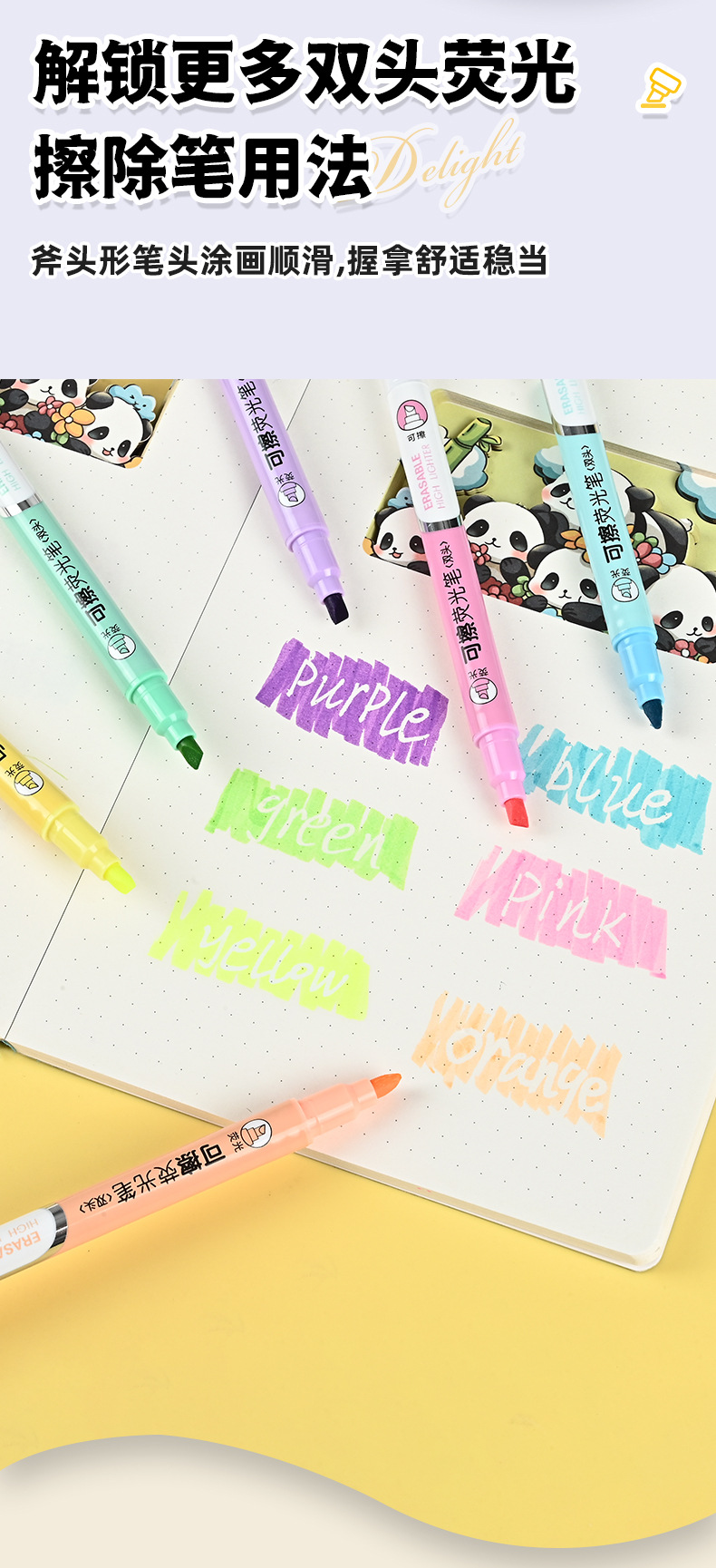 학생들을 위한 지울 수 있는 양면 형광펜, 컬러펜, 마킹펜, 경사진 헤드 핸드북 마커, 형광펜