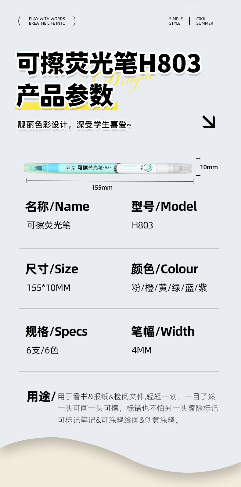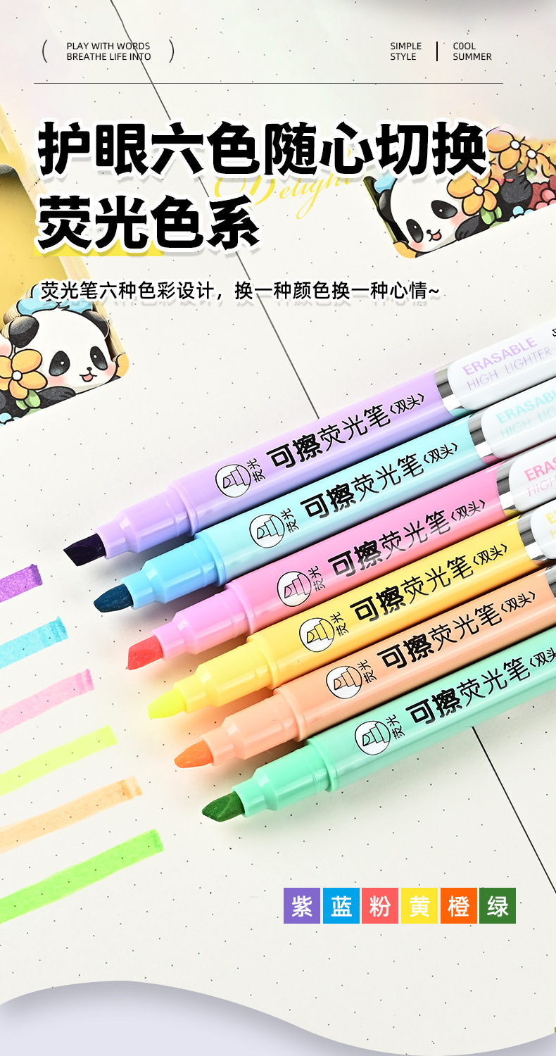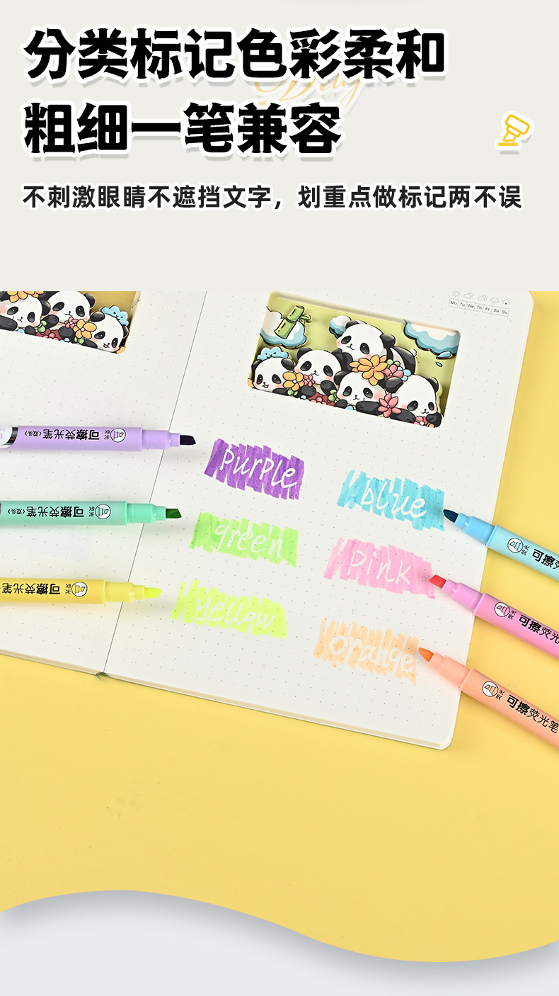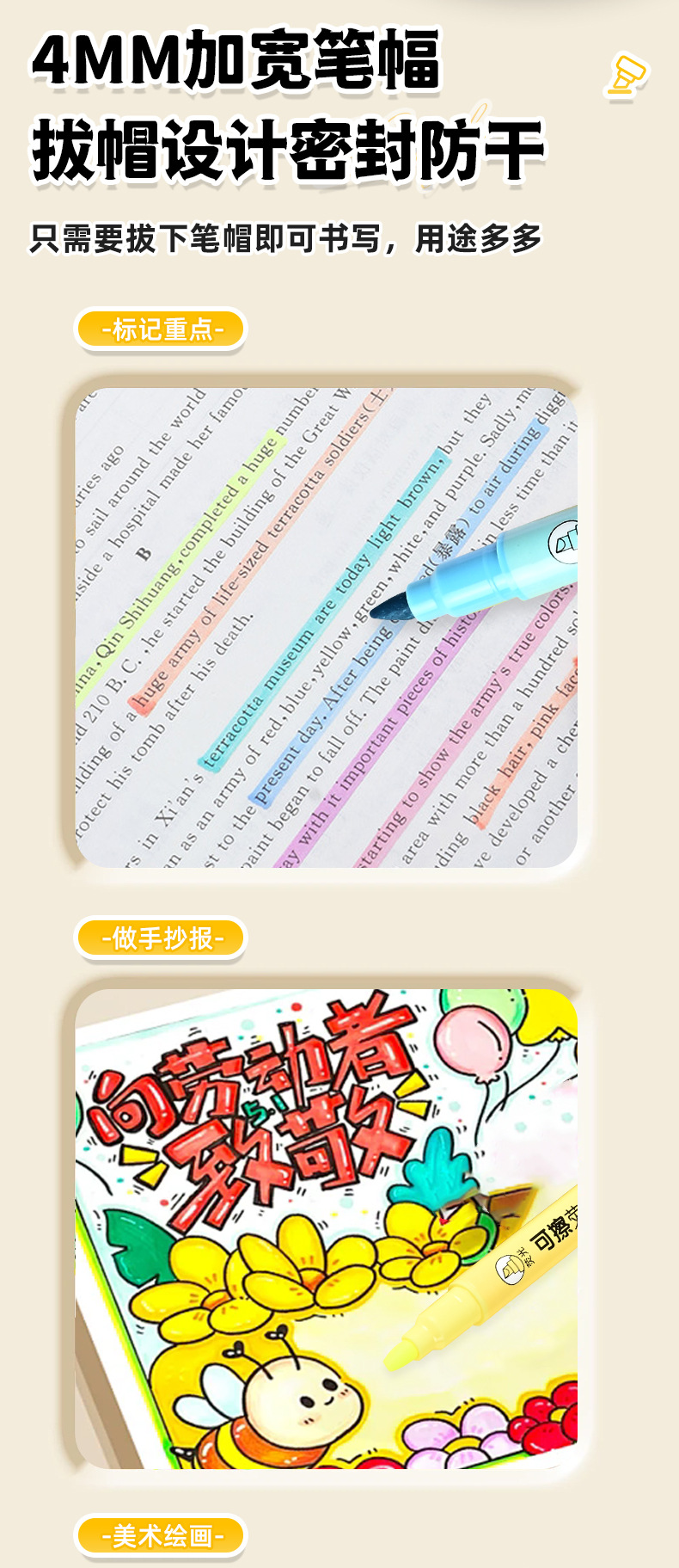 학생들을 위한 지울 수 있는 양면 형광펜, 컬러펜, 마킹펜, 경사진 헤드 핸드북 마커, 형광펜