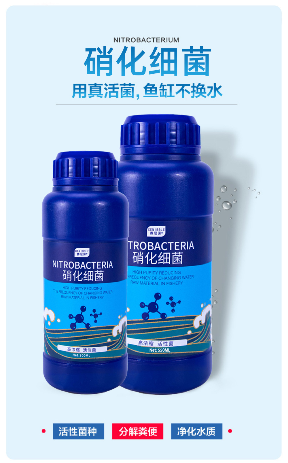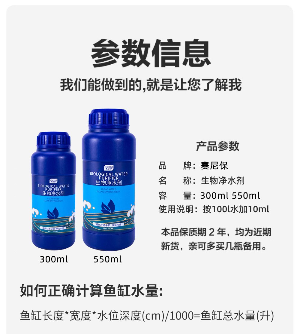 产品名称:赛尼保鱼缸硝化细菌水质稳定剂高锰酸钾生物净水剂消毒杀菌溶液