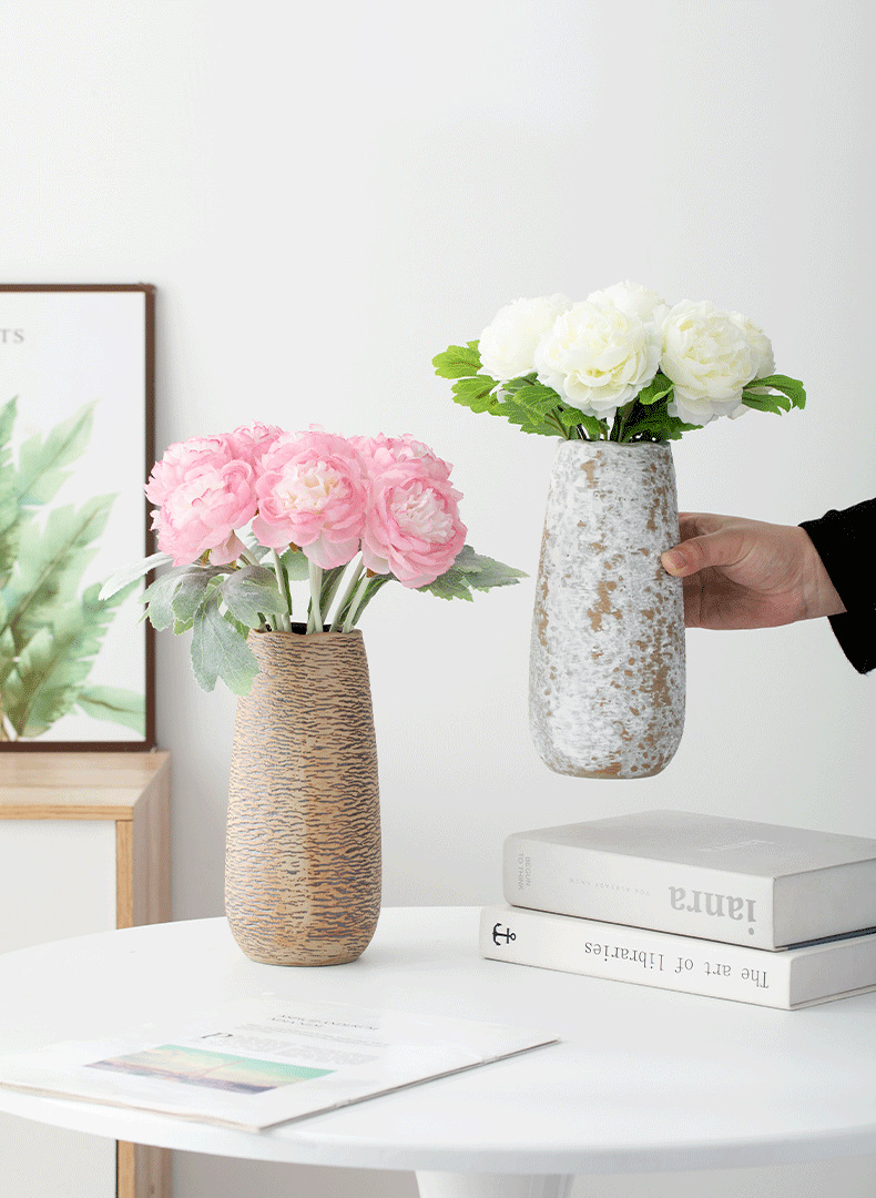 Shumen 복고풍 향수 세라믹 말린 꽃 꽃병 라이트 럭셔리 하이 엔드 장식 거실 입구 수경 꽃꽂이 장식품