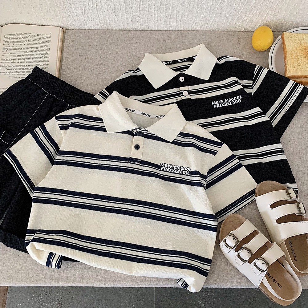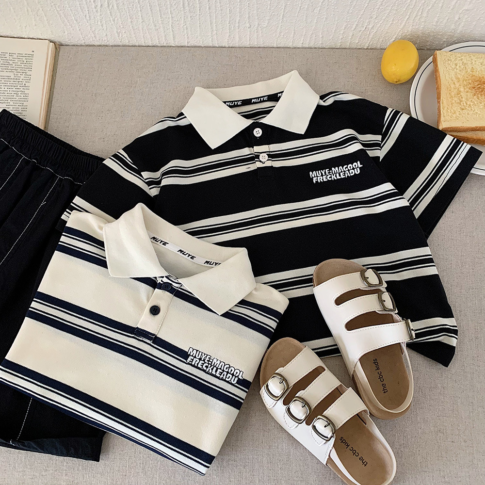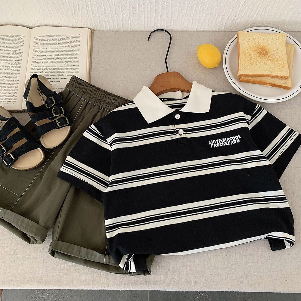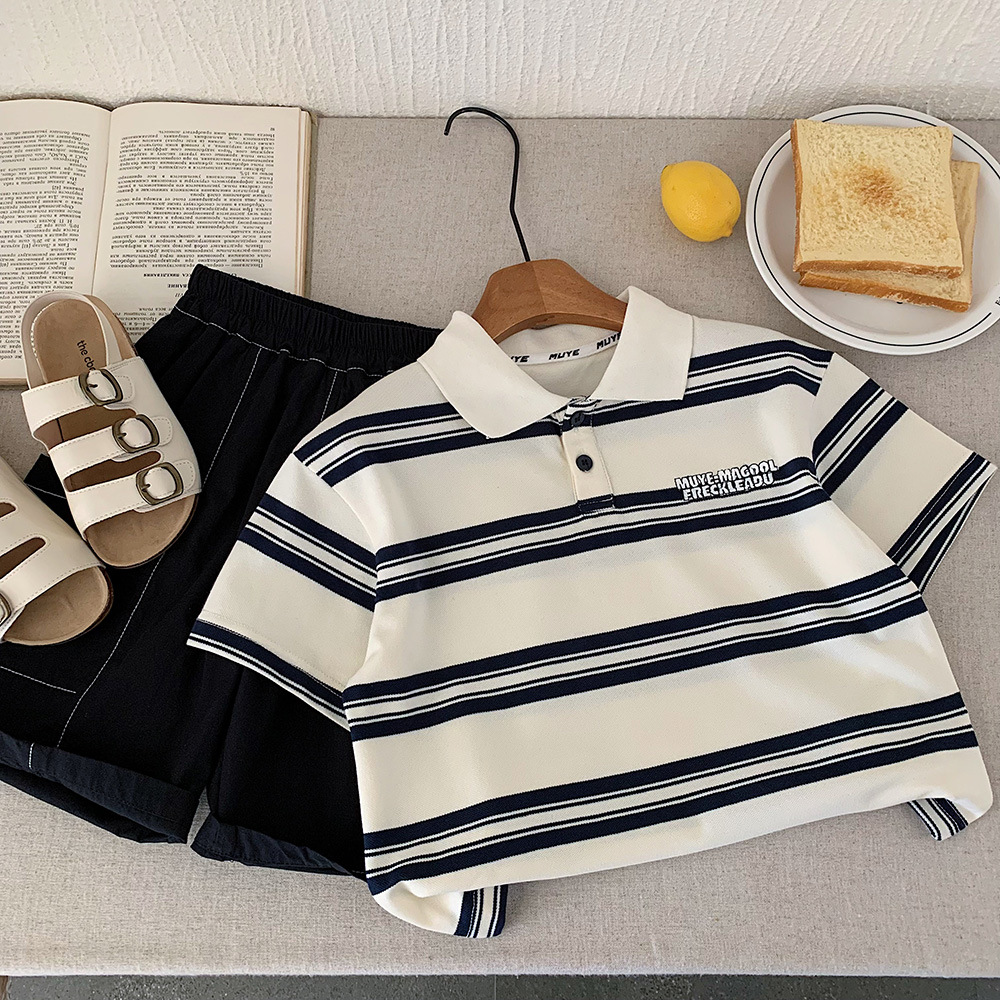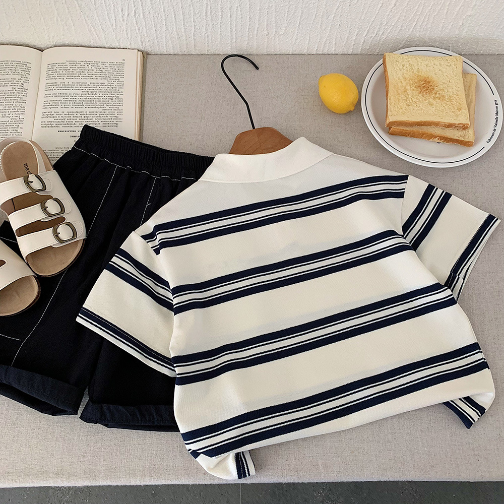 어린이 여름 반팔 탑 한국 어린이 의류 의상 소년 소녀 아기 옷 캐주얼 올 매치 스트라이프 폴로 셔츠