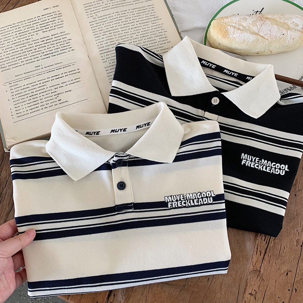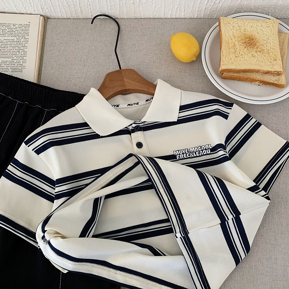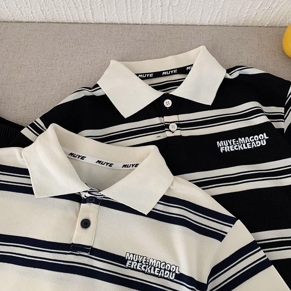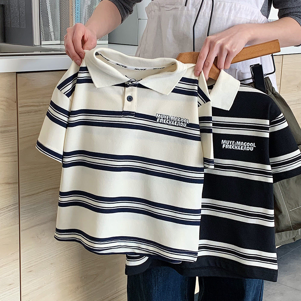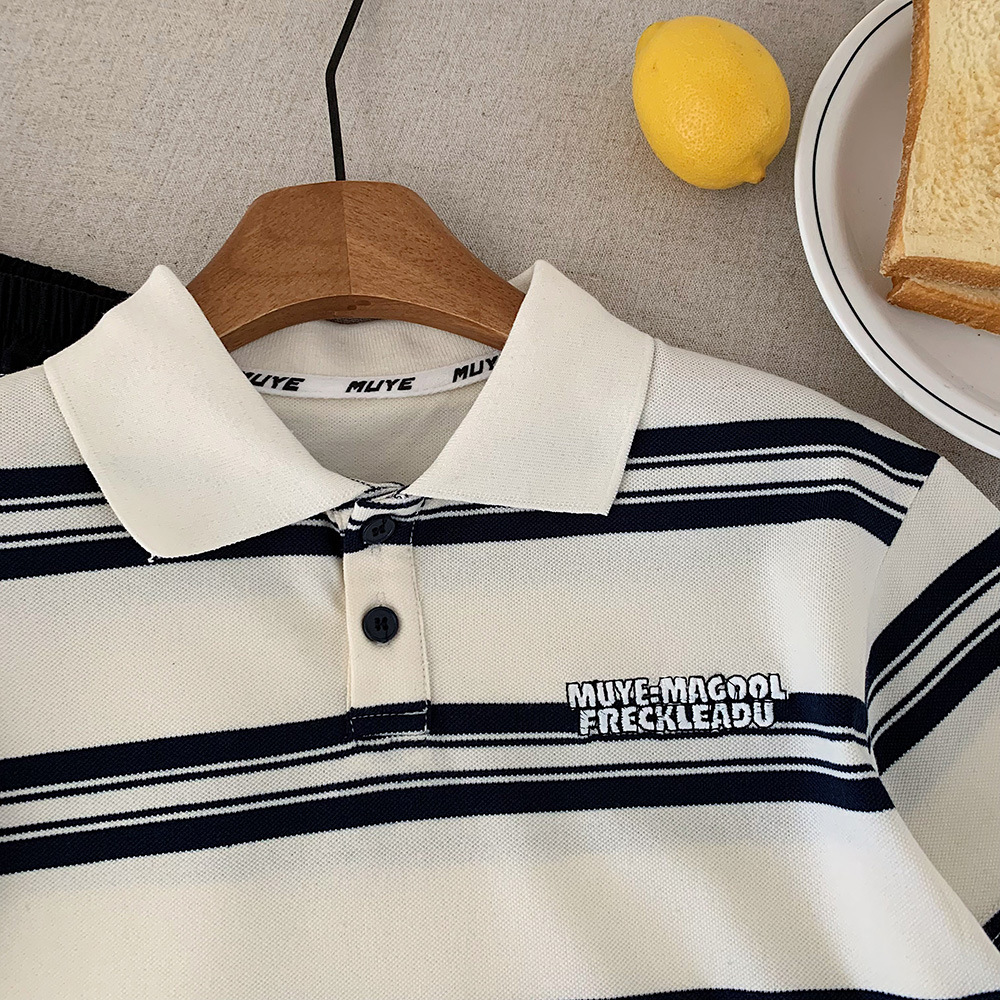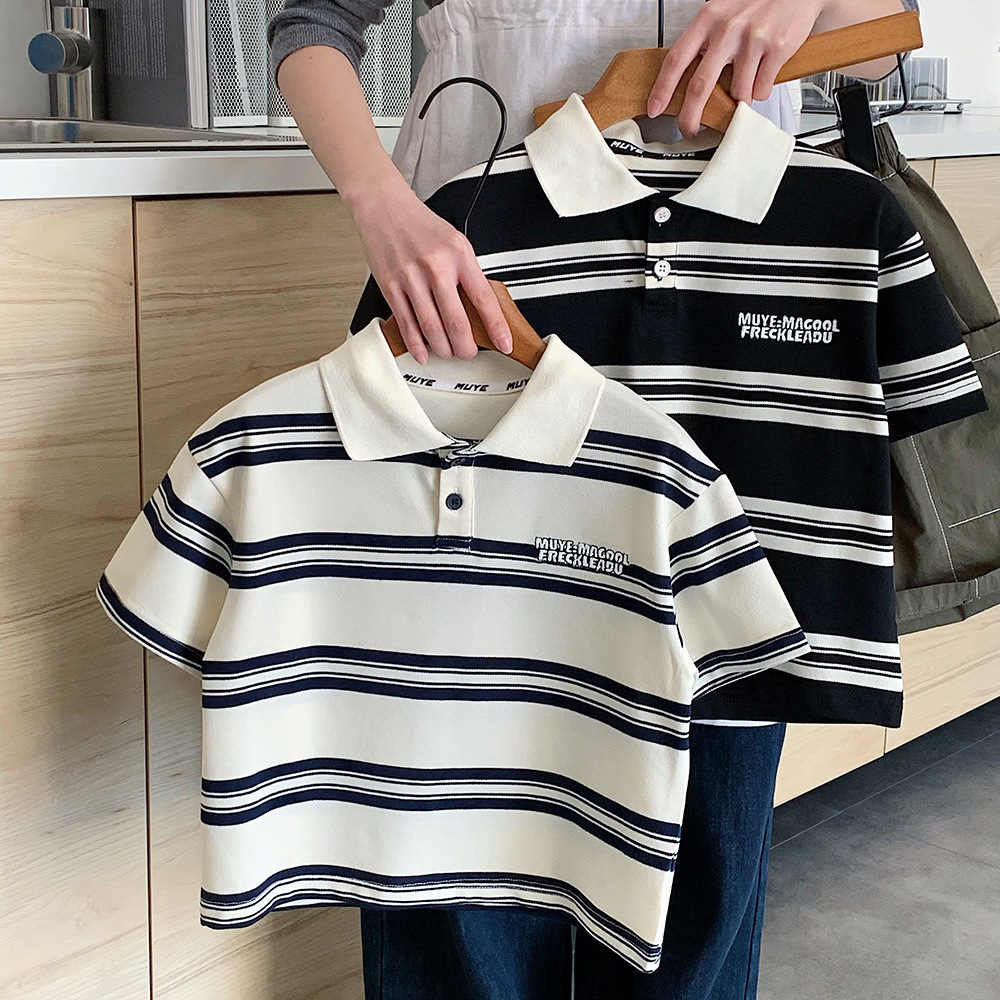 어린이 여름 반팔 탑 한국 어린이 의류 의상 소년 소녀 아기 옷 캐주얼 올 매치 스트라이프 폴로 셔츠